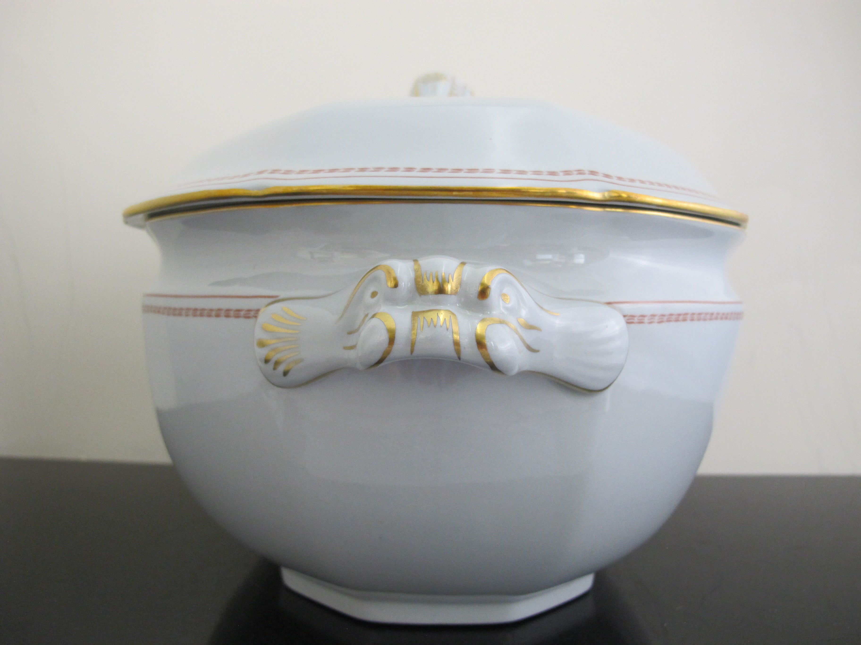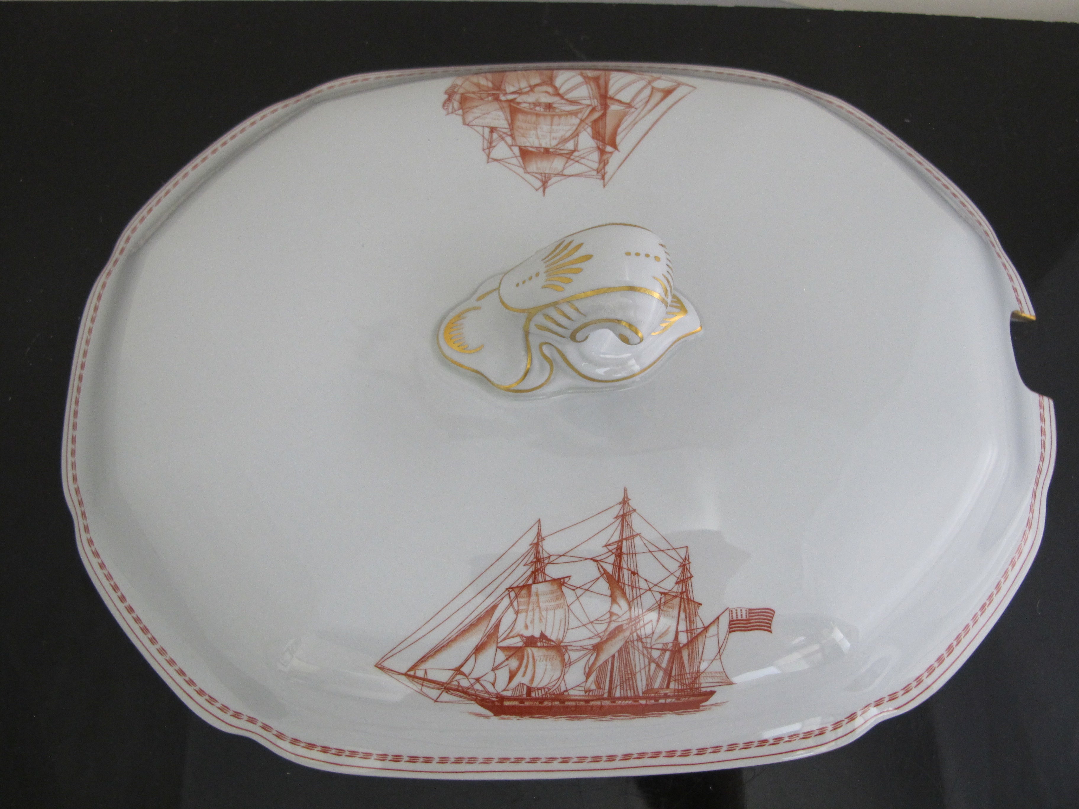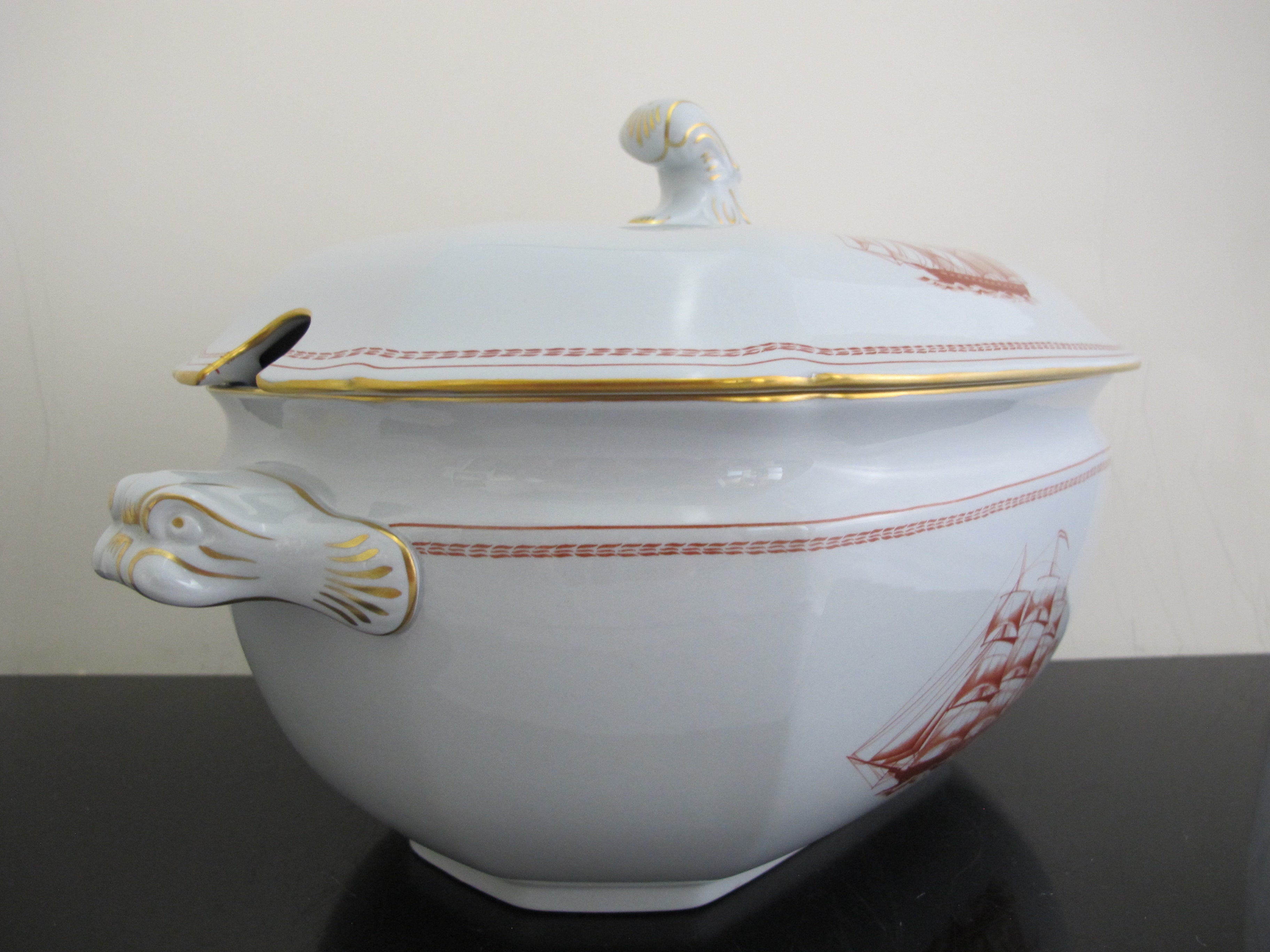 SPODE Copeland Red Gold Trim Ship TRADE WINDS 14" Large SOUP Tureen with Lid