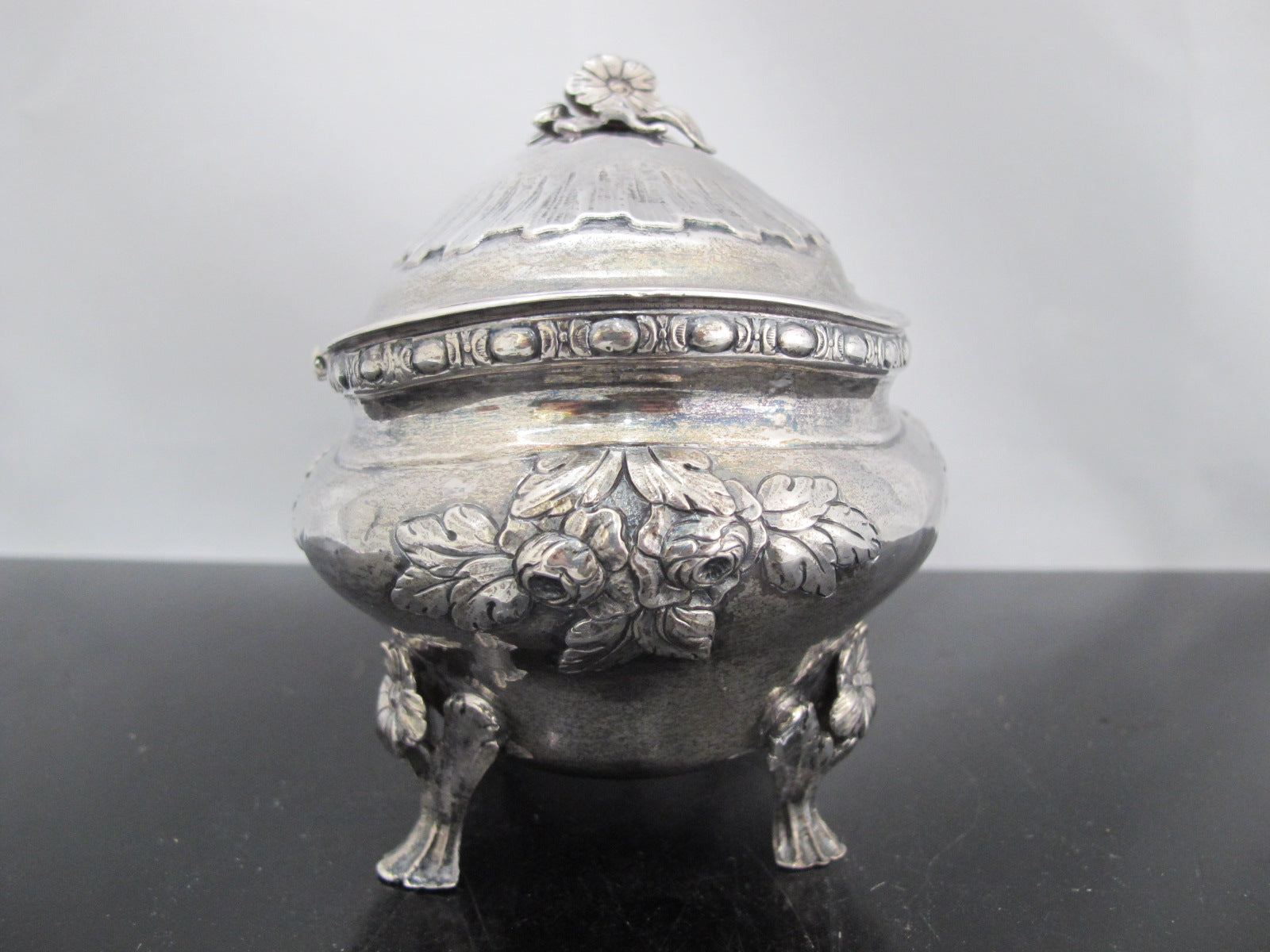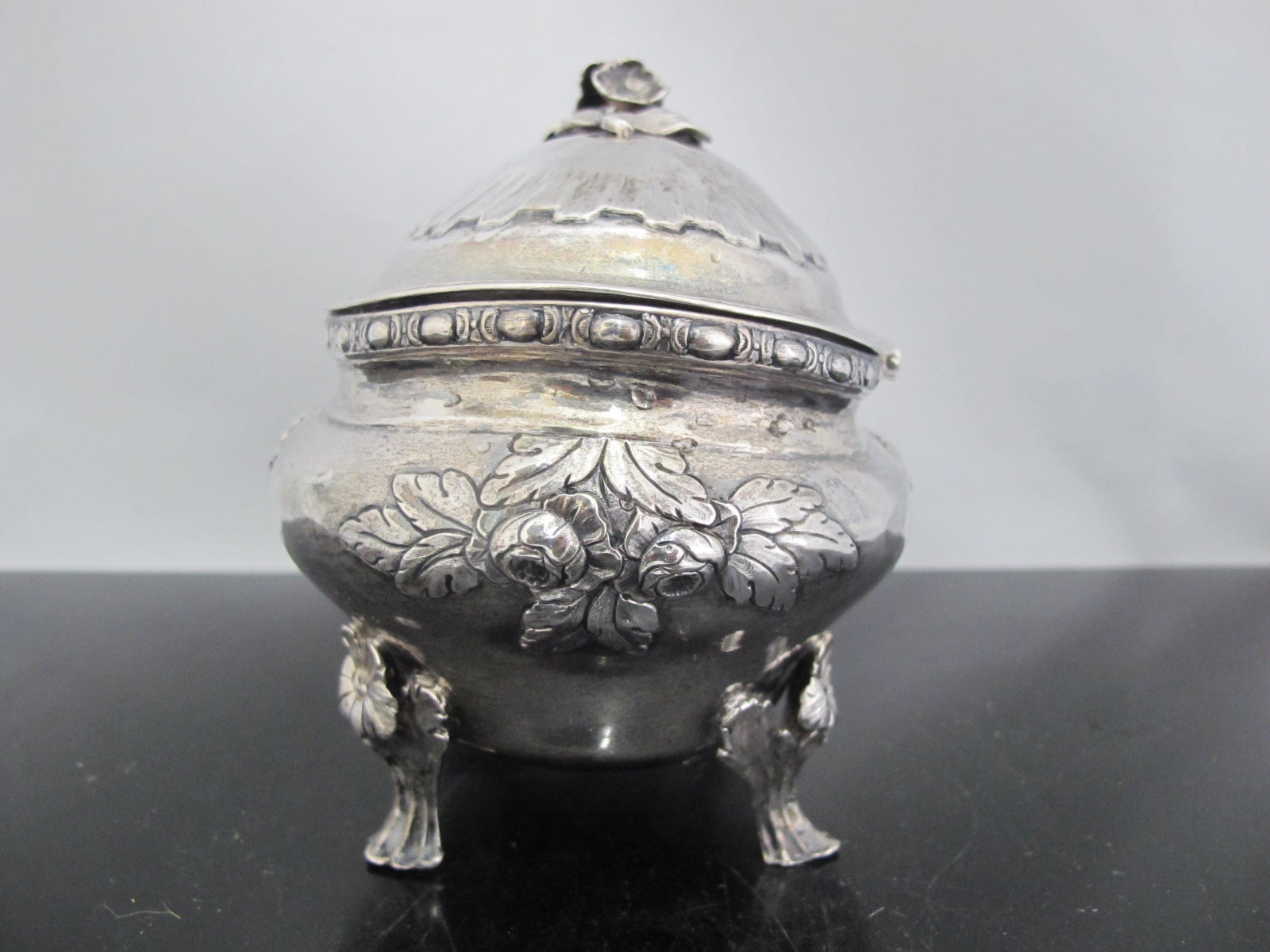 Swedish ROCOCO Style Sterling Silver Floral SUGAR BOX Casket with Hinged Lid