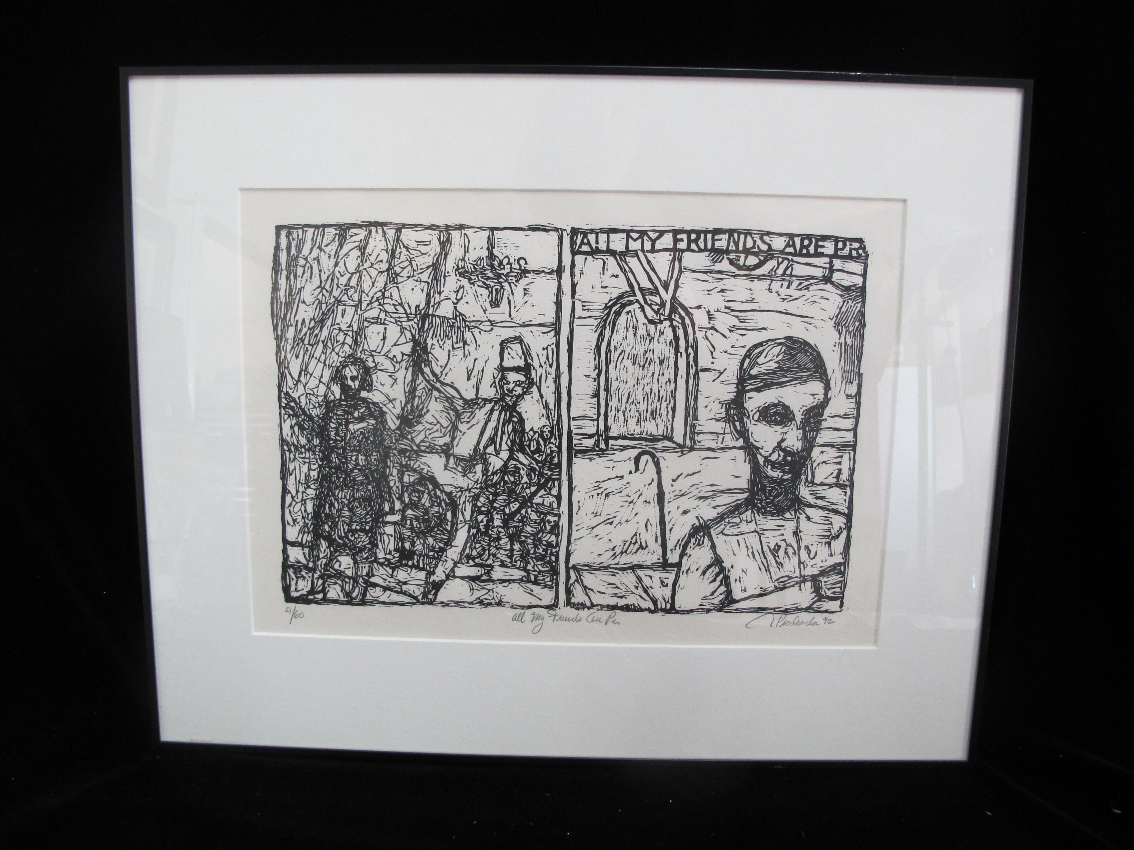 TOM PROCHASKA Framed Limited Edition Signed Woodcut ALL My Friends Are PI