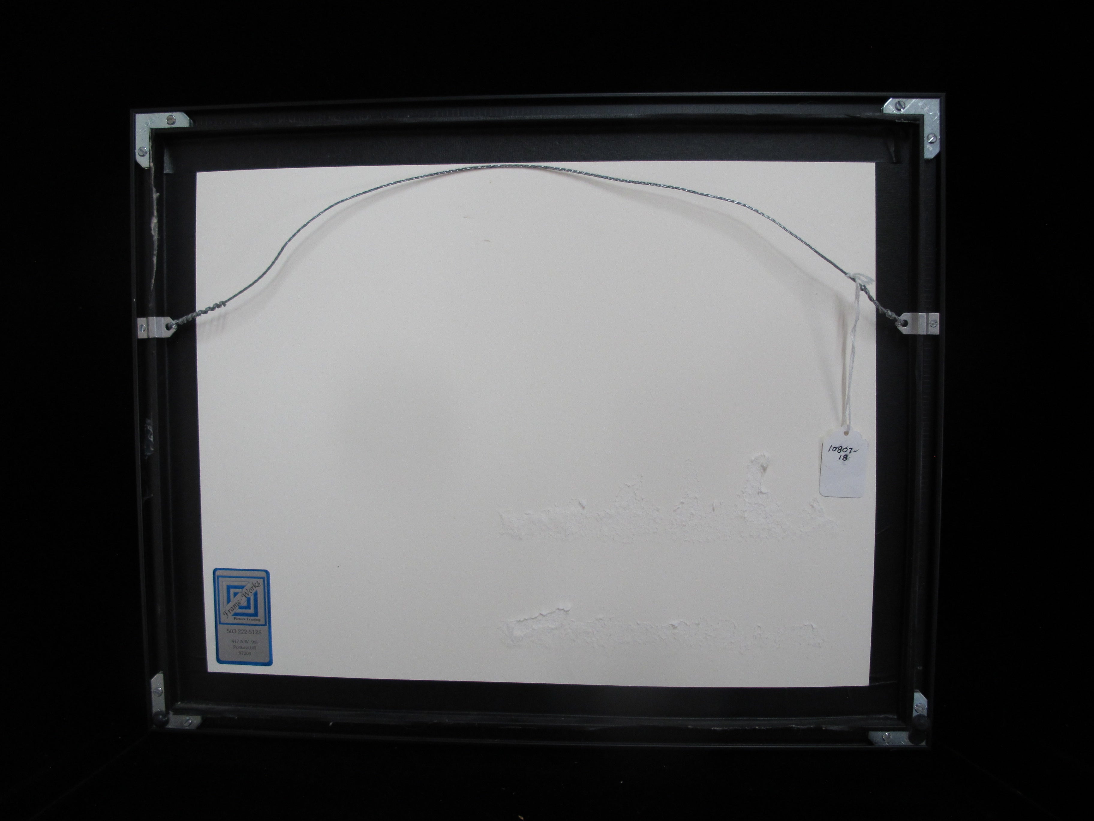 Simple thin black frame measures 19 1/2" x 15 1/2", image measures 14 1/4" x 10".