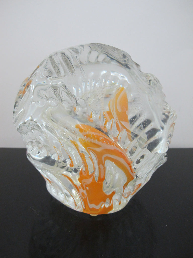 Large ROLLIN KARG Clear Dichroic Art Glass Orange KOI FISH Sculpture Paperweight