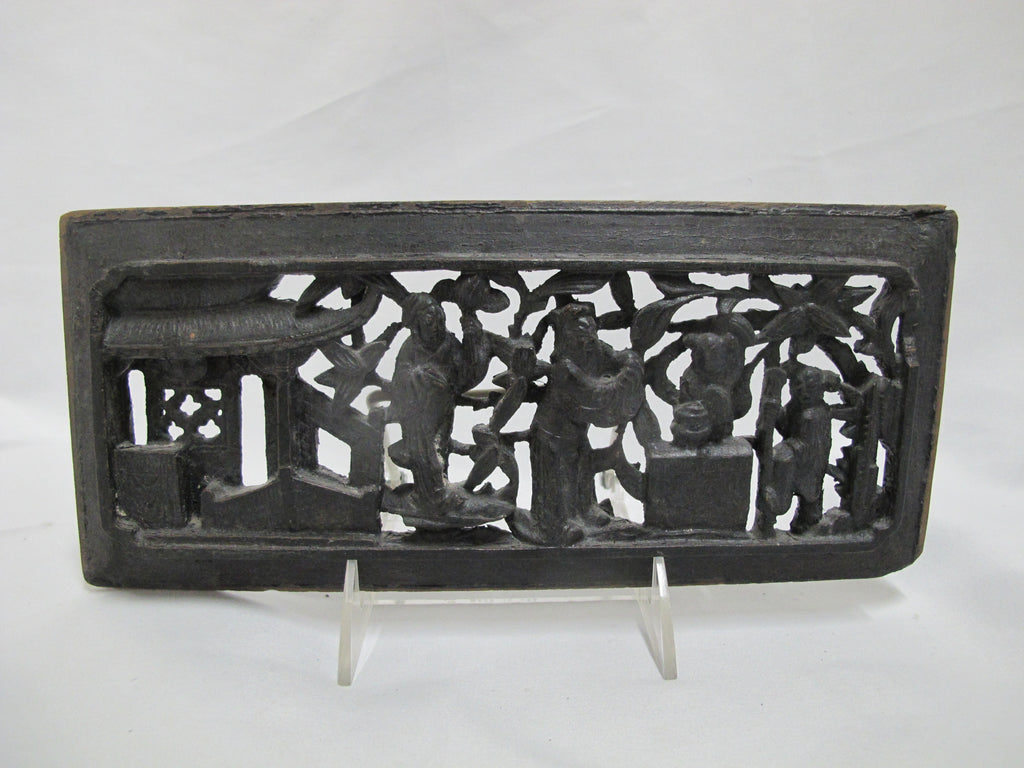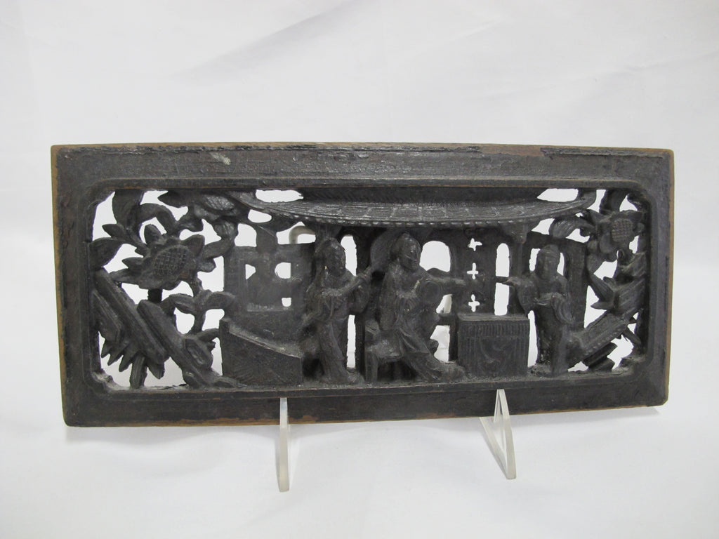 Antique CHINESE Carved Wood FIGURAL & Flower Wall Art Panel