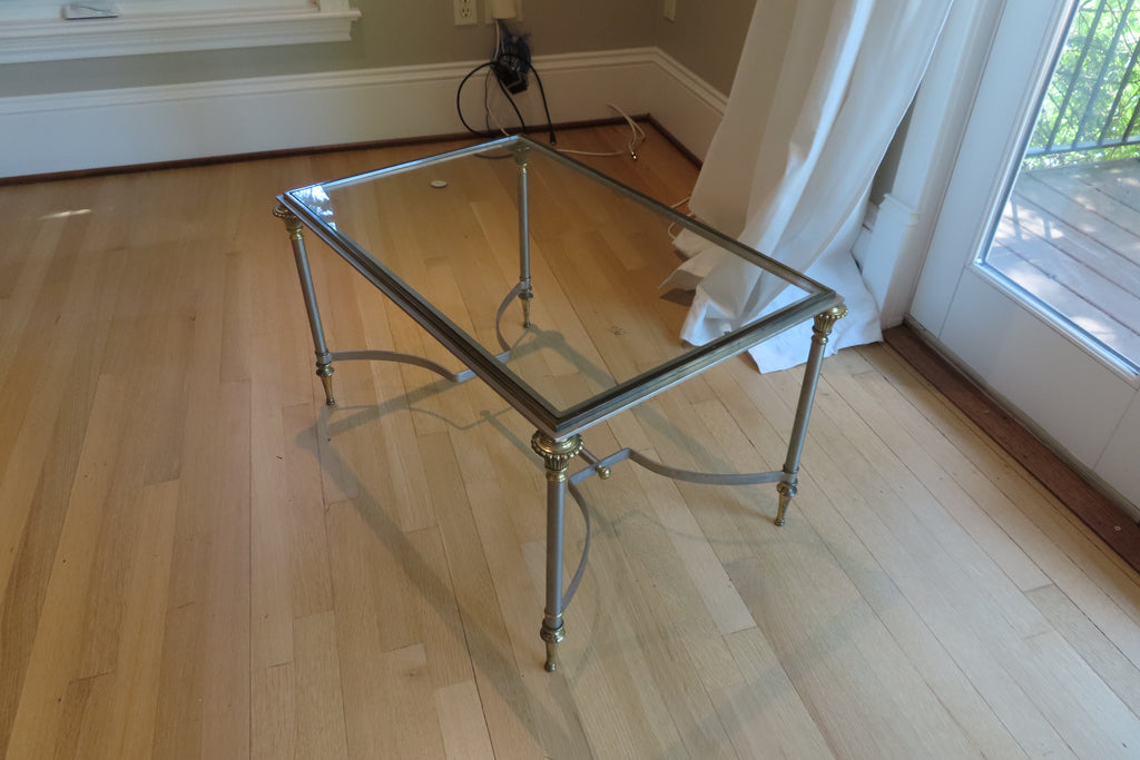 Fantastic Neoclassic Italian Brass & Steel Coffee Table with Glass Top