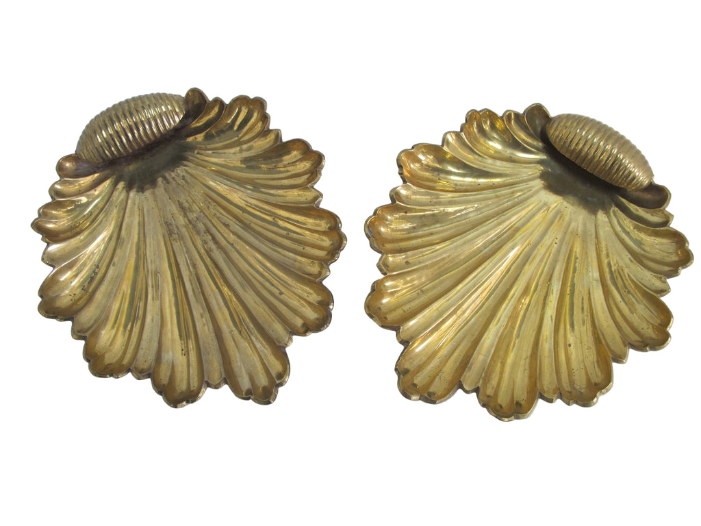 ITALIAN Raymor Style Solid Brass Coastal Footed SEASHELL Tray Dish Pair