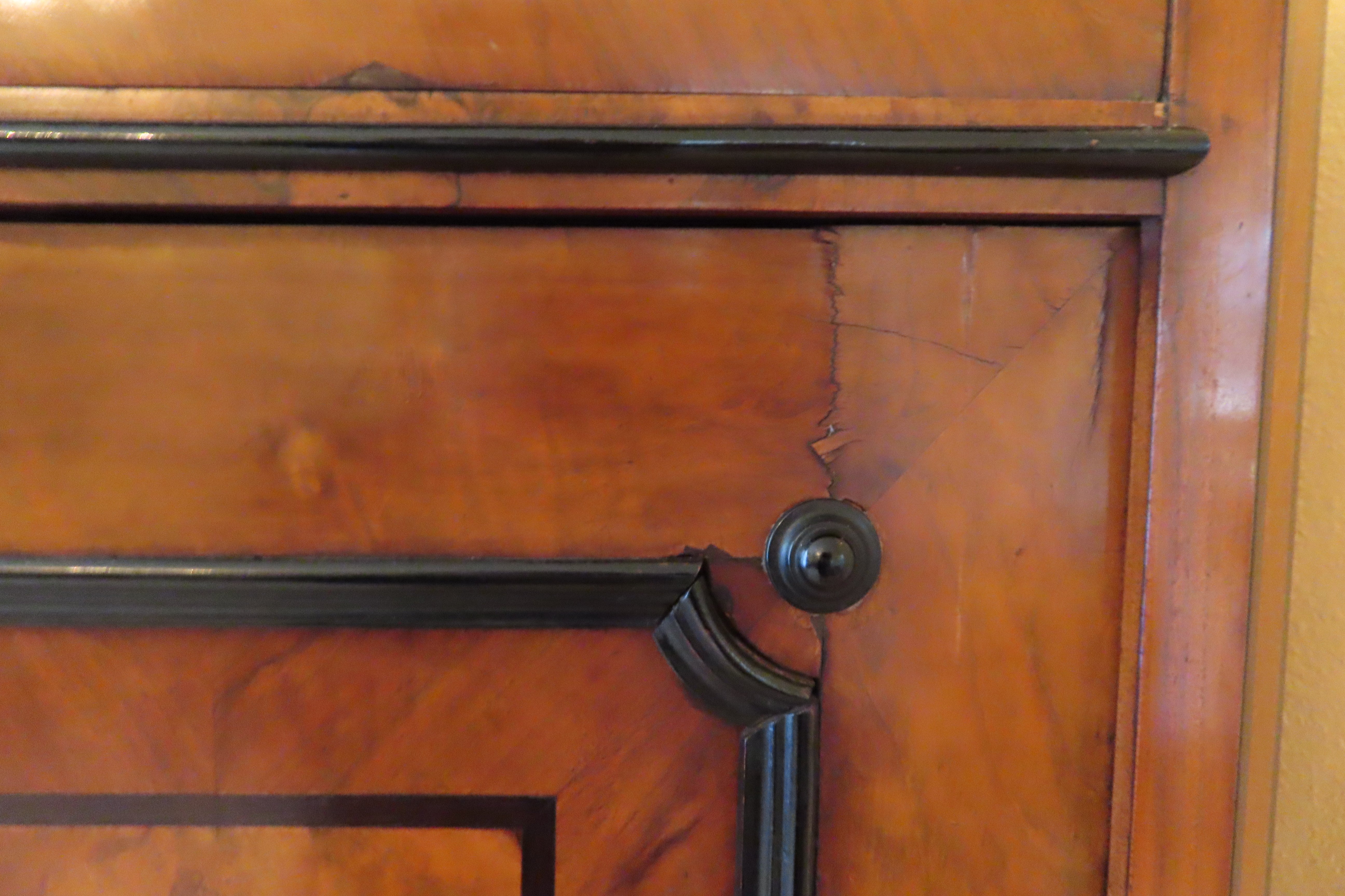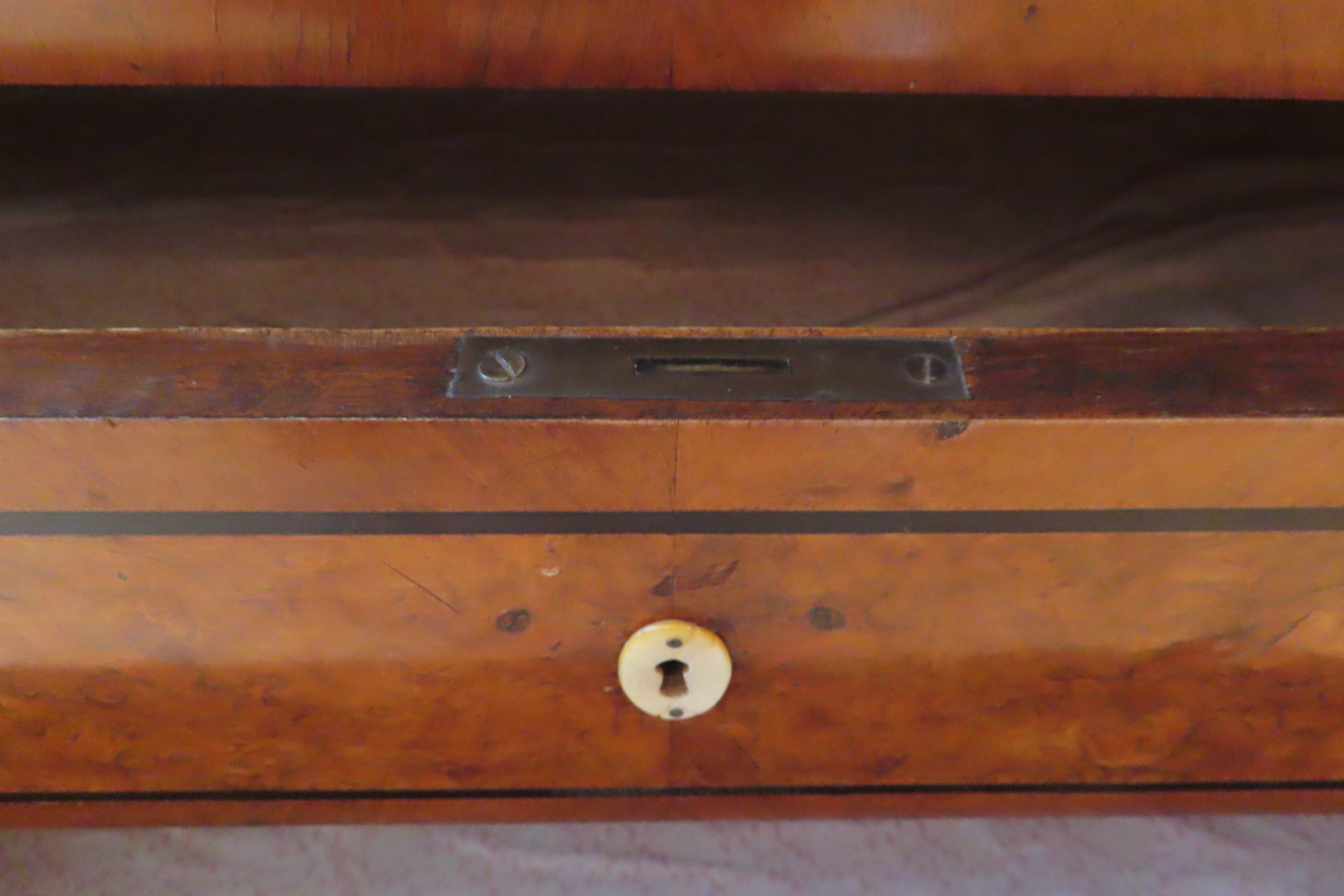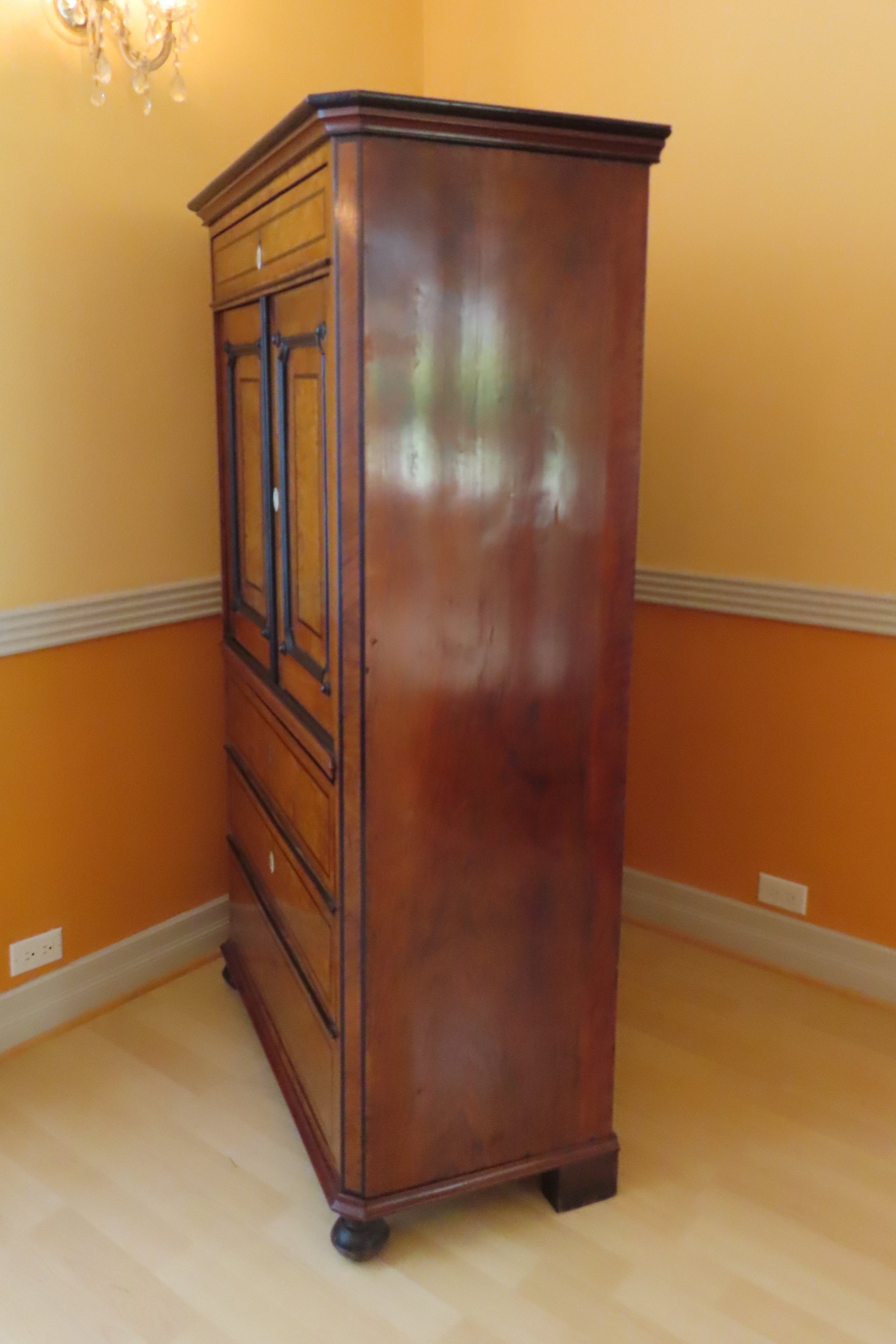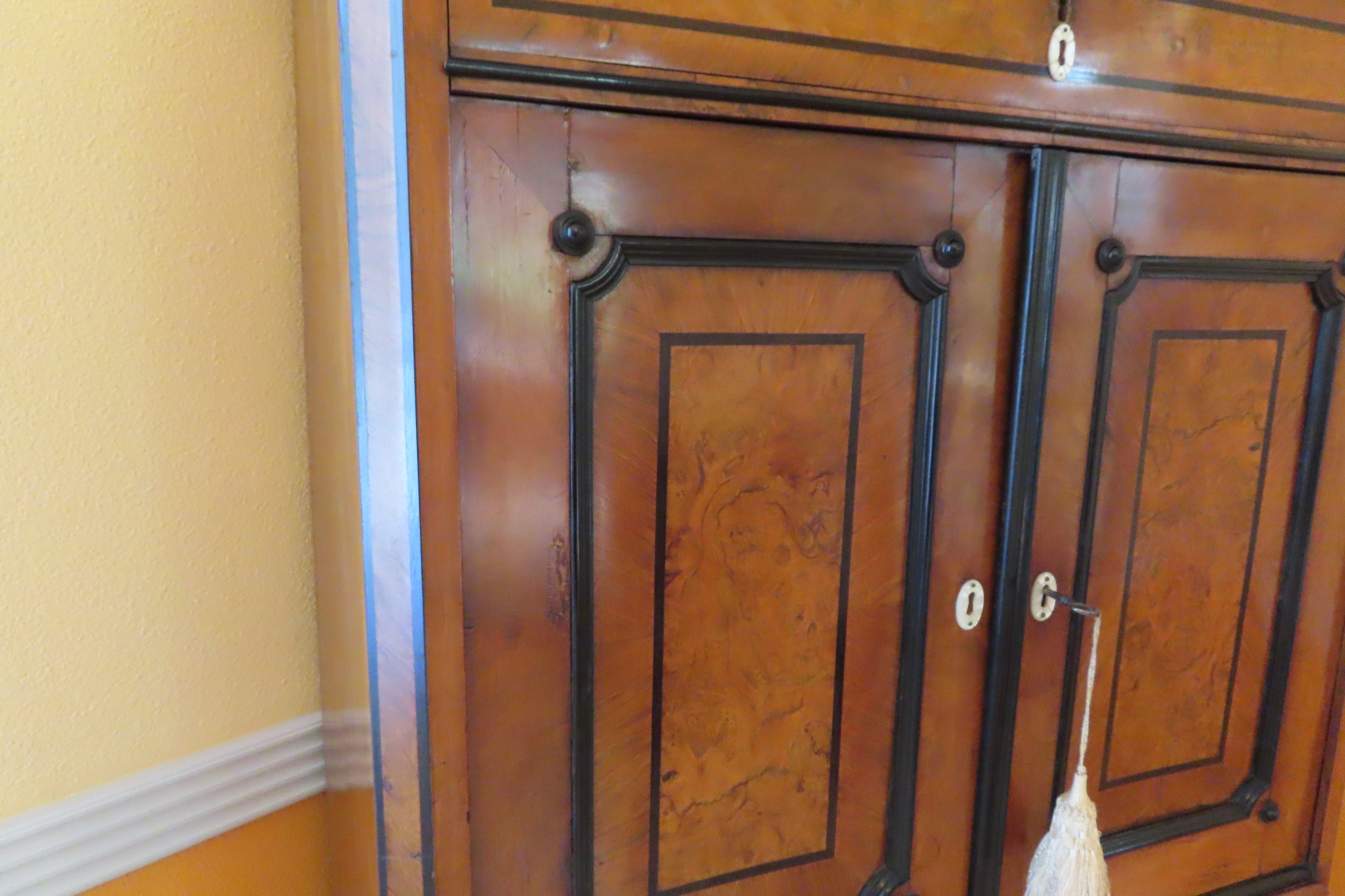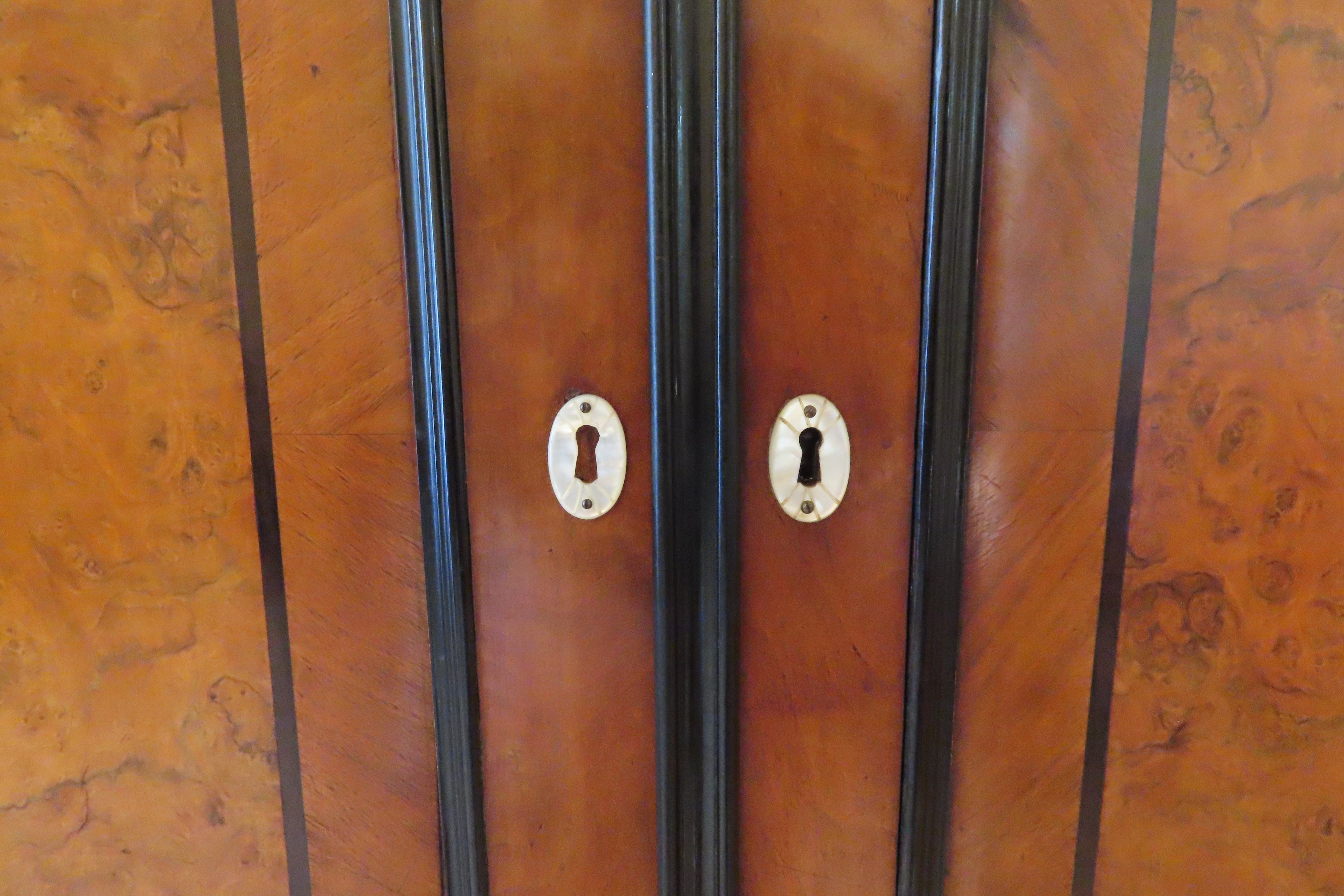 Antique Biedermeier Silver Cabinet with Mother of Pearl Escutcheons & Burl Walnut Accents