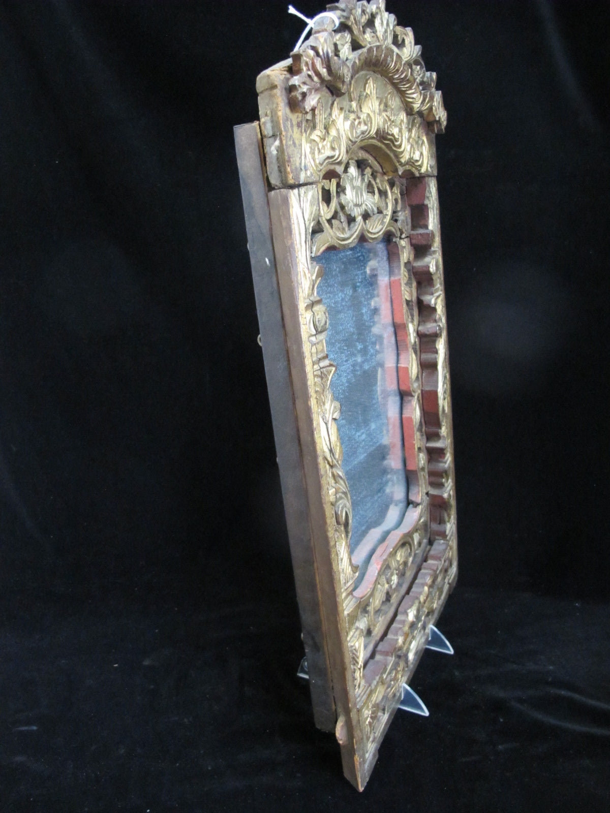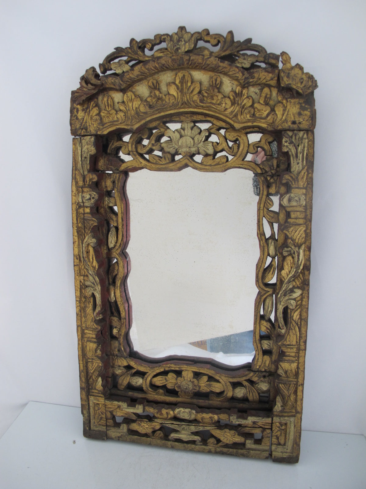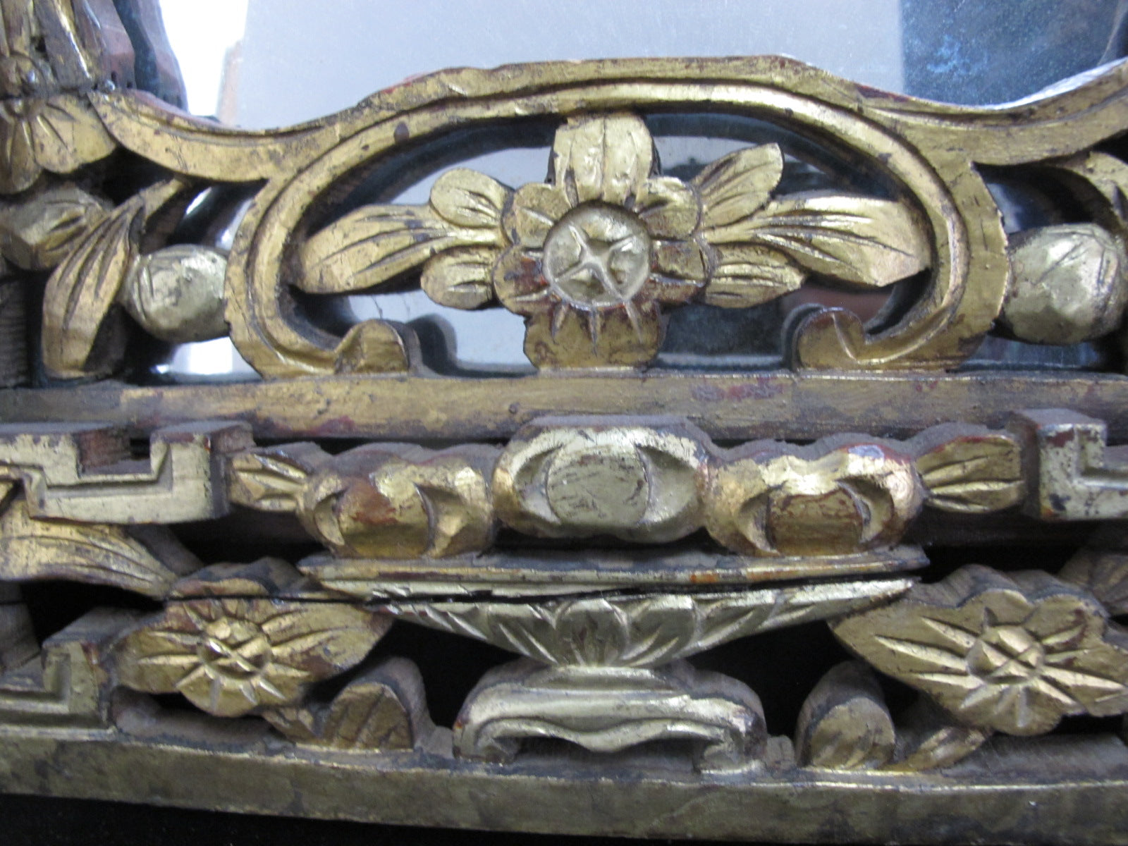 Antique CHINESE Carved Lotus FLOWER Gilt Wood Wall Hanging MIRROR