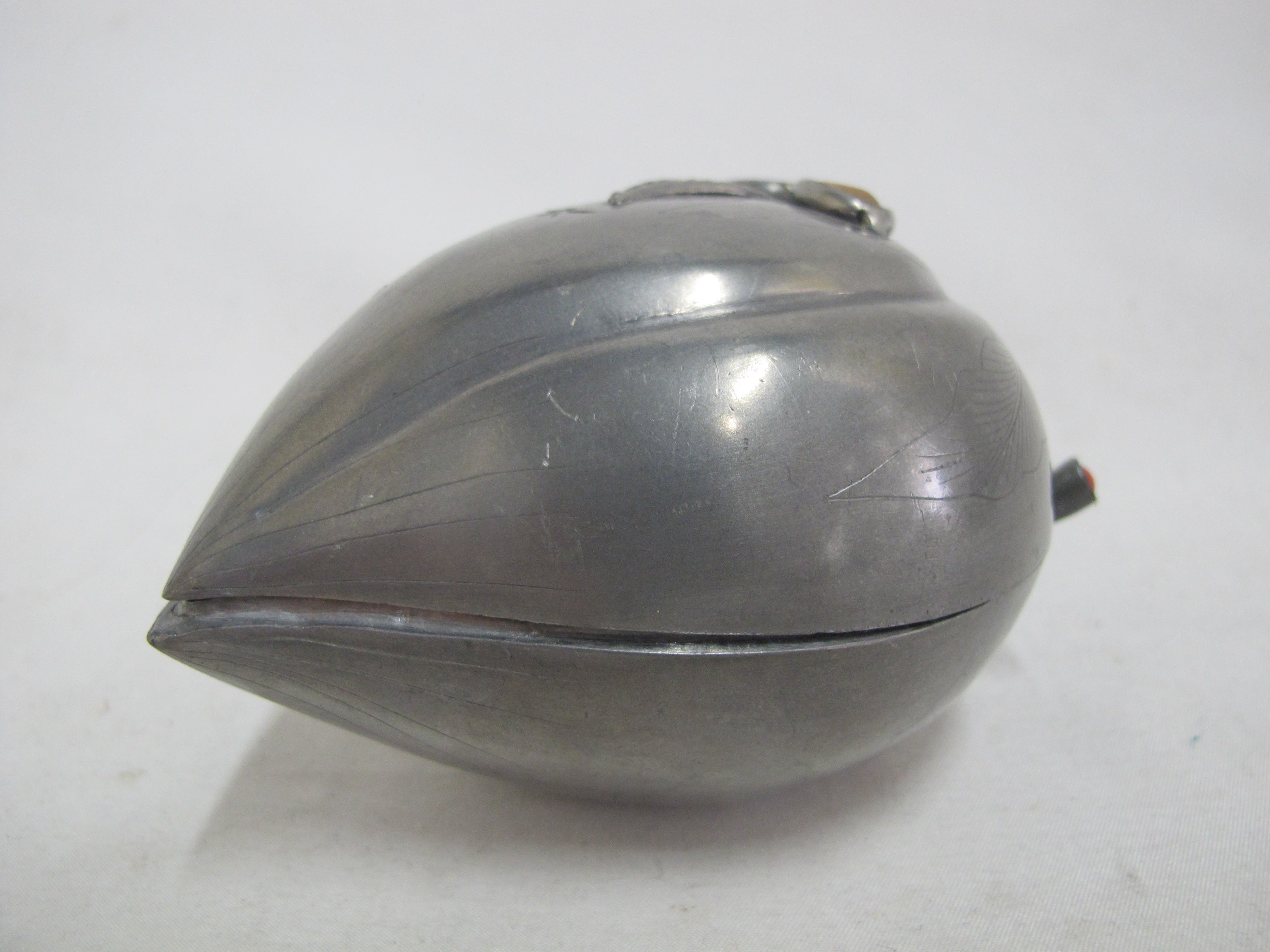 Antique CHINESE Inlaid Gemstone Pewter FRUIT Peach Form Altar or Trinket Box