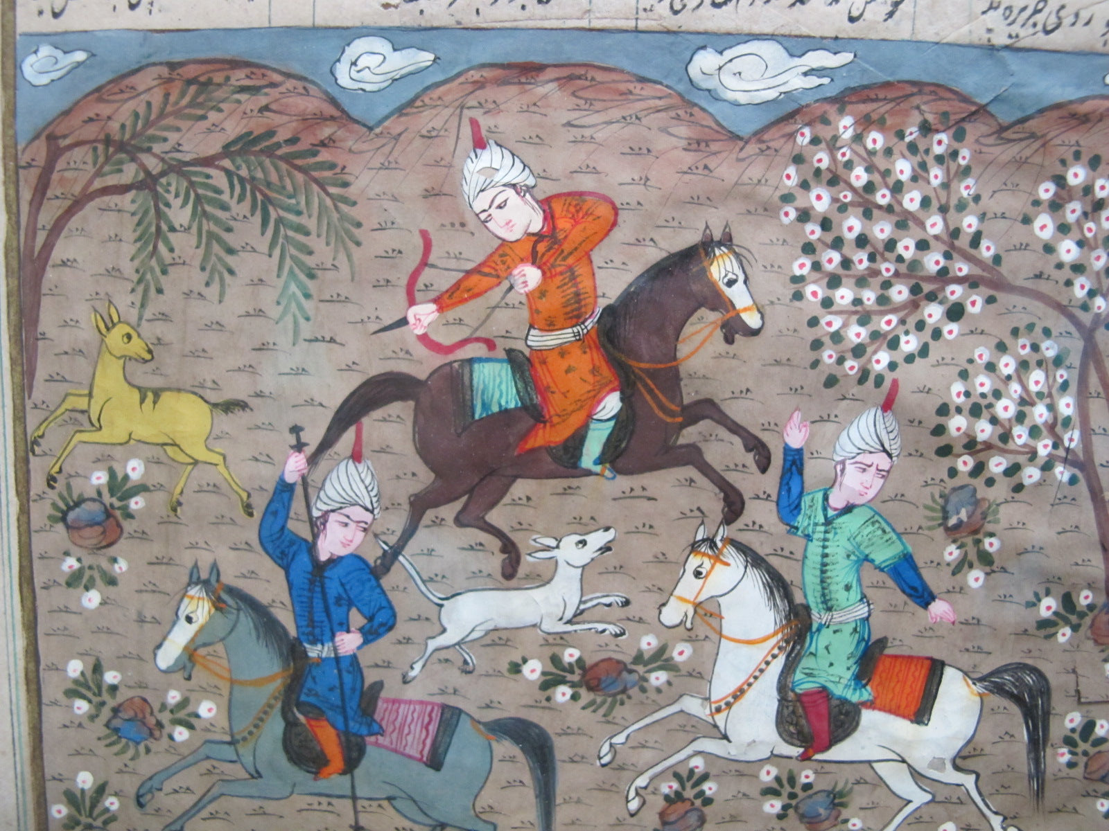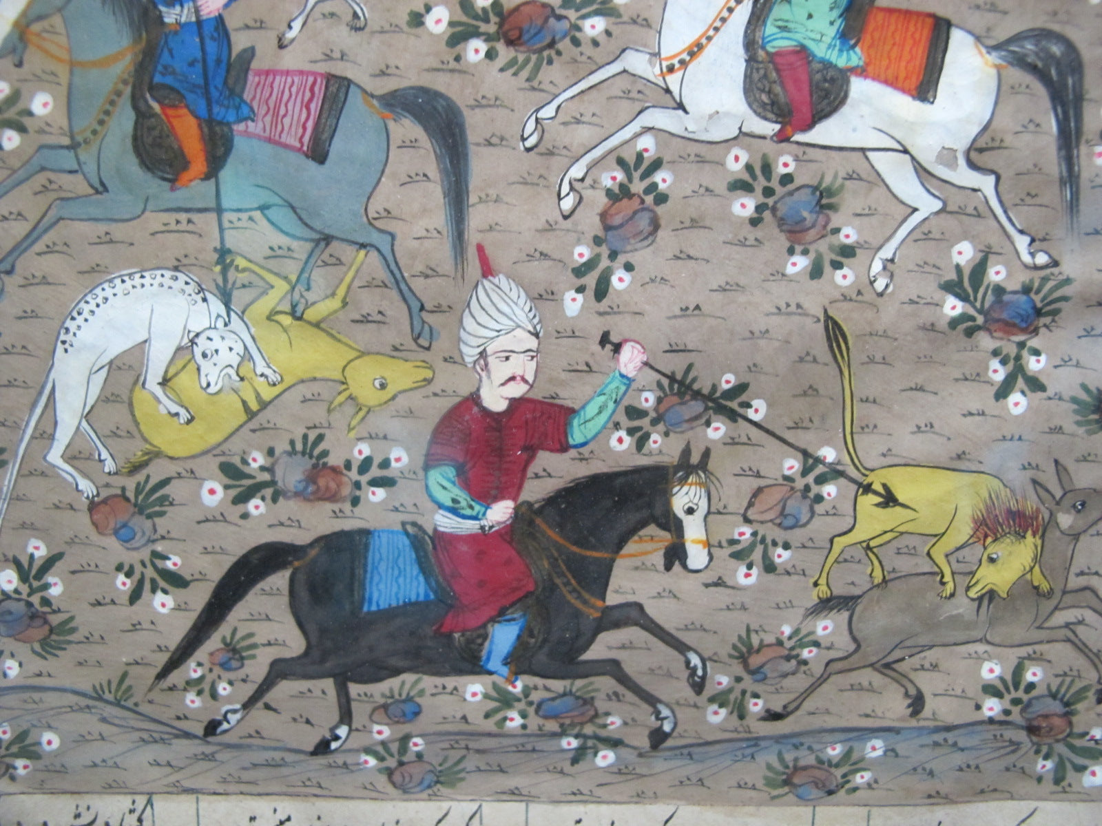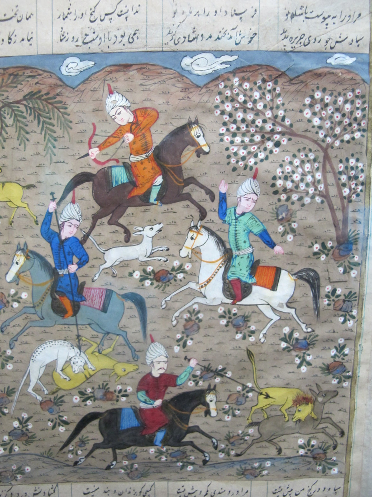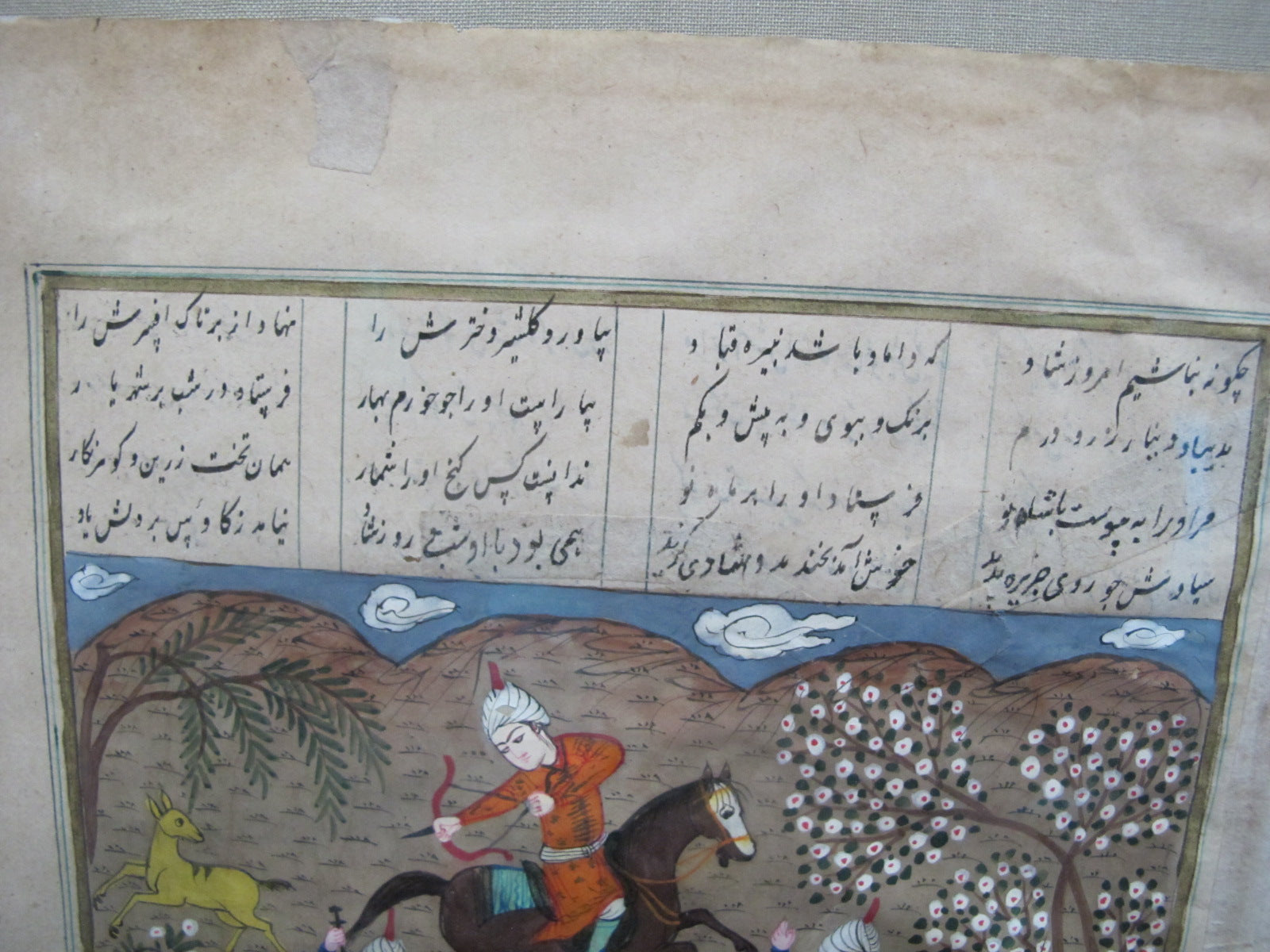 Antique PERSIAN Illuminated MANUSCRIPT Mughal Art HUNTING SCENE Painting