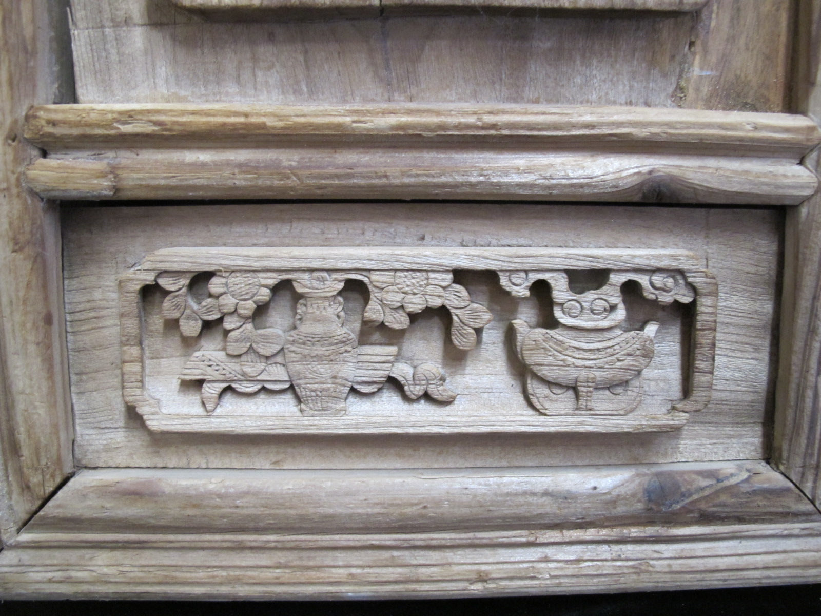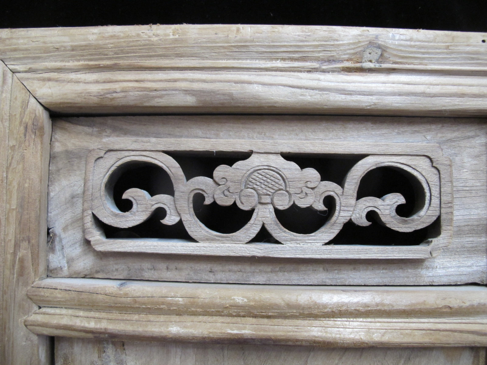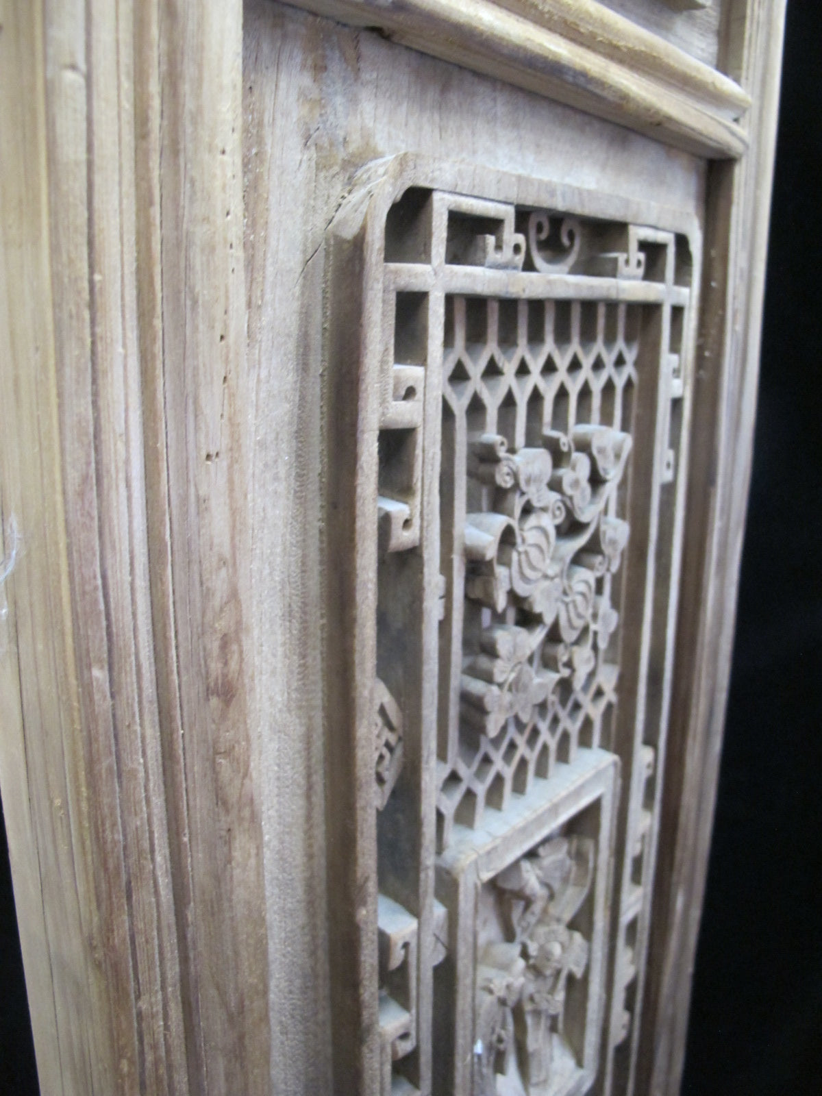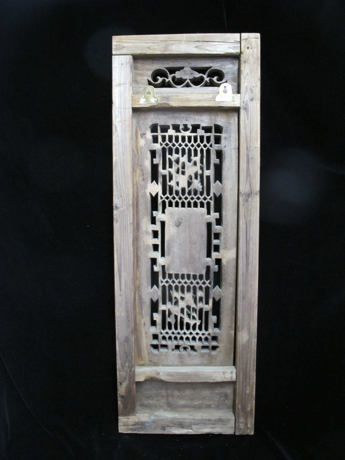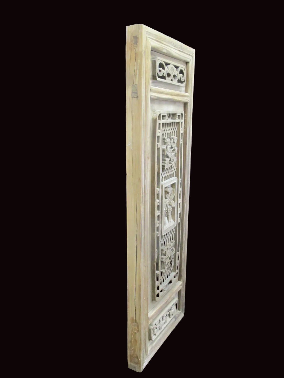 CHINESE Carved Lattice Flower & Figural Wood Window Shutter SCREEN Art Panel