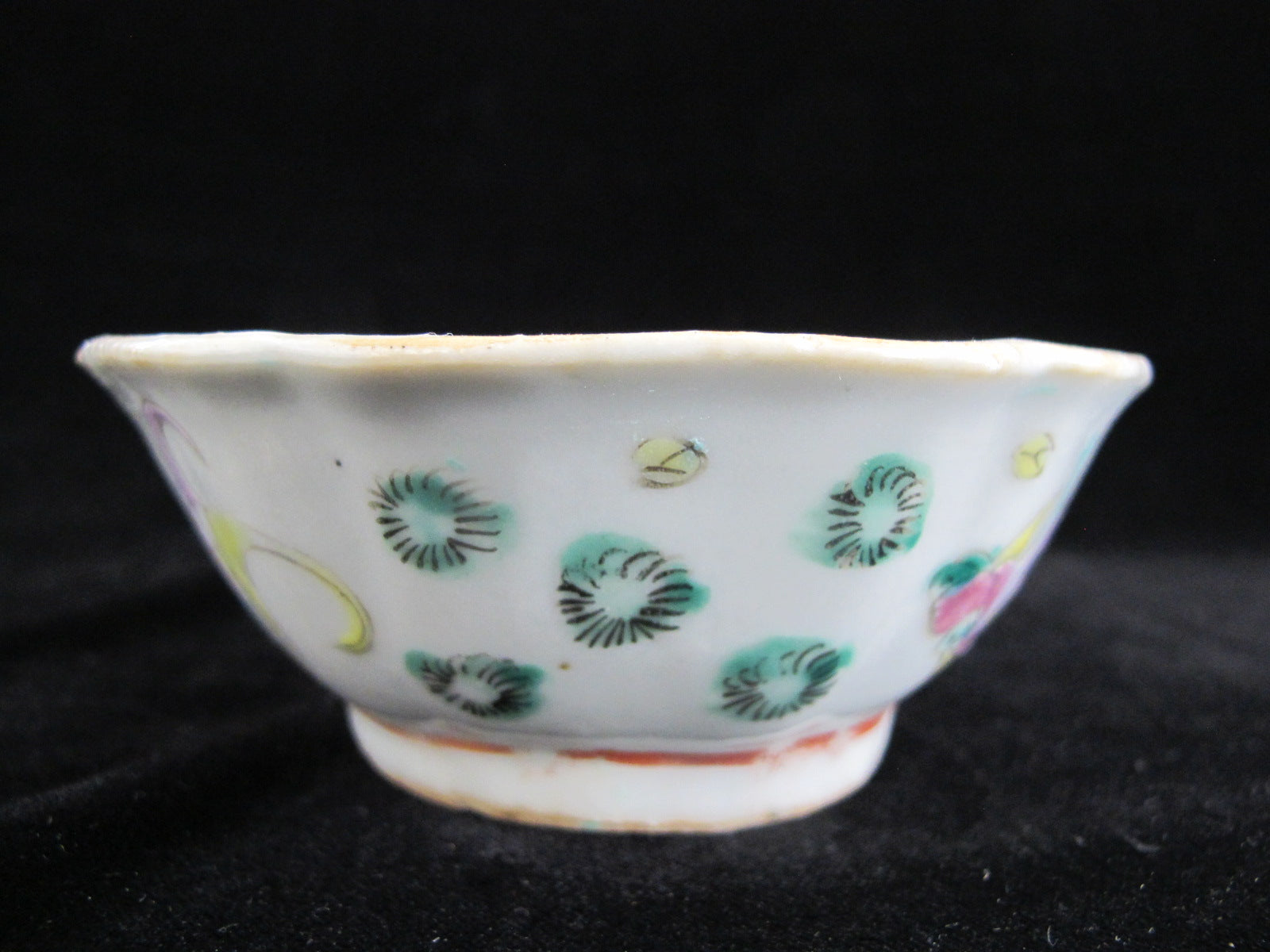 Chinese Famille Rose Nonya or Nyonya ware bowls are also known as "treasure bowls". This type of porcelain is characterized by it's pale or soft colors, often including pink. Nyonya ware specifically refers to the porcelain produced for the Peranakan Chinese communities in Southeast Asia, particularly Malaysia, Singapore, and Indonesia. These bowls often feature bright colors and floral motifs, as seen here and were used for special occasions and family meals.
