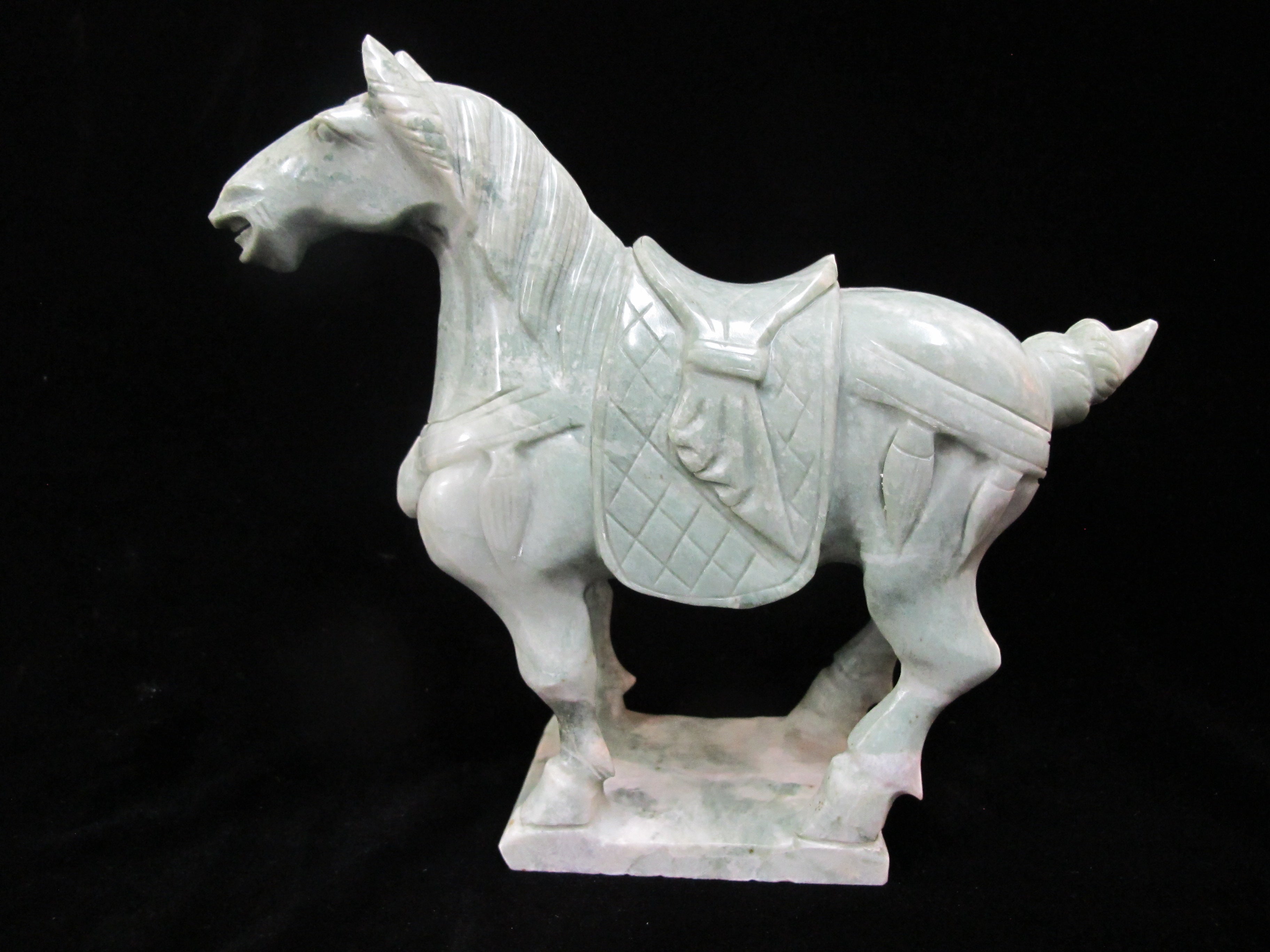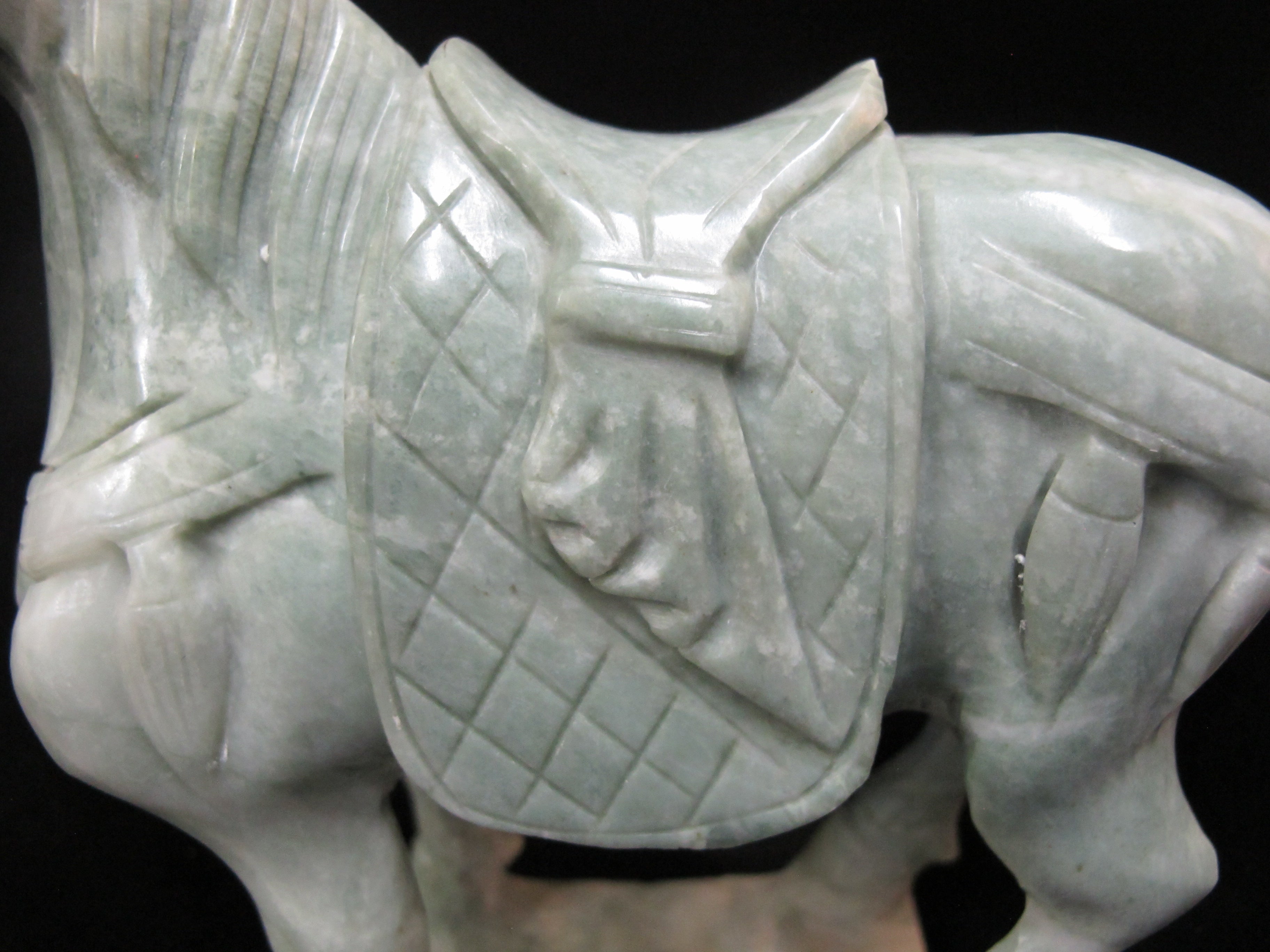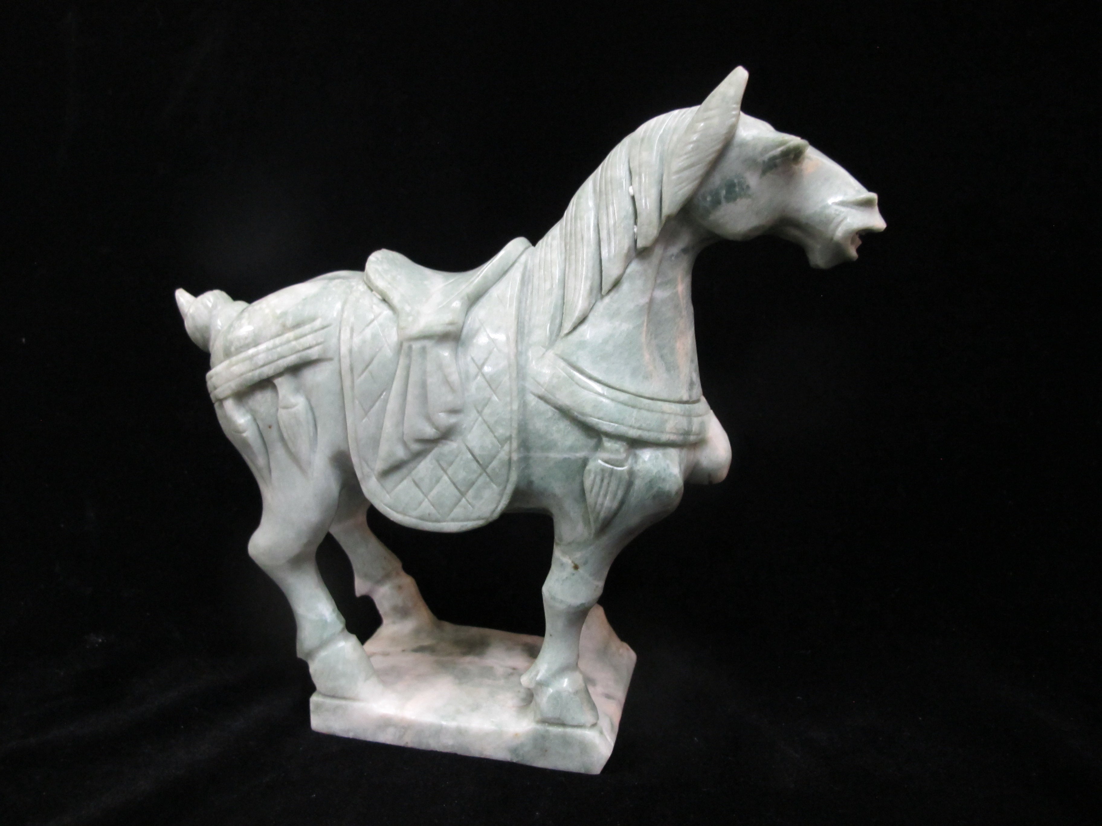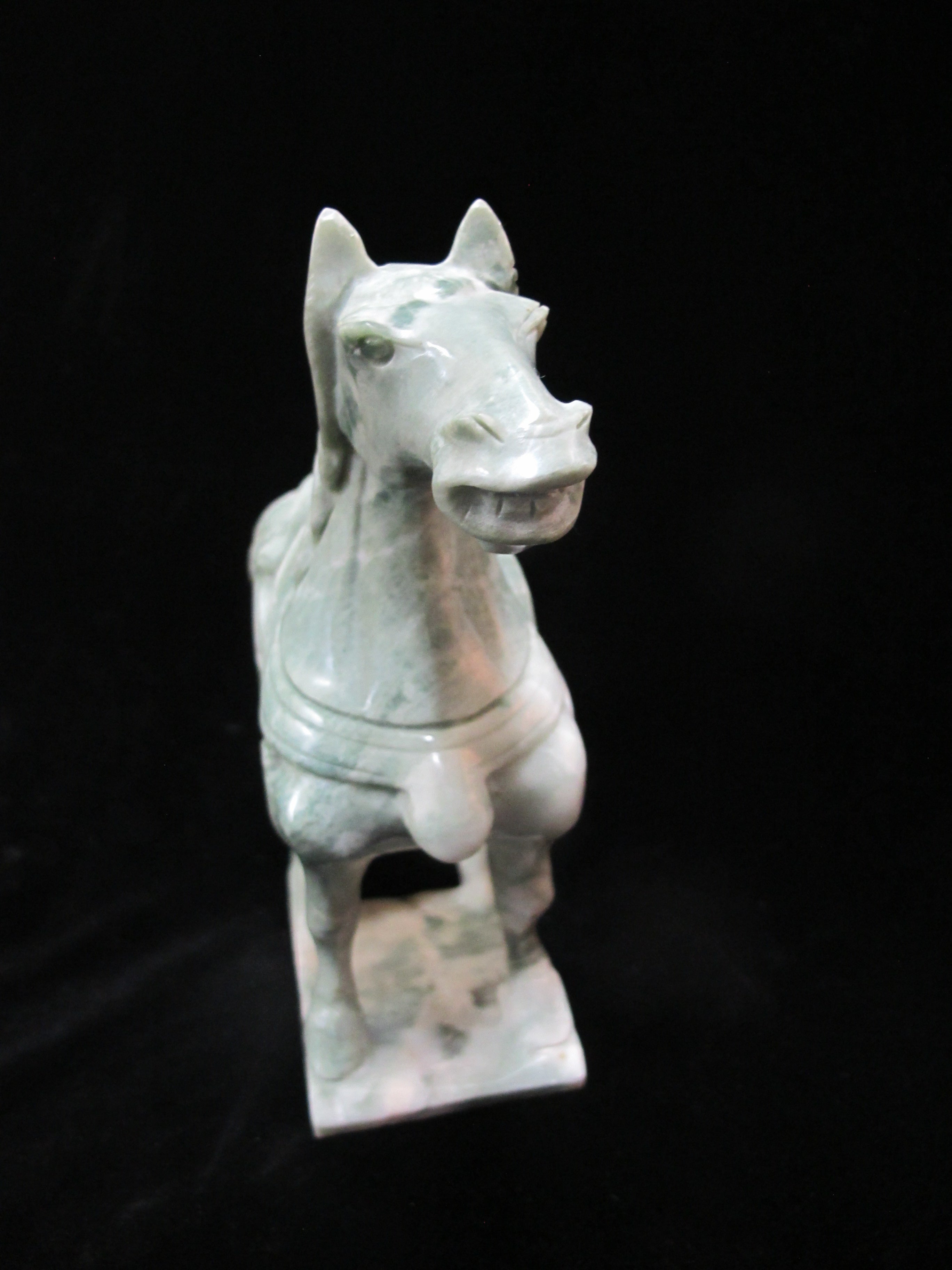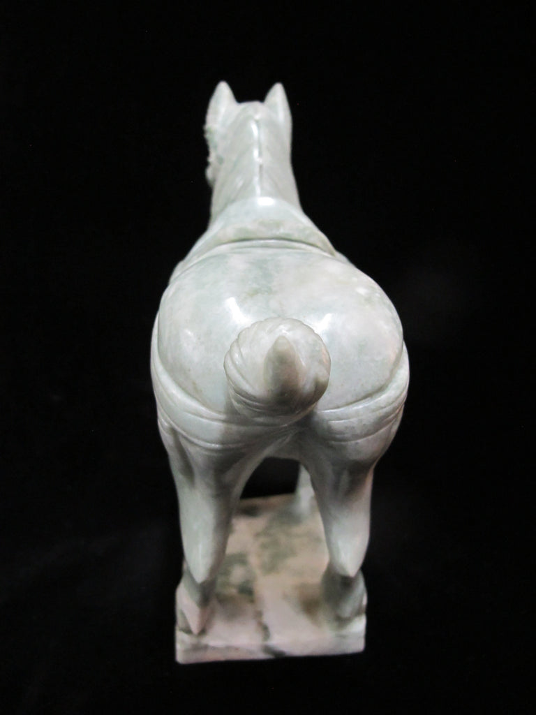 Chinese finely carved marble horse in green. Measures 8" x 7.25" tall x 2.75". Excellent condition, no chips, cracks, or repairs.