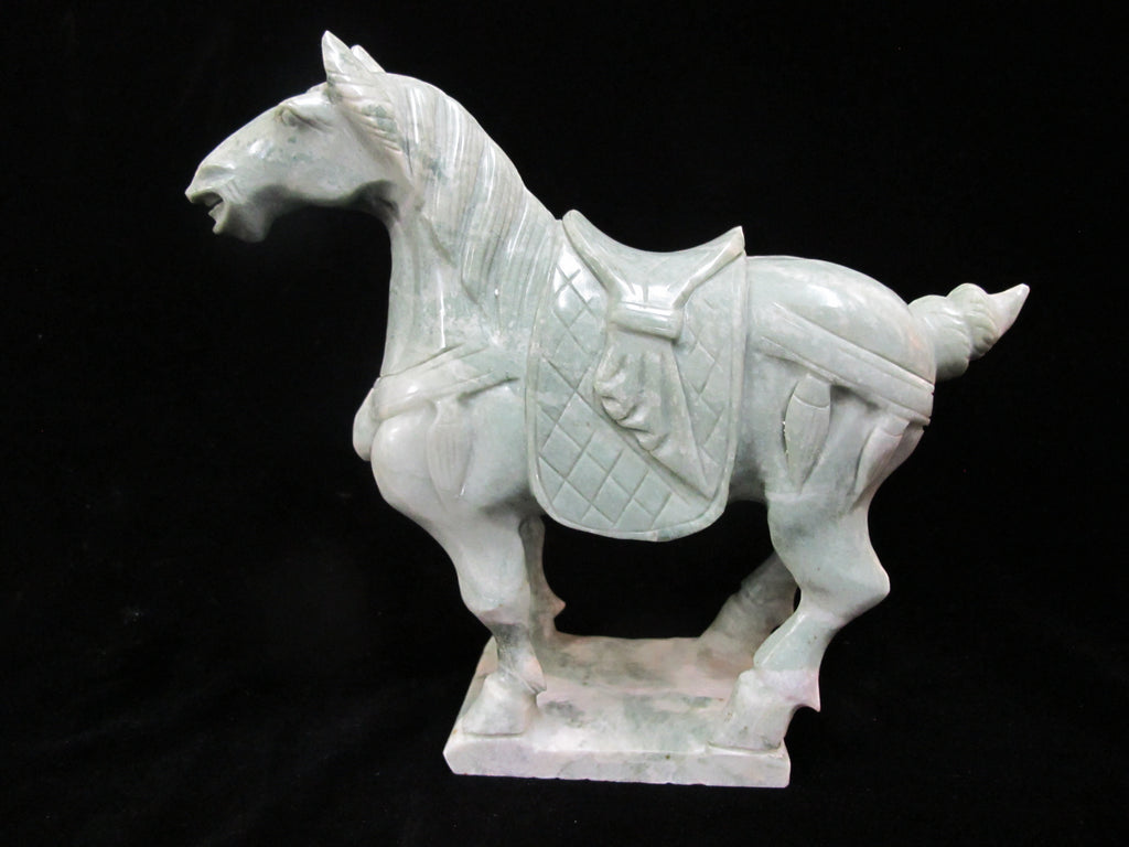 CHINESE Finely Carved Green Hard Stone Gallant HORSE Sculpture