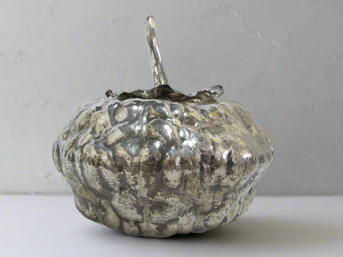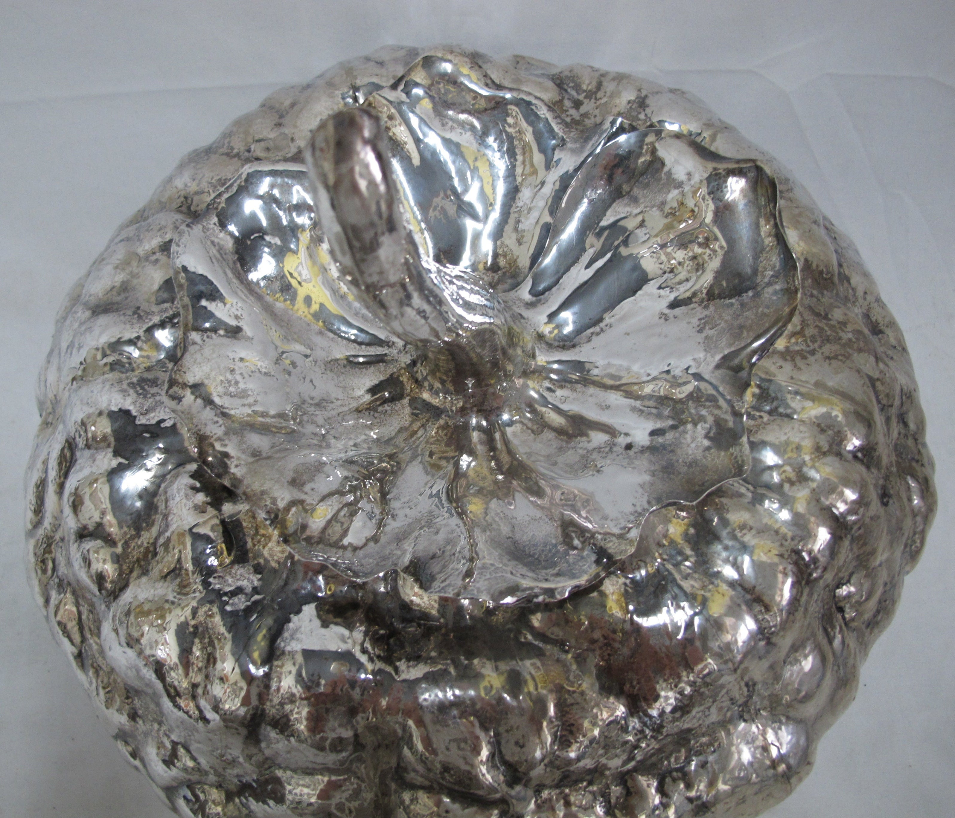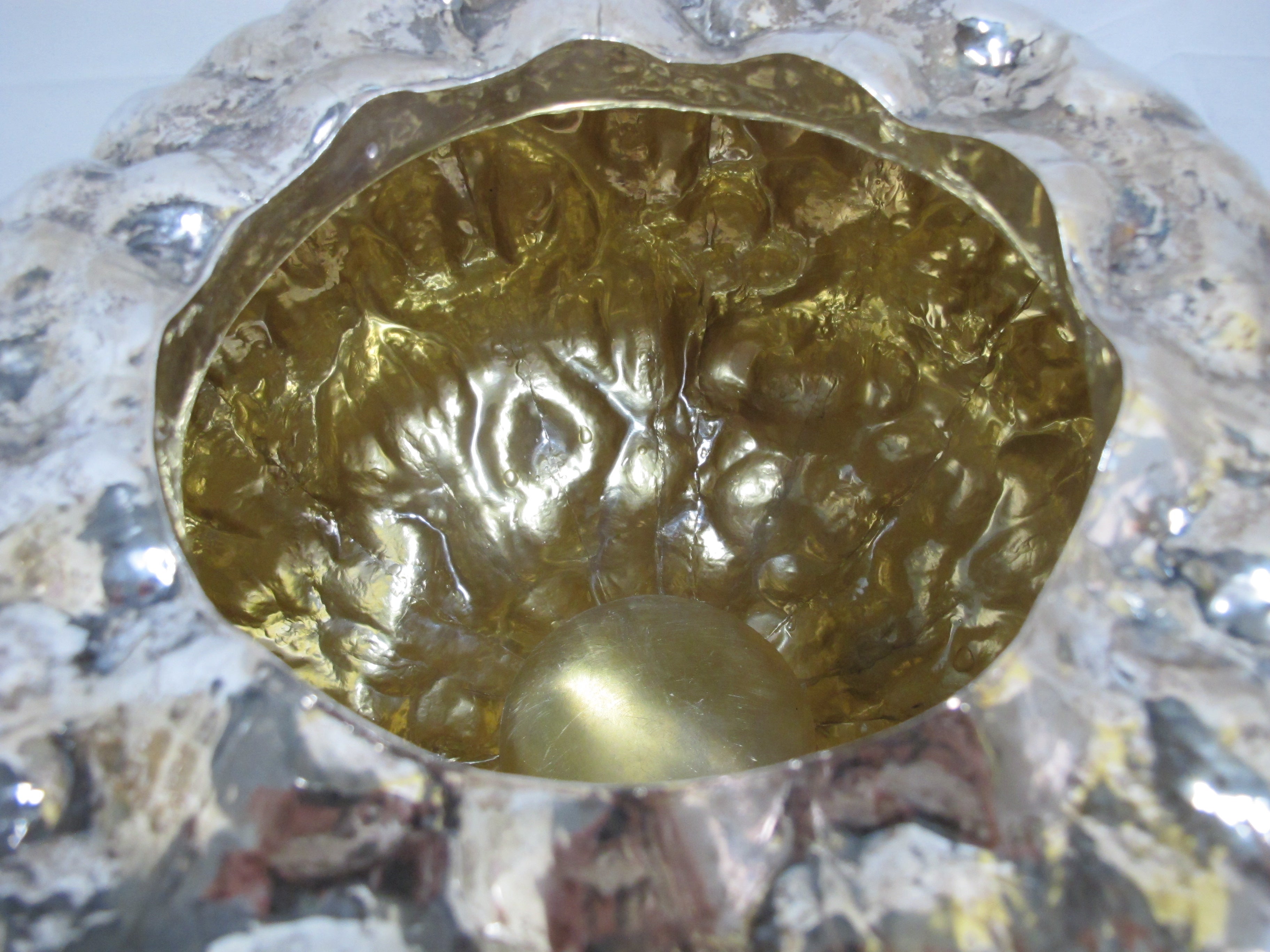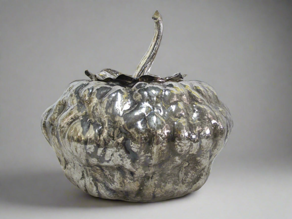 Monumental Gianmaria Buccellati pure sterling silver "Pumpkin" centerpiece box with lid. Very rare, hand made in silver. Pumpkin stalk lid opens to large container.