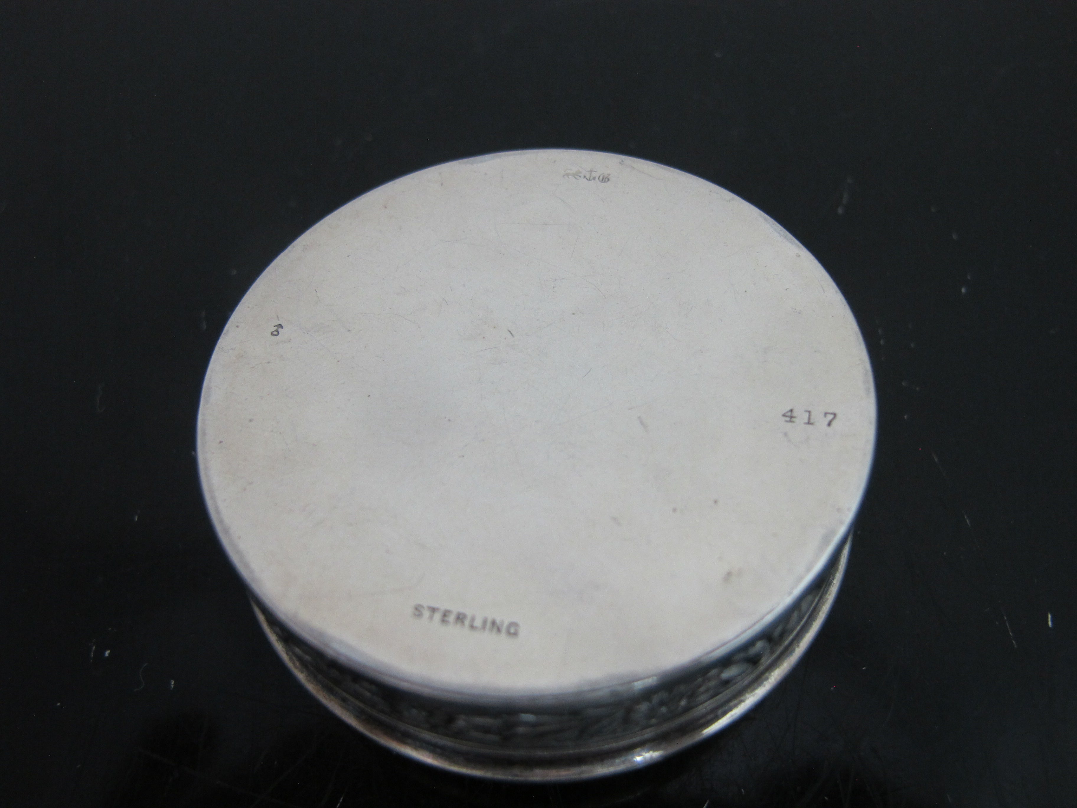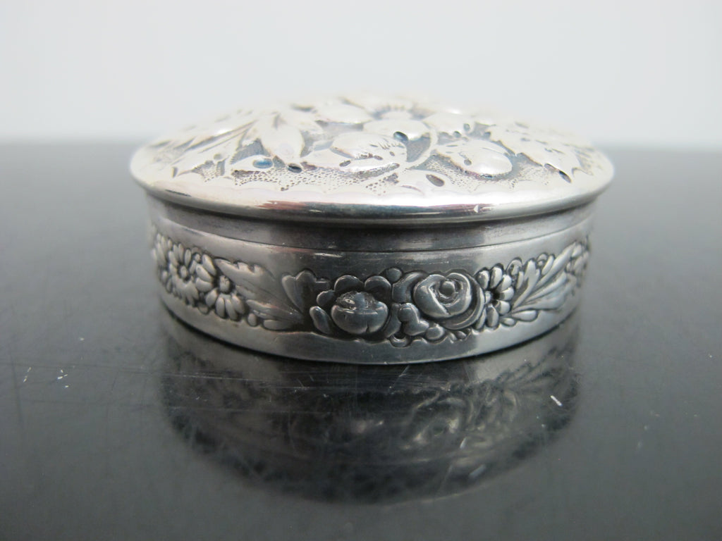 GORHAM 417 Sterling Silver REPOUSSE Flower Round Trinket or Snuff Box