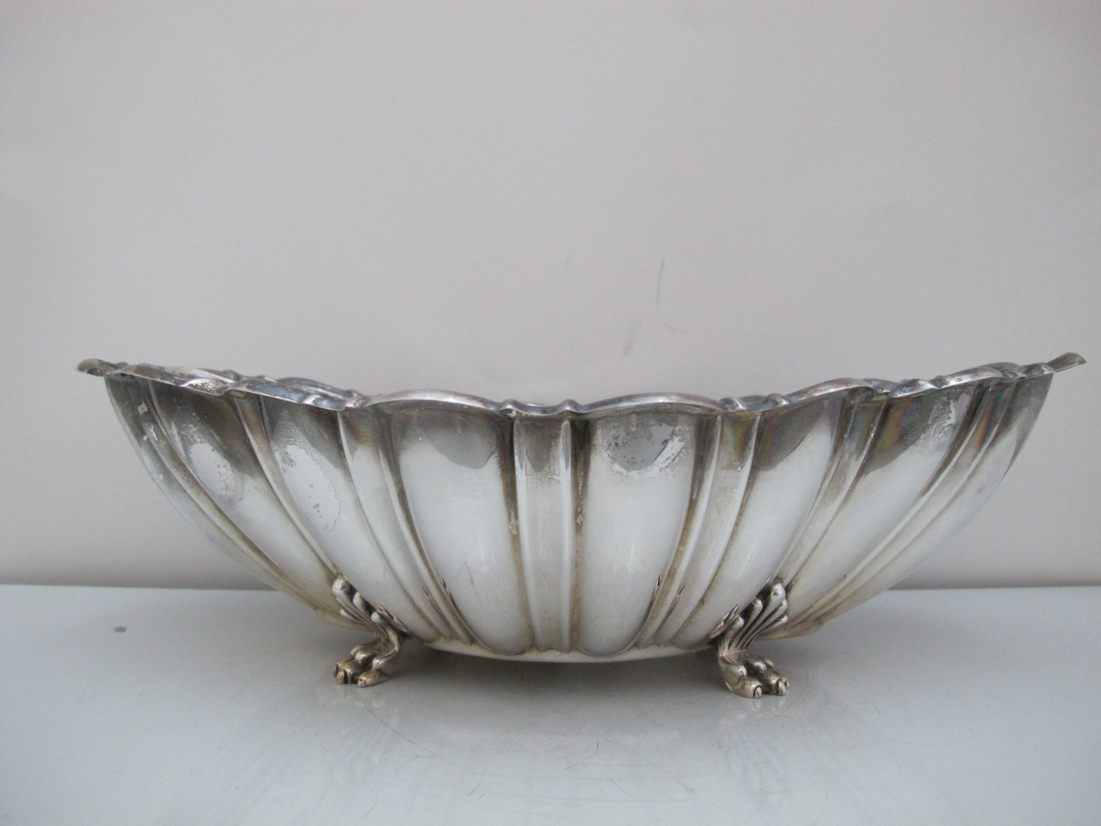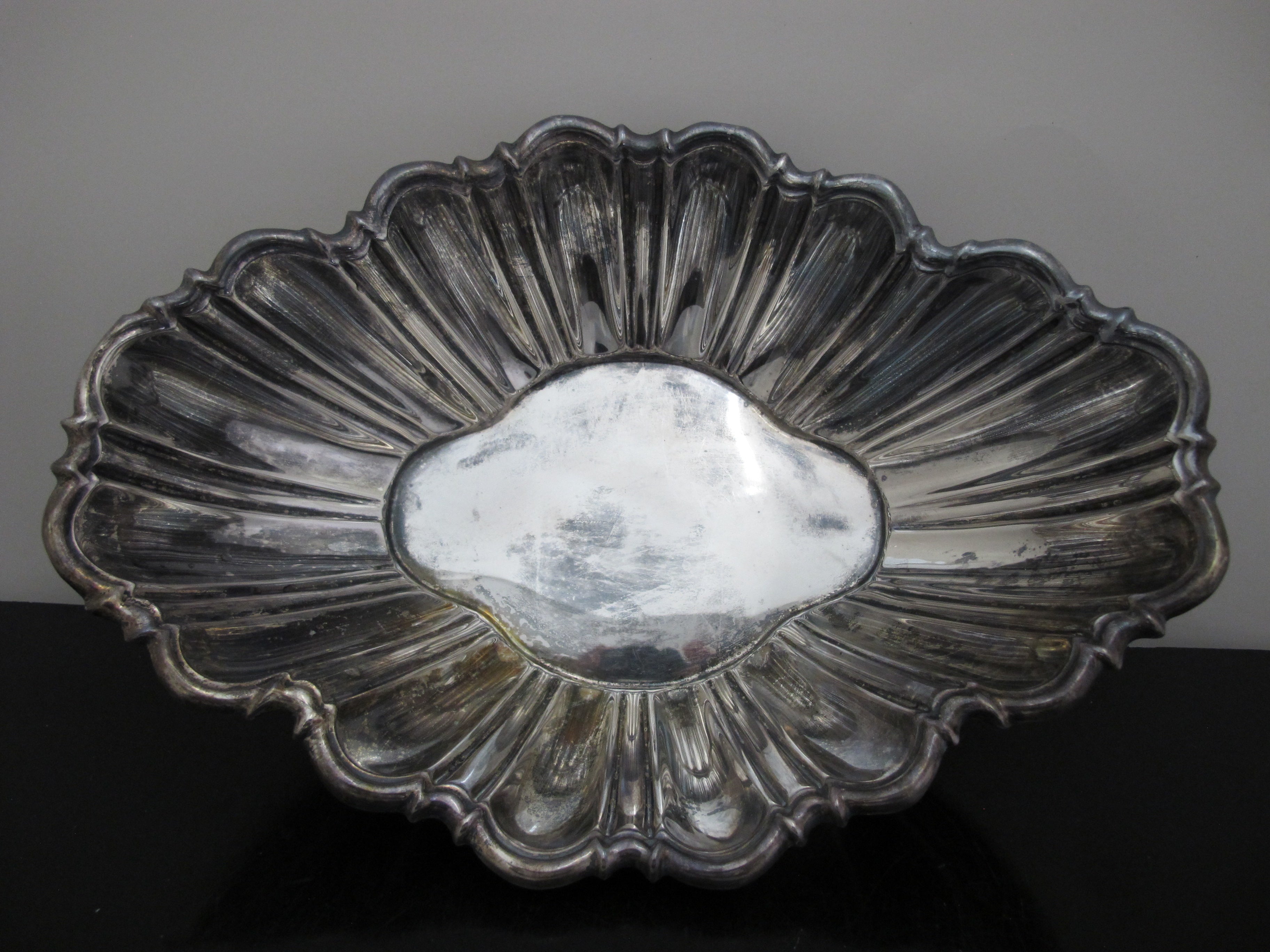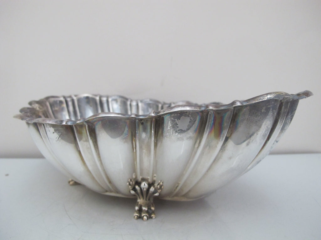 Luxurious Reed & Barton X811 sterling silver centerpiece. Deep footed bowl with scalloped rim. Weighs 637 grams. Measures 12 1/2" x 8 3/4" x 3 1/2" tall. Excellent condition, needs a good polishing, no dents of dings.