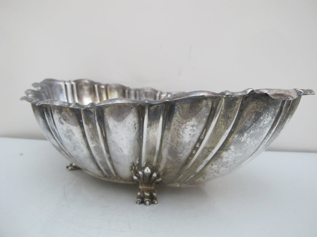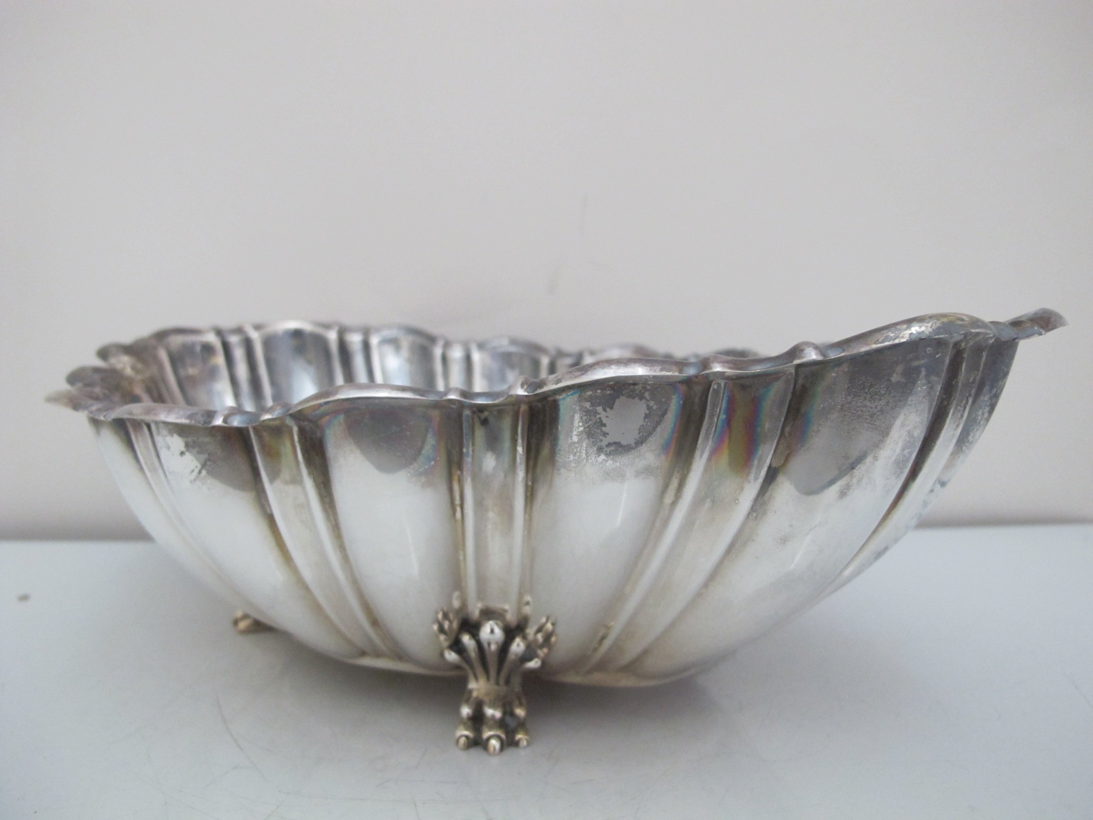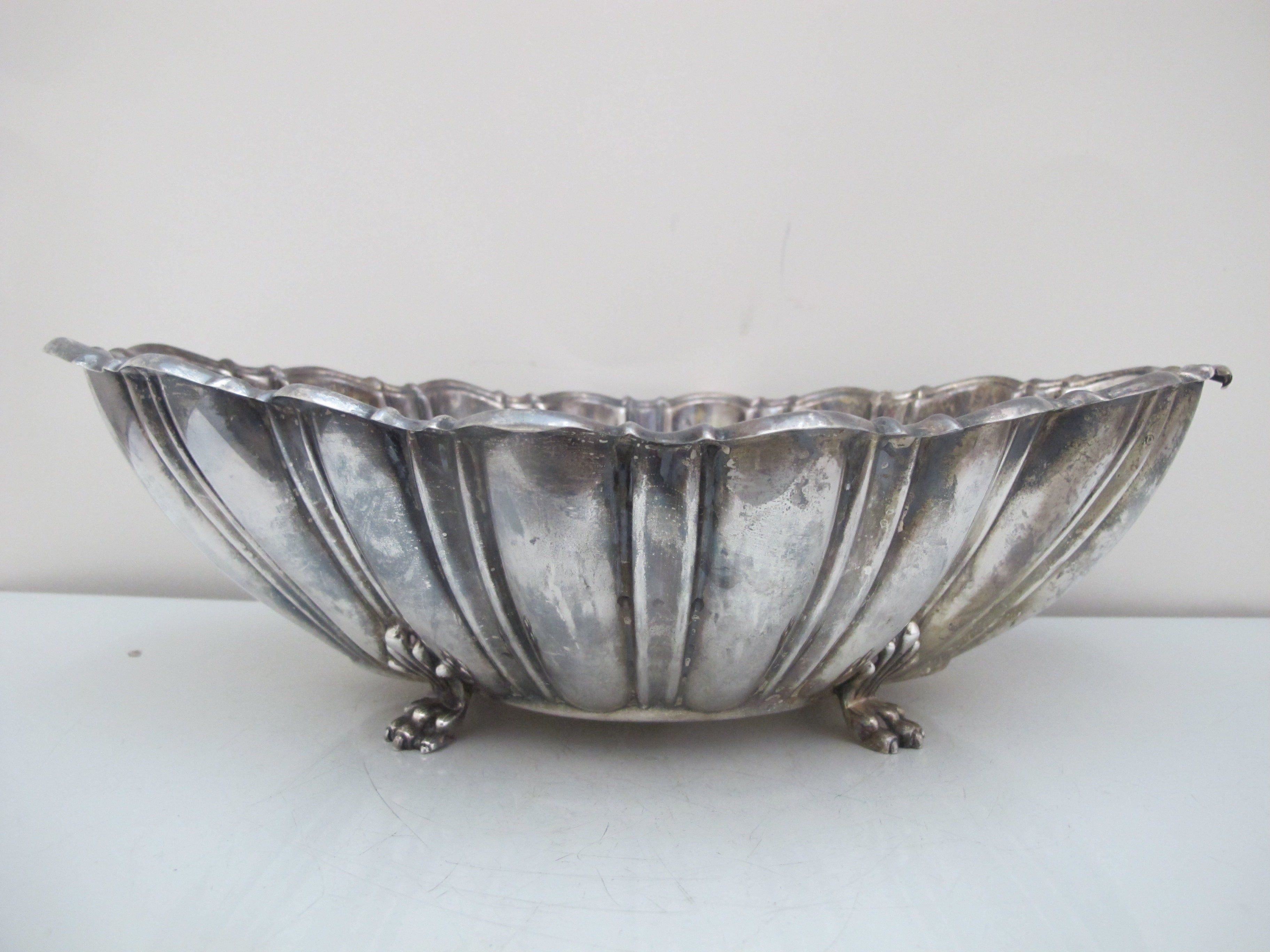 Luxurious Reed & Barton X811 sterling silver centerpiece. Deep footed bowl with scalloped rim. Weighs 637 grams. Measures 12 1/2" x 8 3/4" x 3 1/2" tall. Excellent condition, needs a good polishing, no dents of dings.