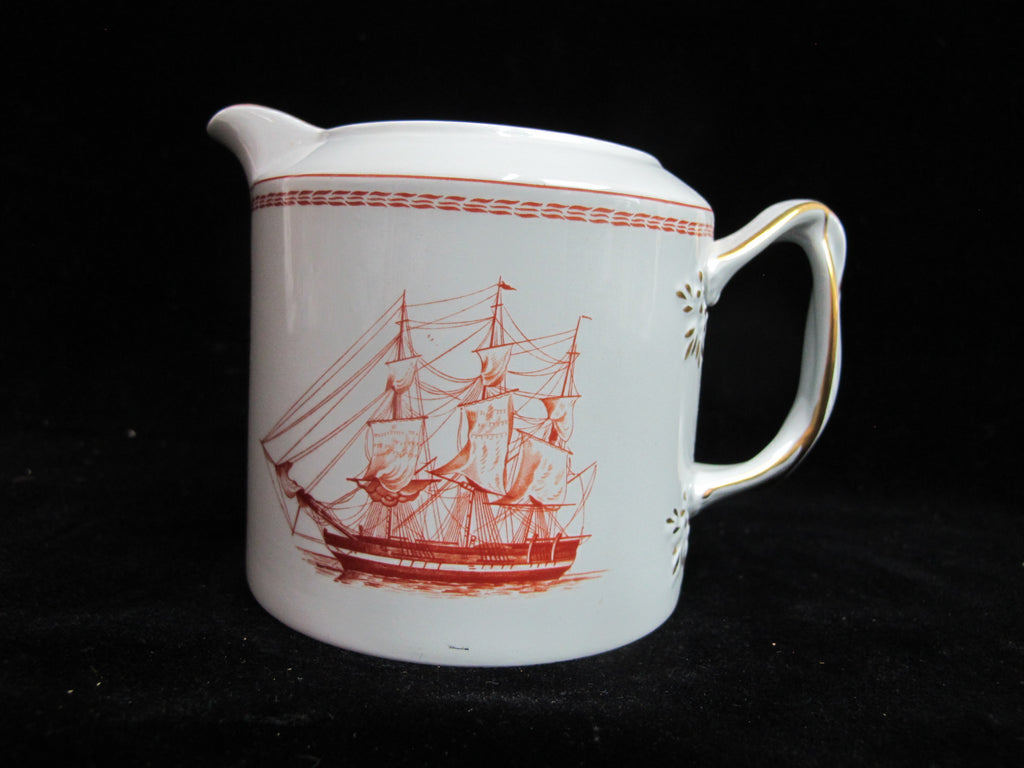 SPODE Copeland Red Gold Trim Ship Coutts & Brig 1820 TRADE WINDS Creamer Pitcher