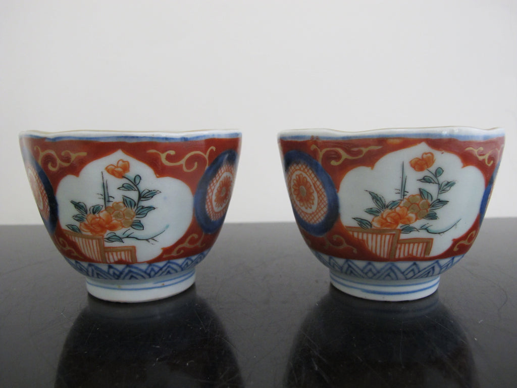 JAPANESE Arita IMARI Floral Porcelain TEA Rice Bowl Sake Cup Set of 2