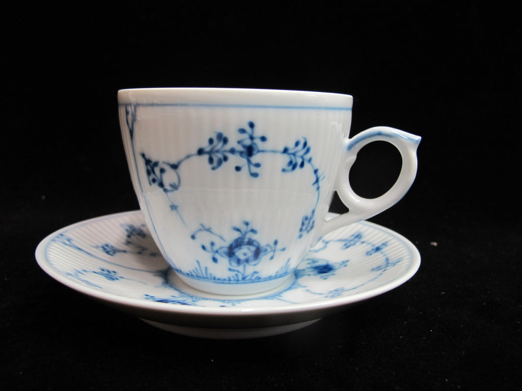 Royal Copenhagen Denmark 79 & 2162 Plain Blue Flower Fluted Flat CUP & SAUCER