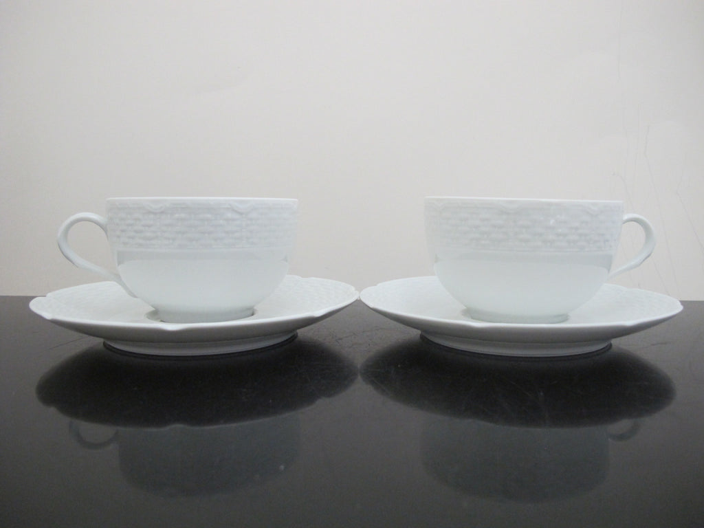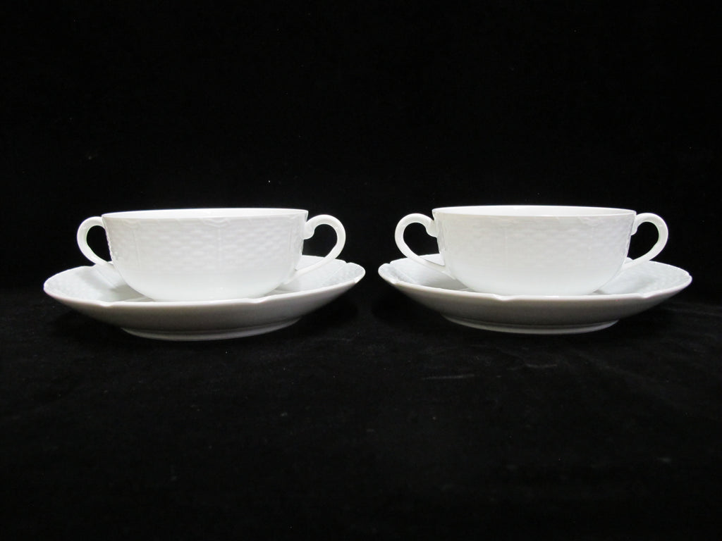 LIMOGES Ceralene A Raynaud OSIER Basket Weave SOUP Cream Bowl Cup & Saucer Pair