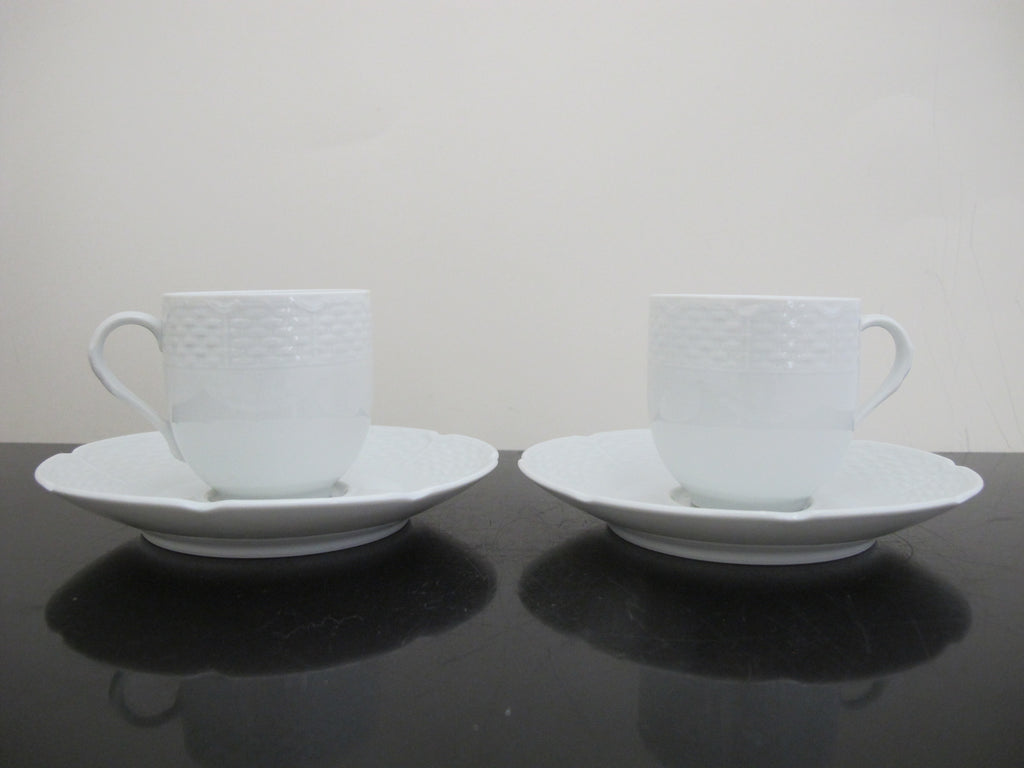LIMOGES A Raynaud OSIER Basket Weave Flat DEMITASSE Coffee Cup & Saucer Pair