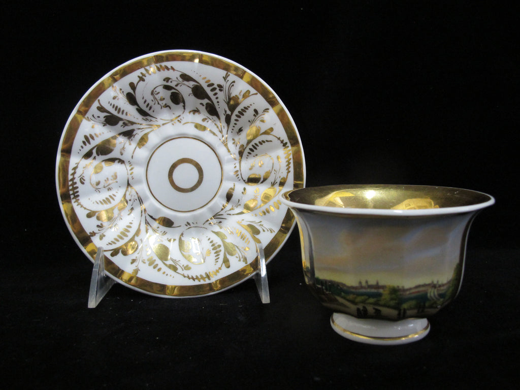 SPM German 19th Century Porcelain Hand Painted Gold Gilt LANDSCAPE Cup & Saucer