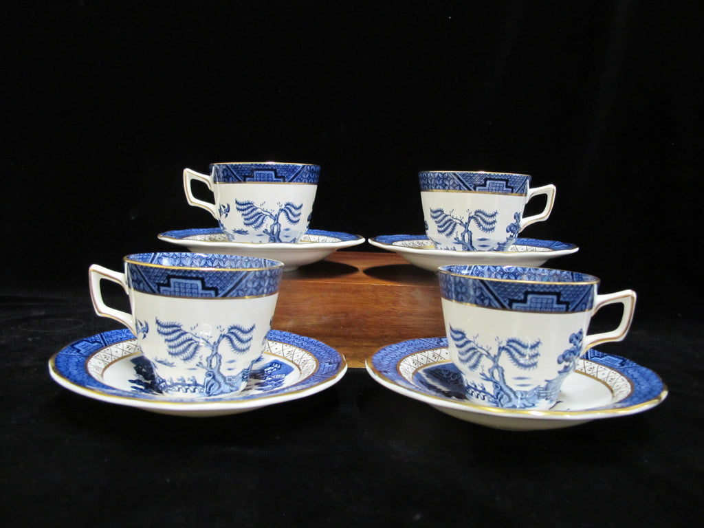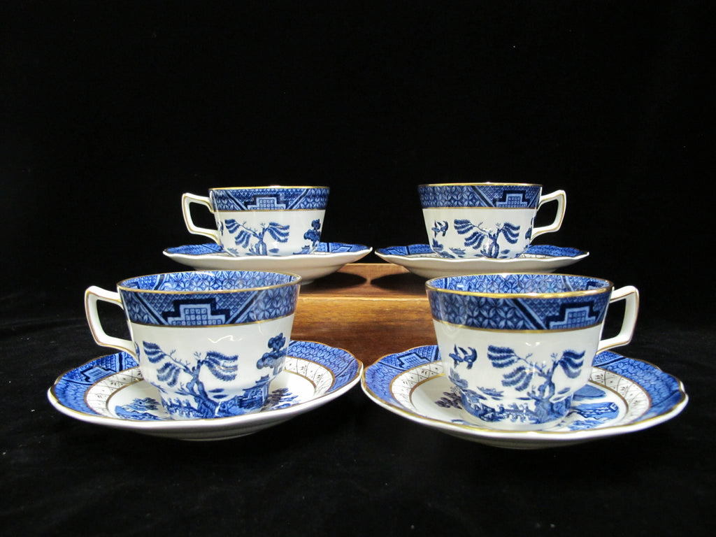 ROYAL DOULTON Booths Blue China Real Old WILLOW 4 1/4" Flat Tea Cup & Saucer Set