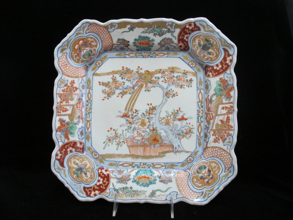 JAPANESE Porcelain IMARI Bird Butterfly FLOWER Design Square 10 1/2" Dish Plate