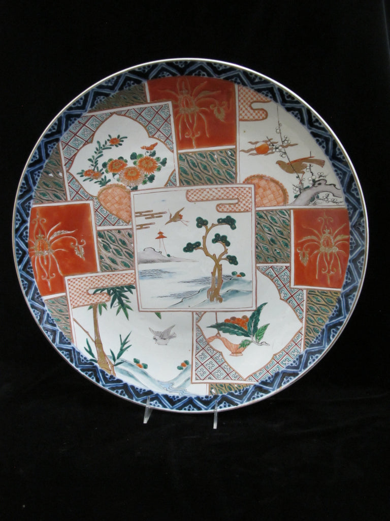 JAPANESE Porcelain Arita IMARI Intricate TREES Flowers 13" CHARGER Platter Dish