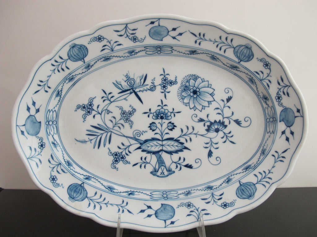 MEISSEN Porcelain BLUE ONION Scalloped Rim 14" Serving Platter Dish or Tray