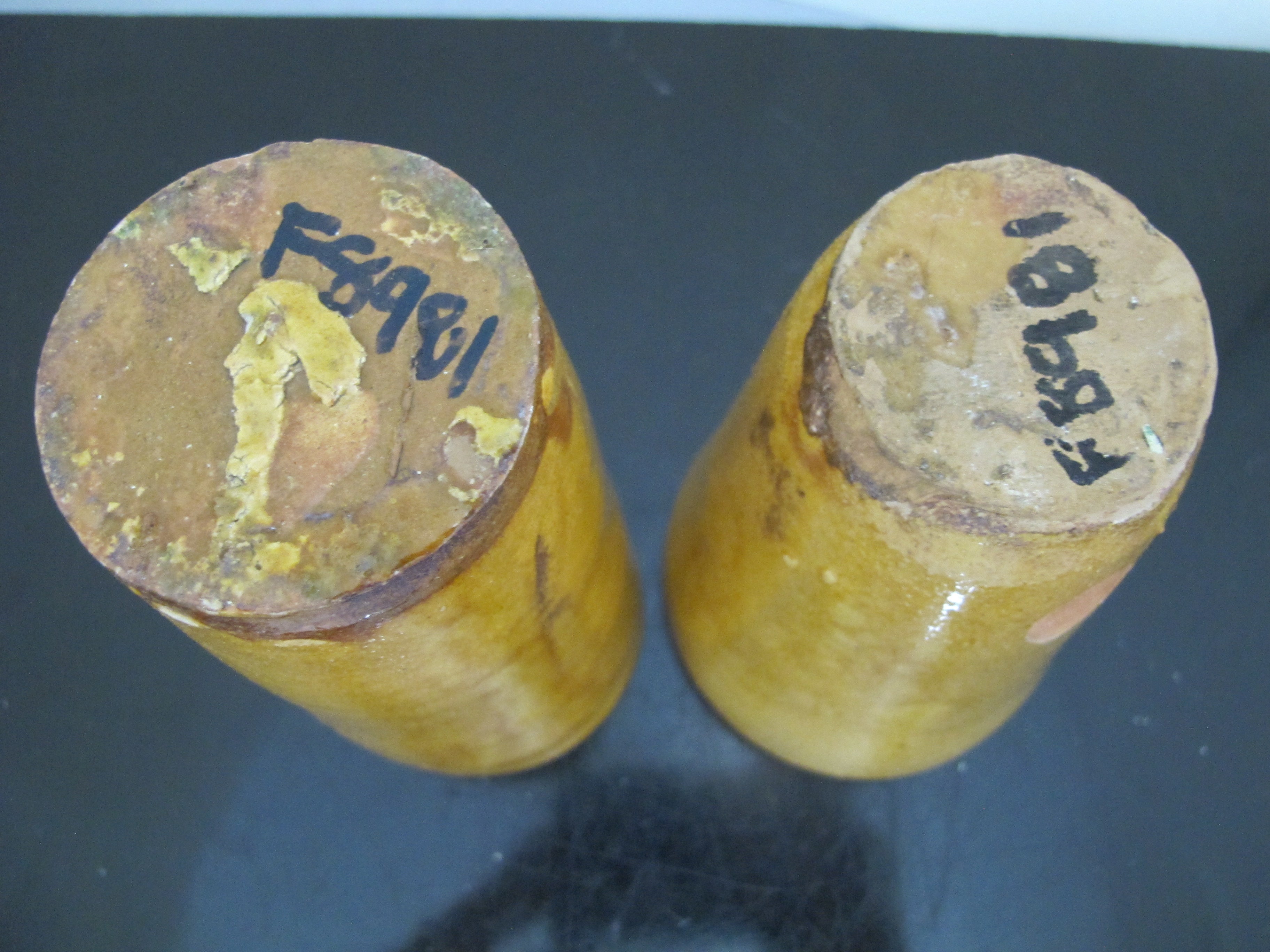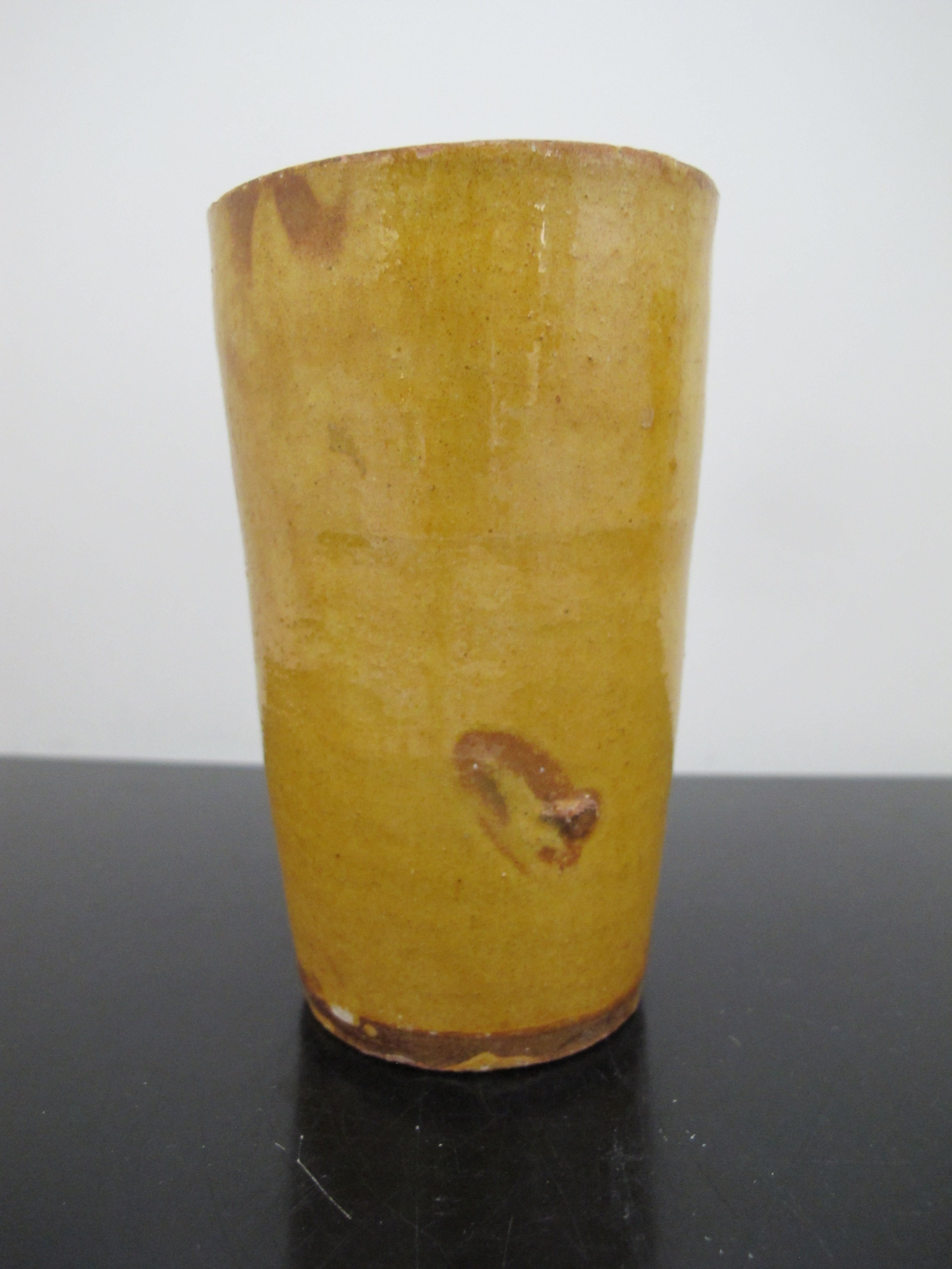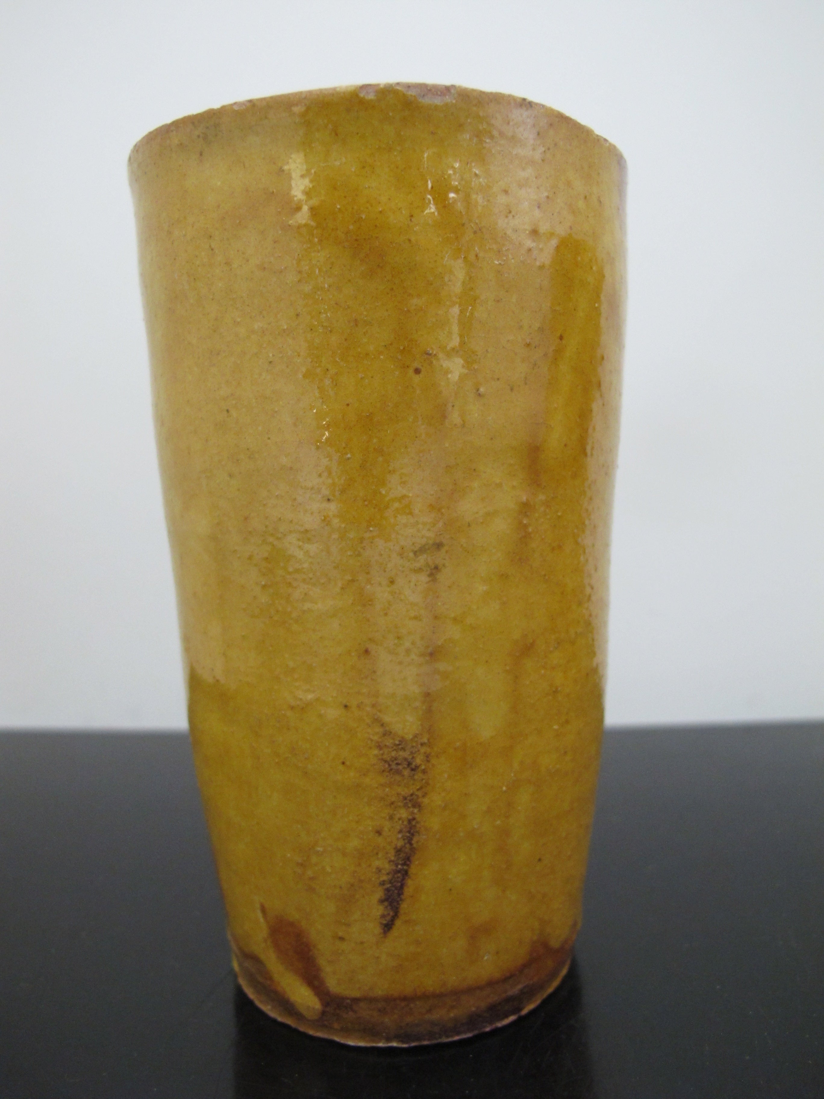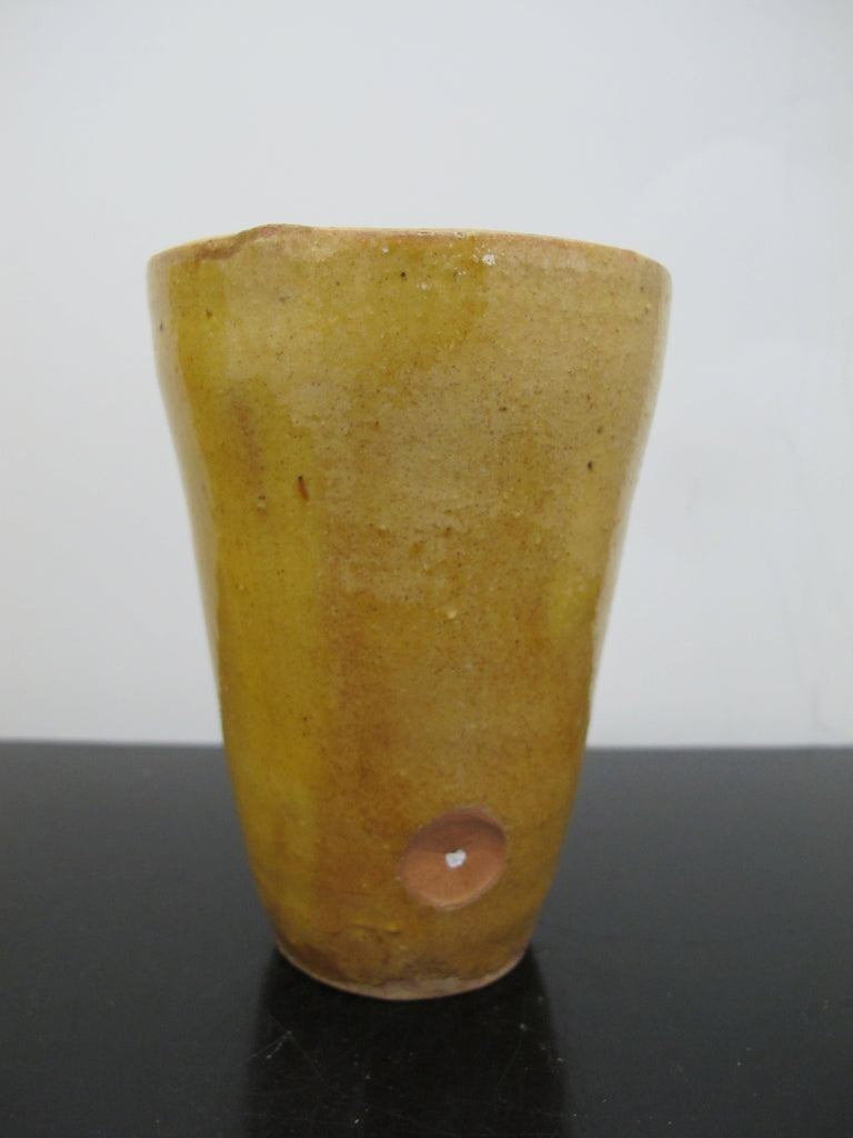 Antique 19th Century FRENCH Glazed Yellow Earthenware Pottery Cylinder CUP Pair