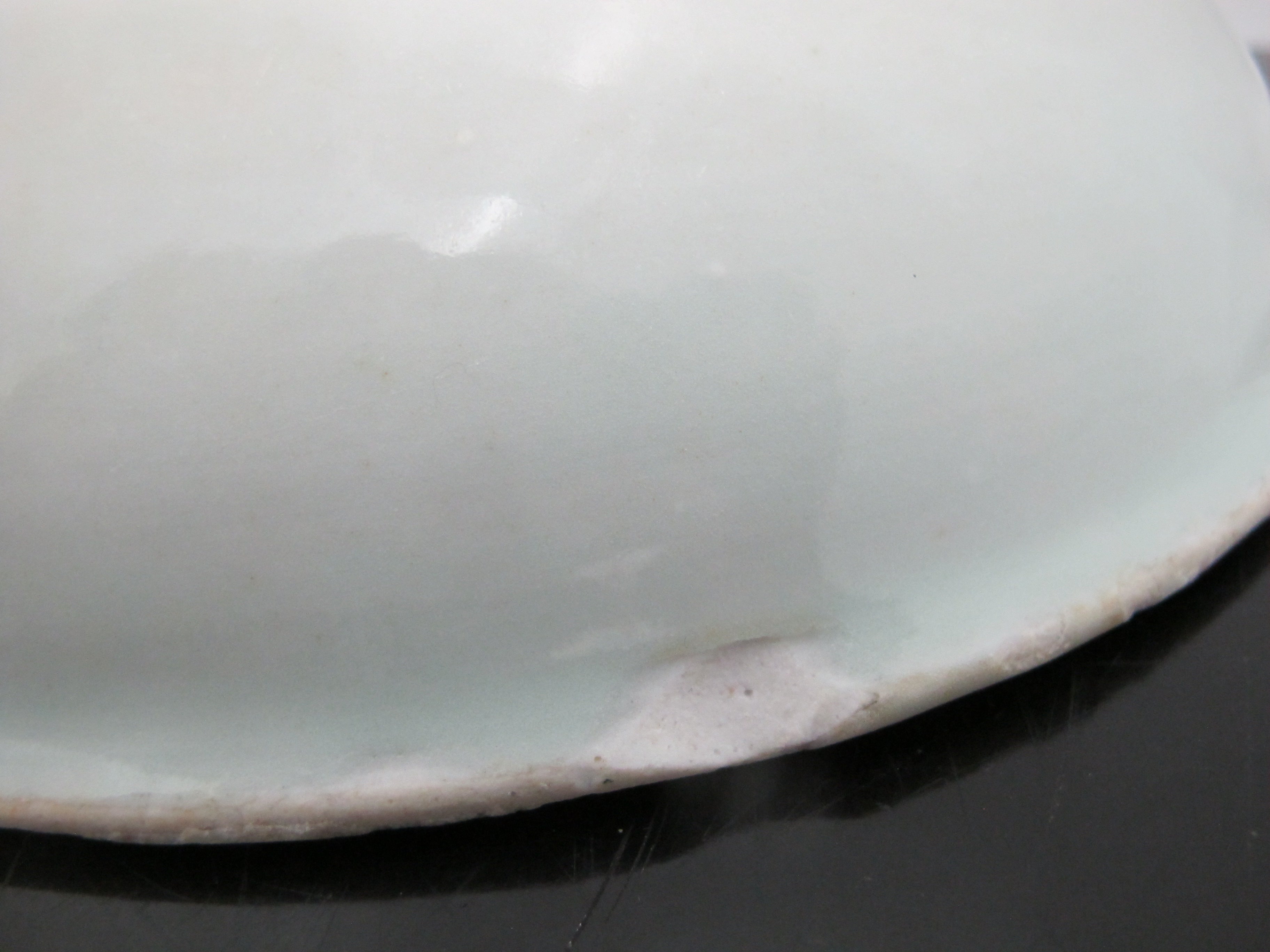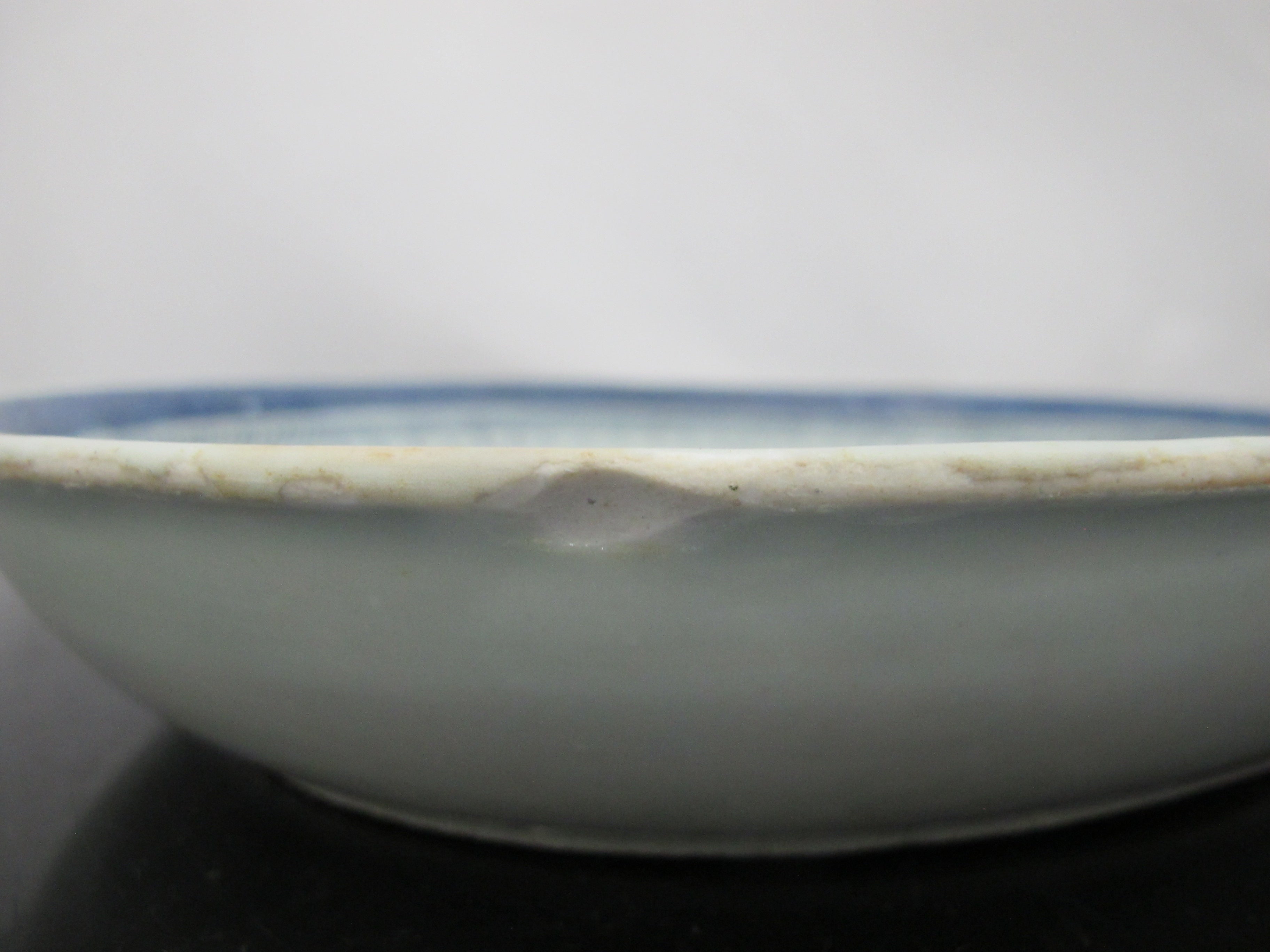 Very good condition for old age showing some wear in glaze, rough edges, and chip under rim, all as photographed.