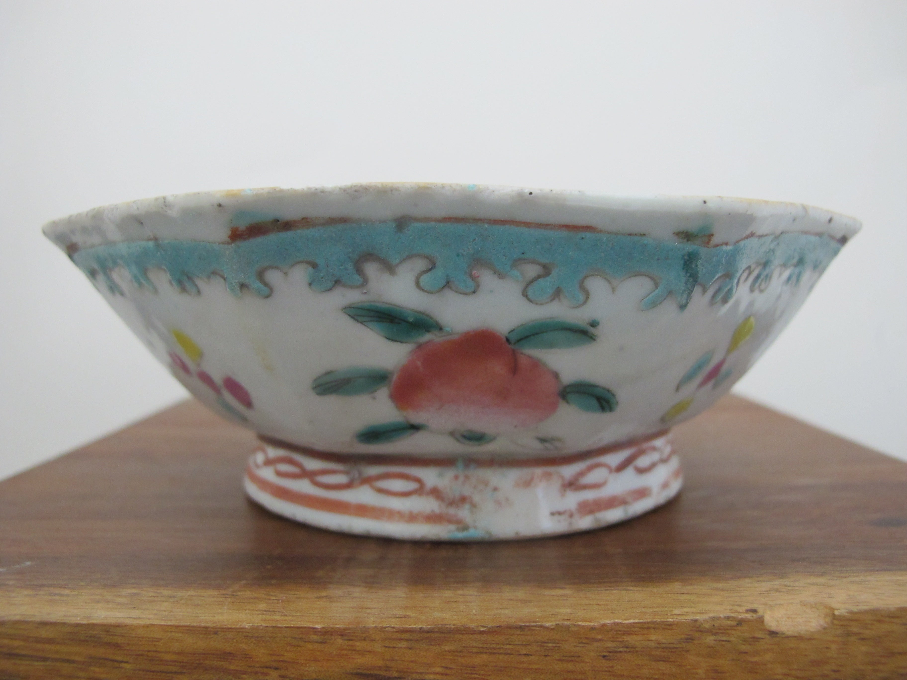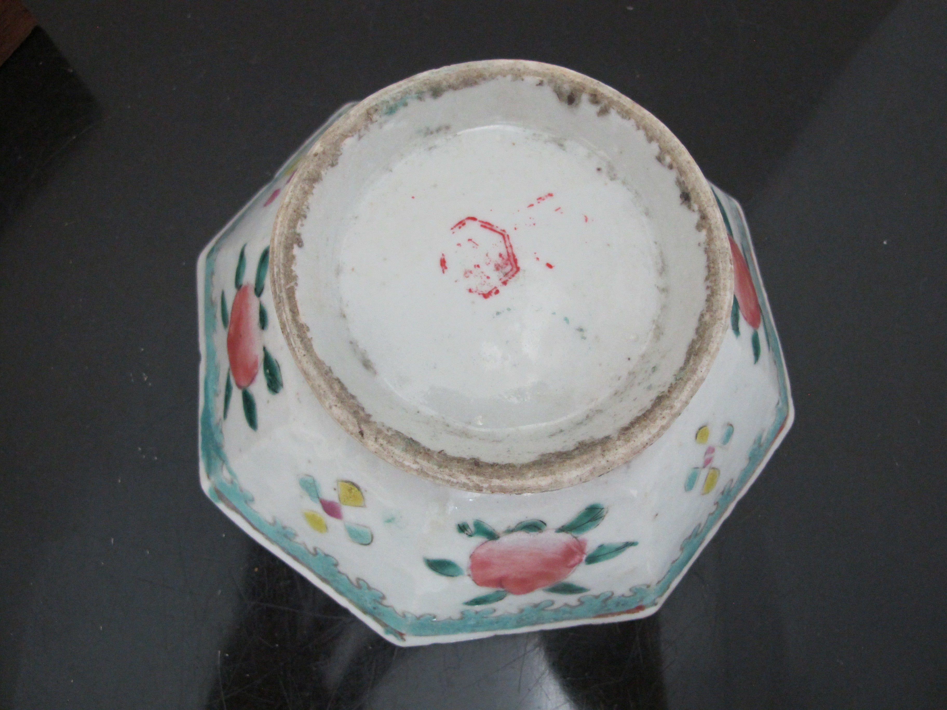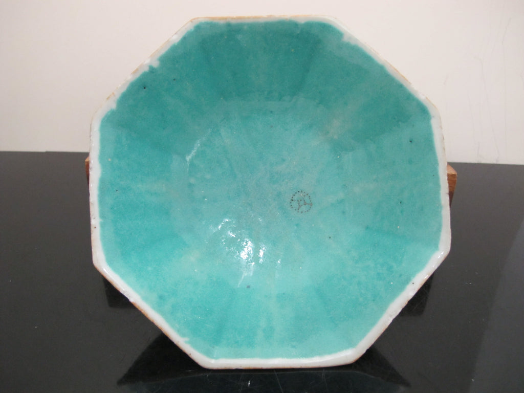 Chinese NYONYA Ware Famille Rose PEACH Motif Turquoise Center Octagonal Bowl