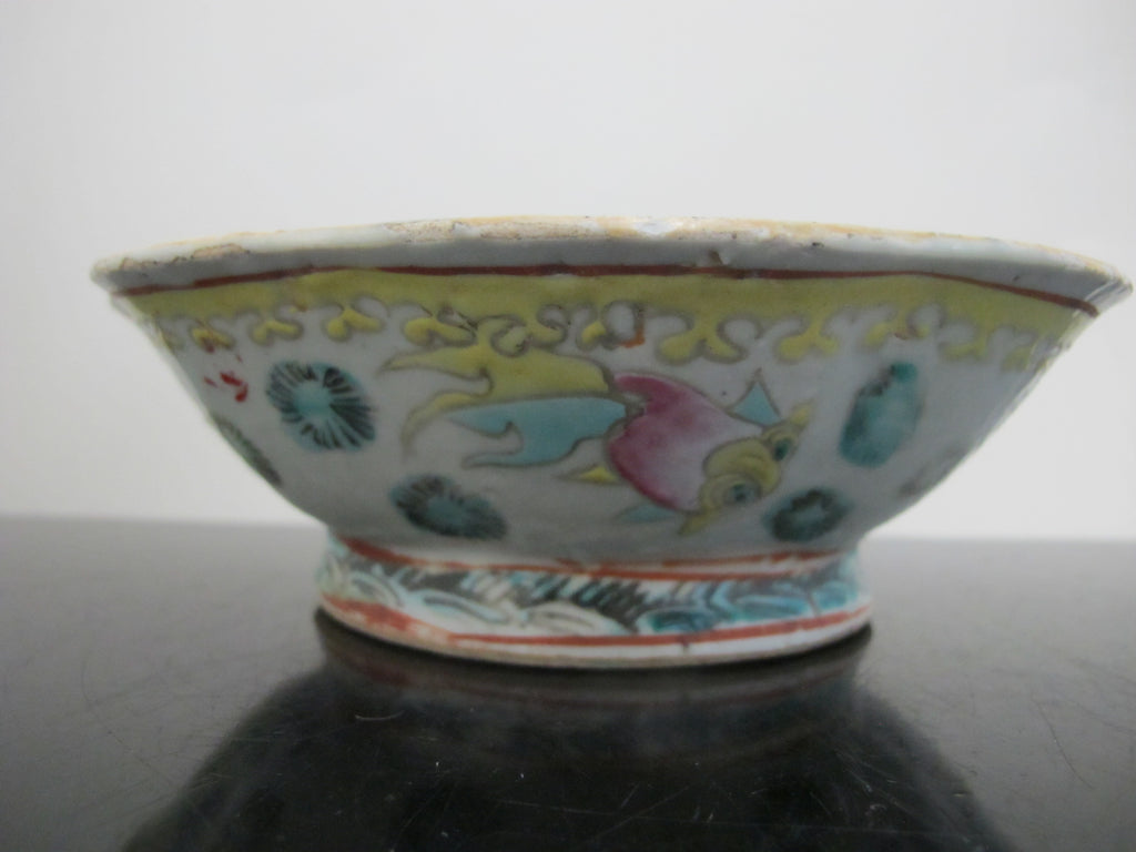 Chinese Famille Rose Nonya or Nyonya ware bowls are also known as "treasure bowls". This type of porcelain is characterized by it's pale or soft colors, often including pink. Nyonya ware specifically refers to the porcelain produced for the Peranakan Chinese communities in Southeast Asia, particularly Malaysia, Singapore, and Indonesia. These bowls often feature bright colors and floral motifs, as seen here and were used for special occasions and family meals.