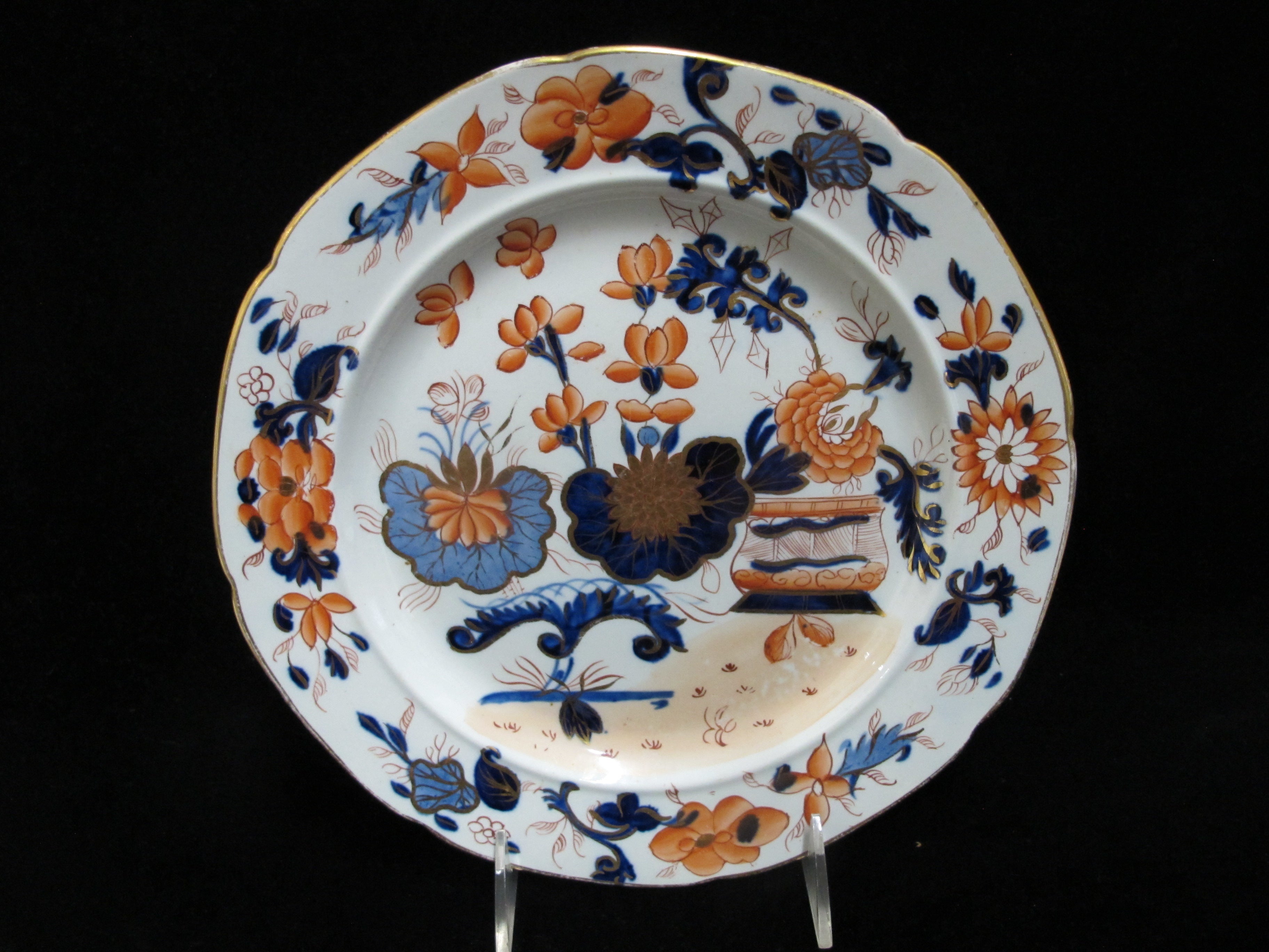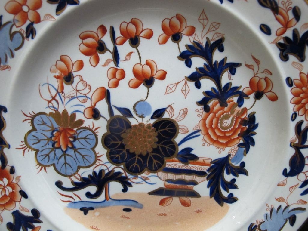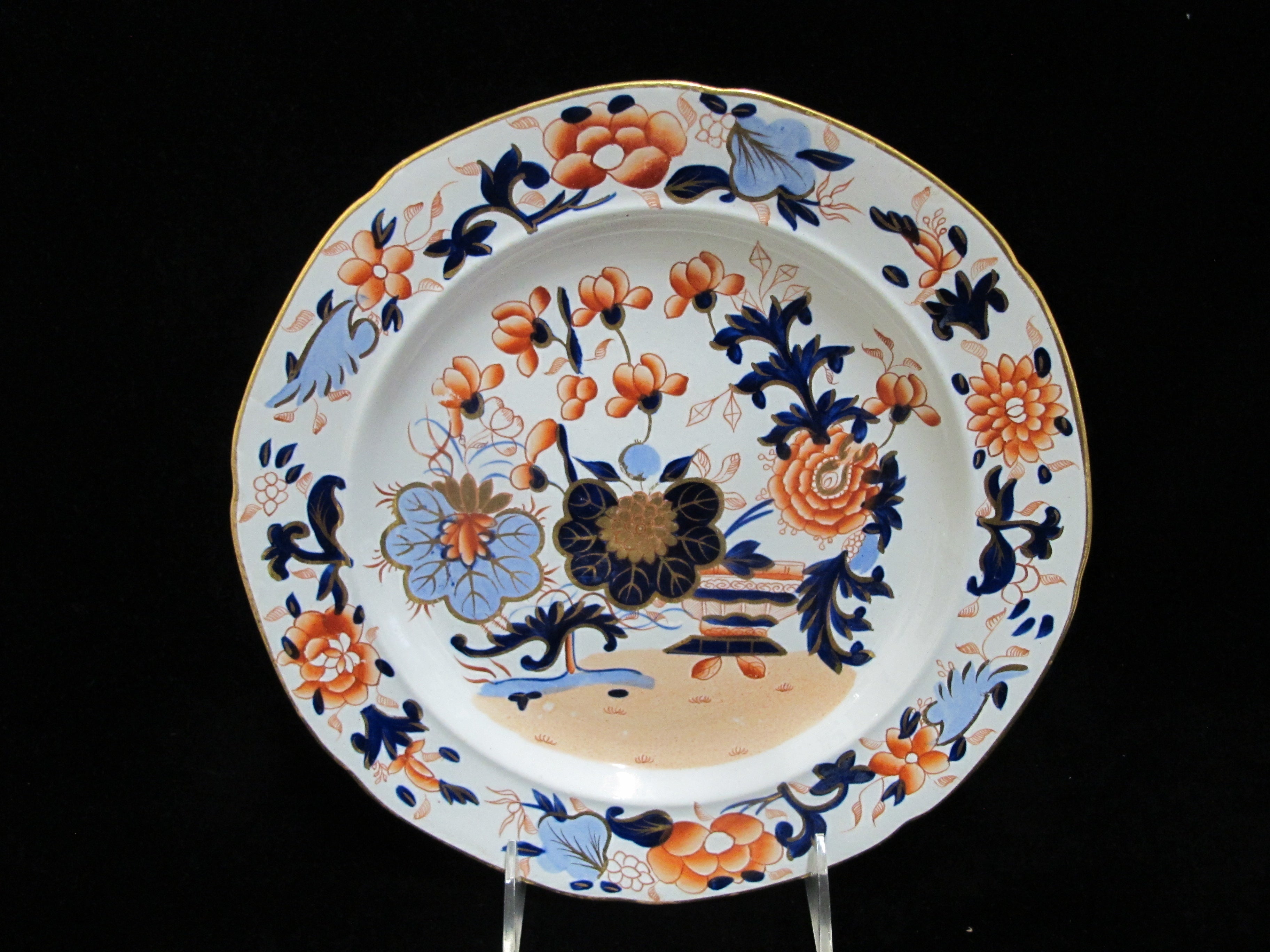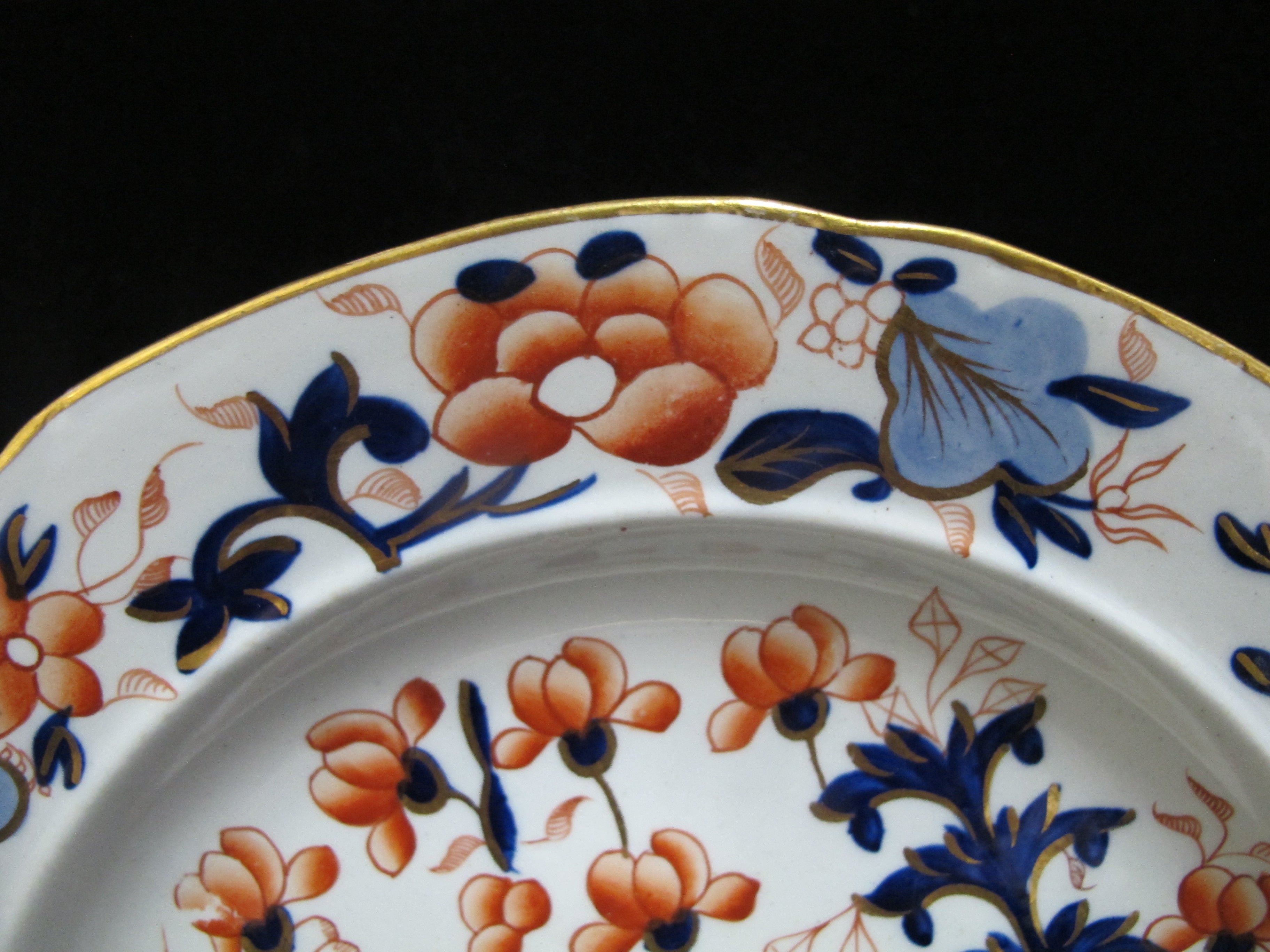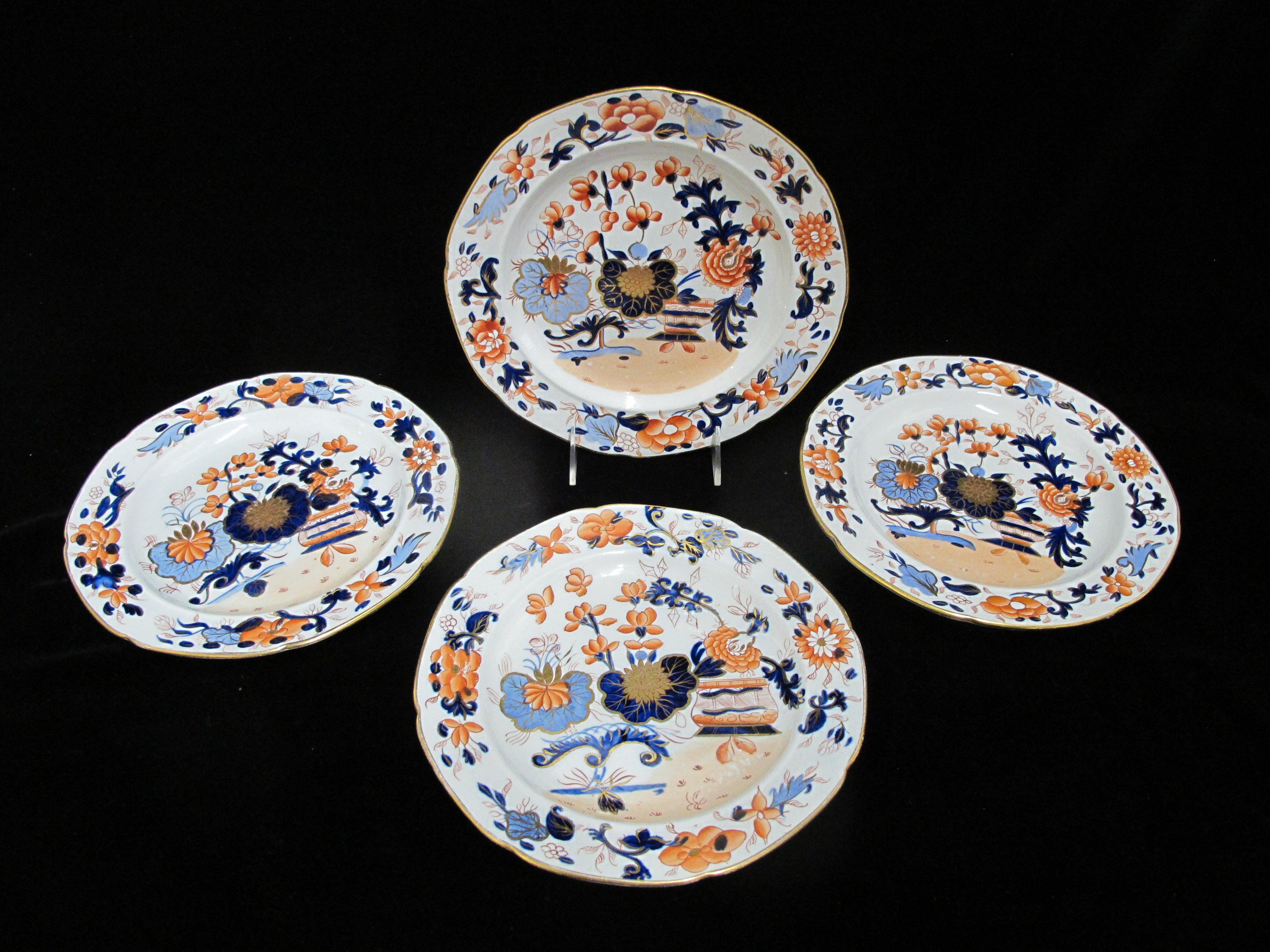 Georgian era Mason's Ironstone China luncheon plate, set of 4 in Japanese Imari or basket design.