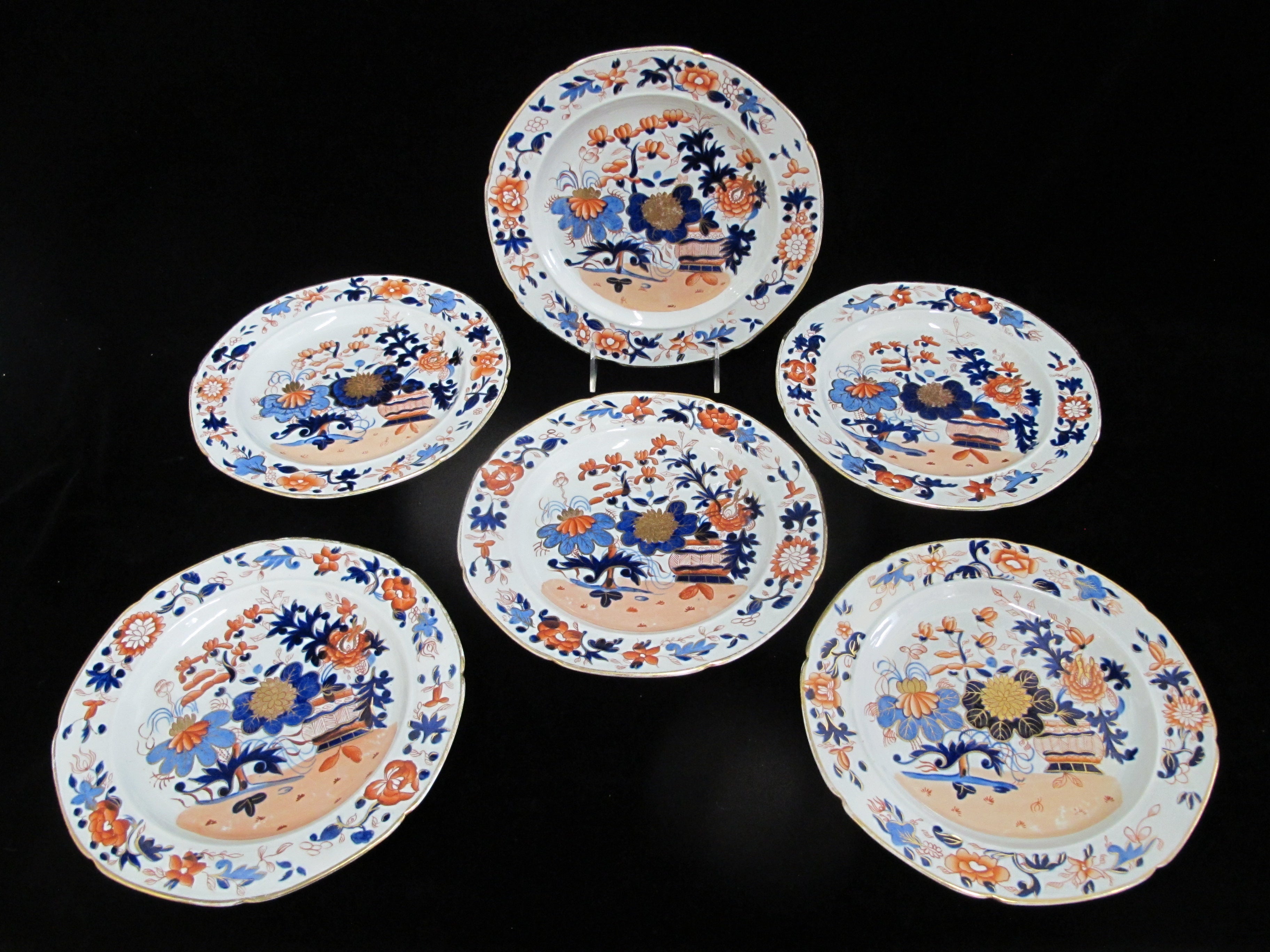 Georgian era Mason's Ironstone China luncheon plate, set of 6 in Japanese Imari or basket design.
