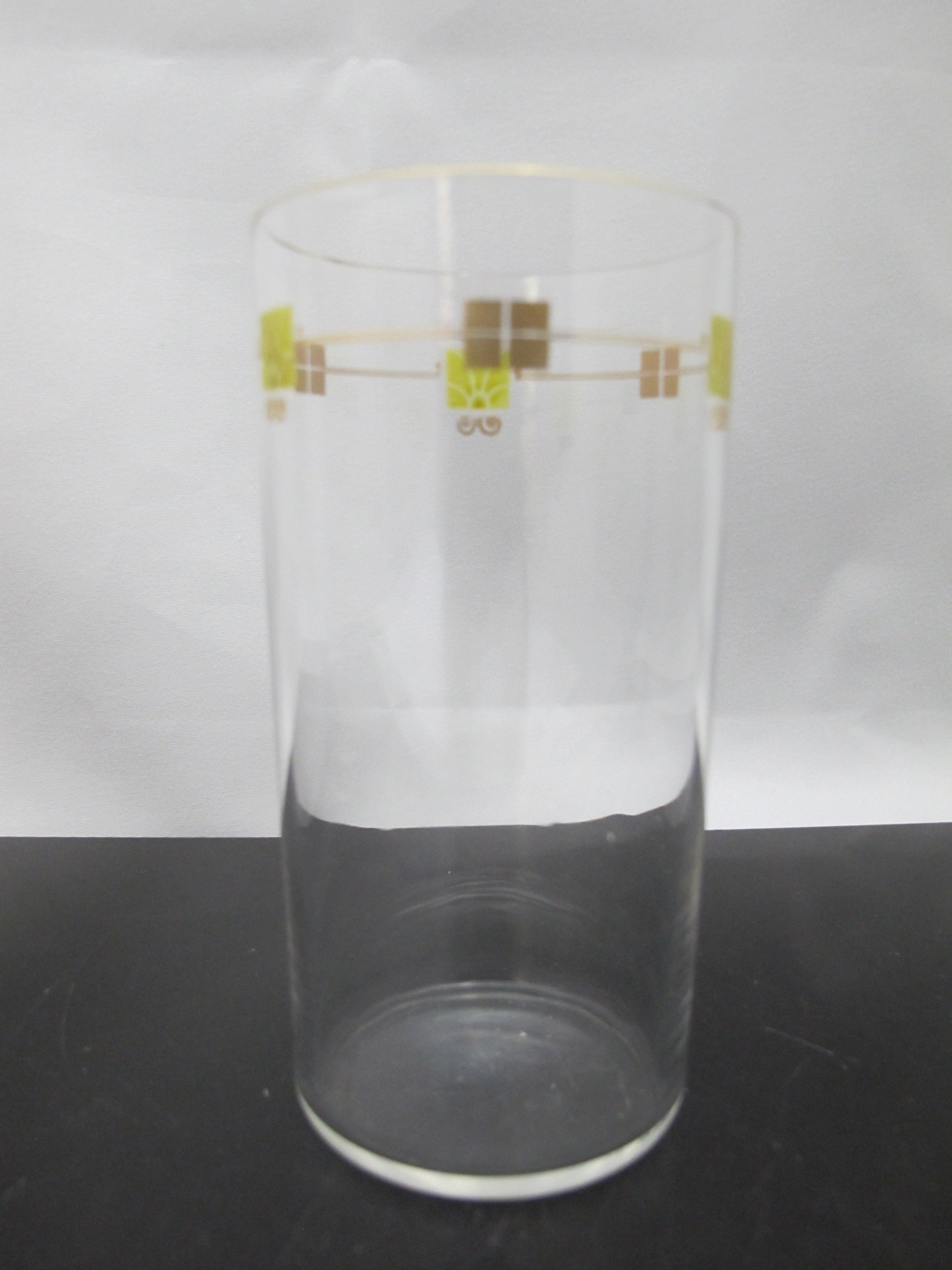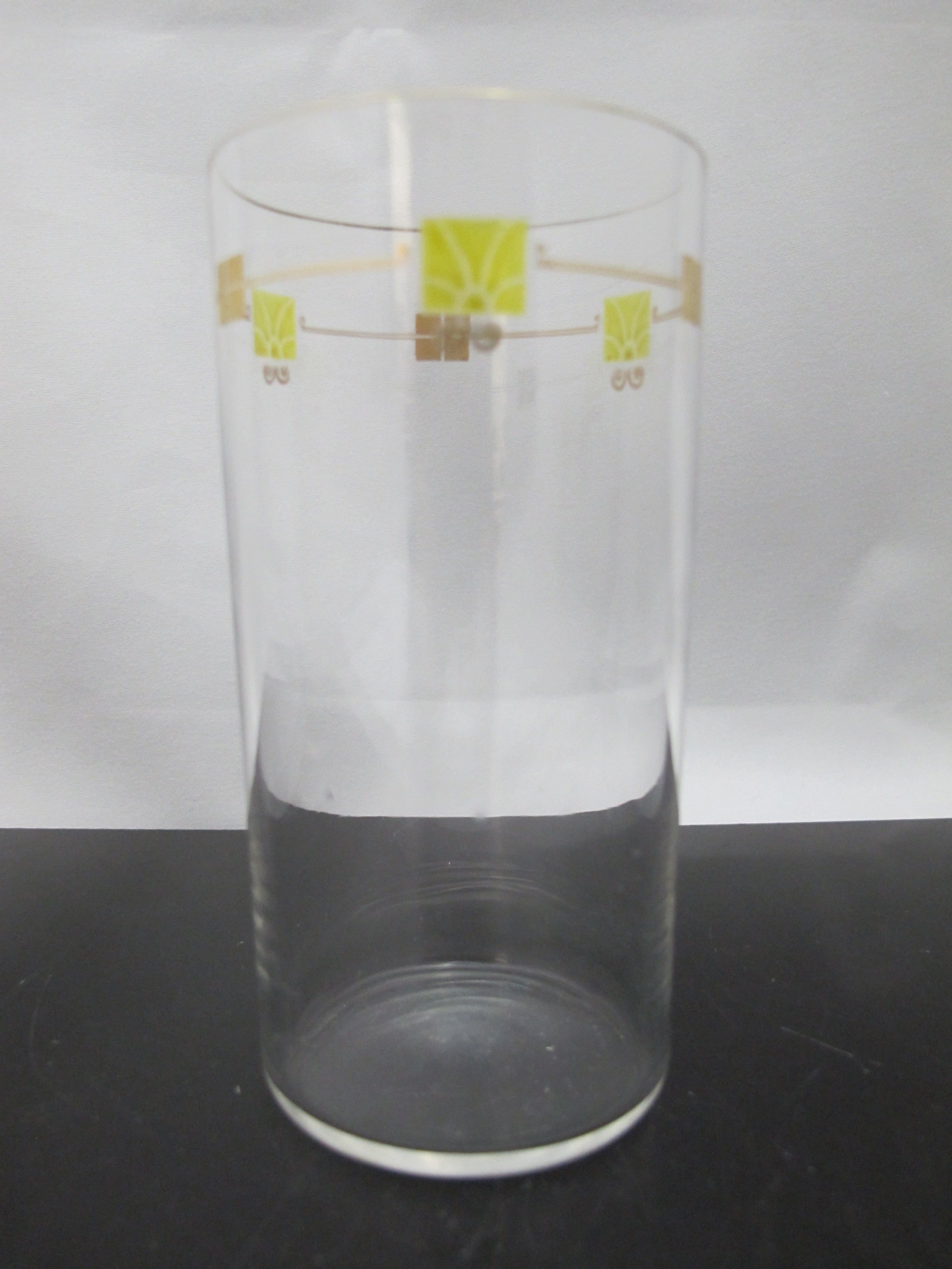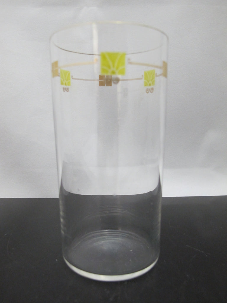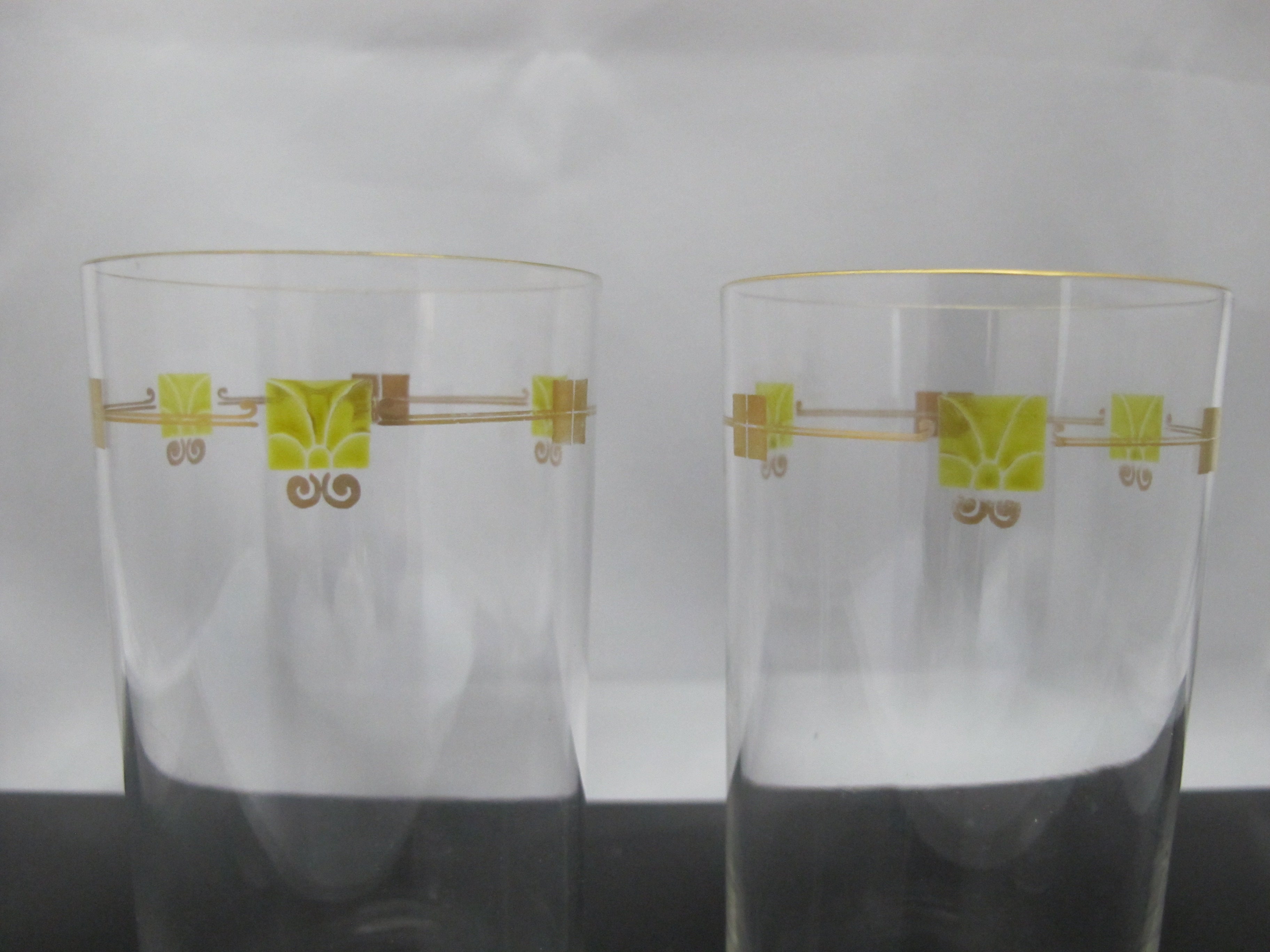 MCM Mid Century Modern Gold & Green Enamel Crystal WATER Tumbler Glass Pair