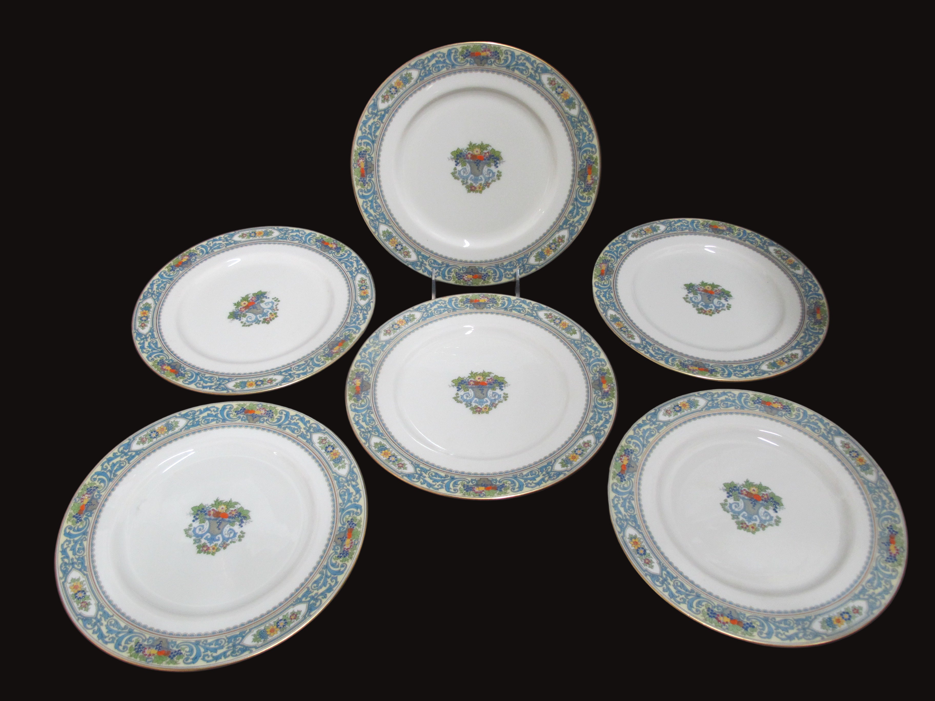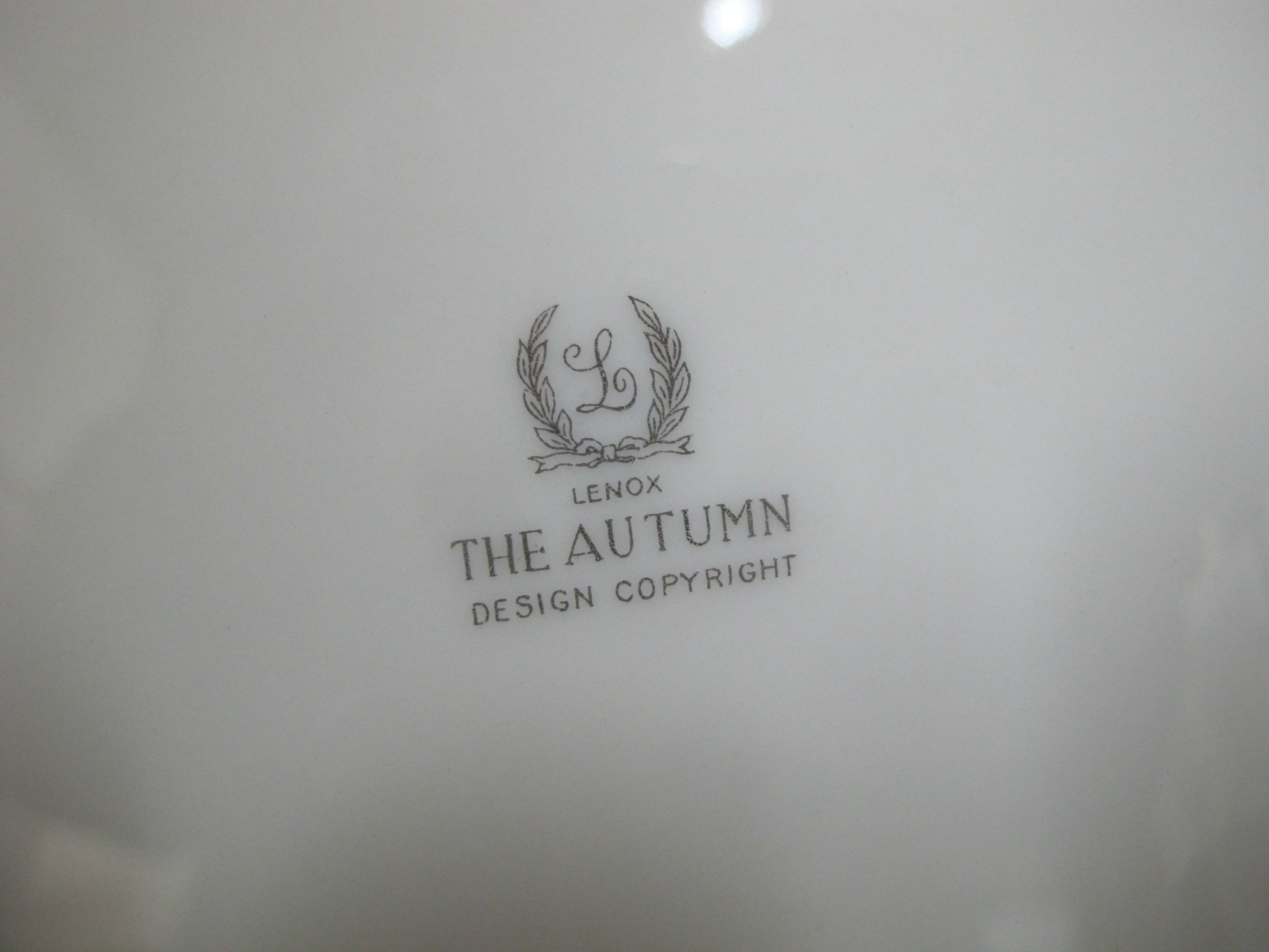 Set of 6 Lenox fine China dinner plates in Autumn pattern. Each with a colorful fruit and flower basket design. Each measures 10 1/2. All are in excellent condition, no chips, cracks, or repairs.