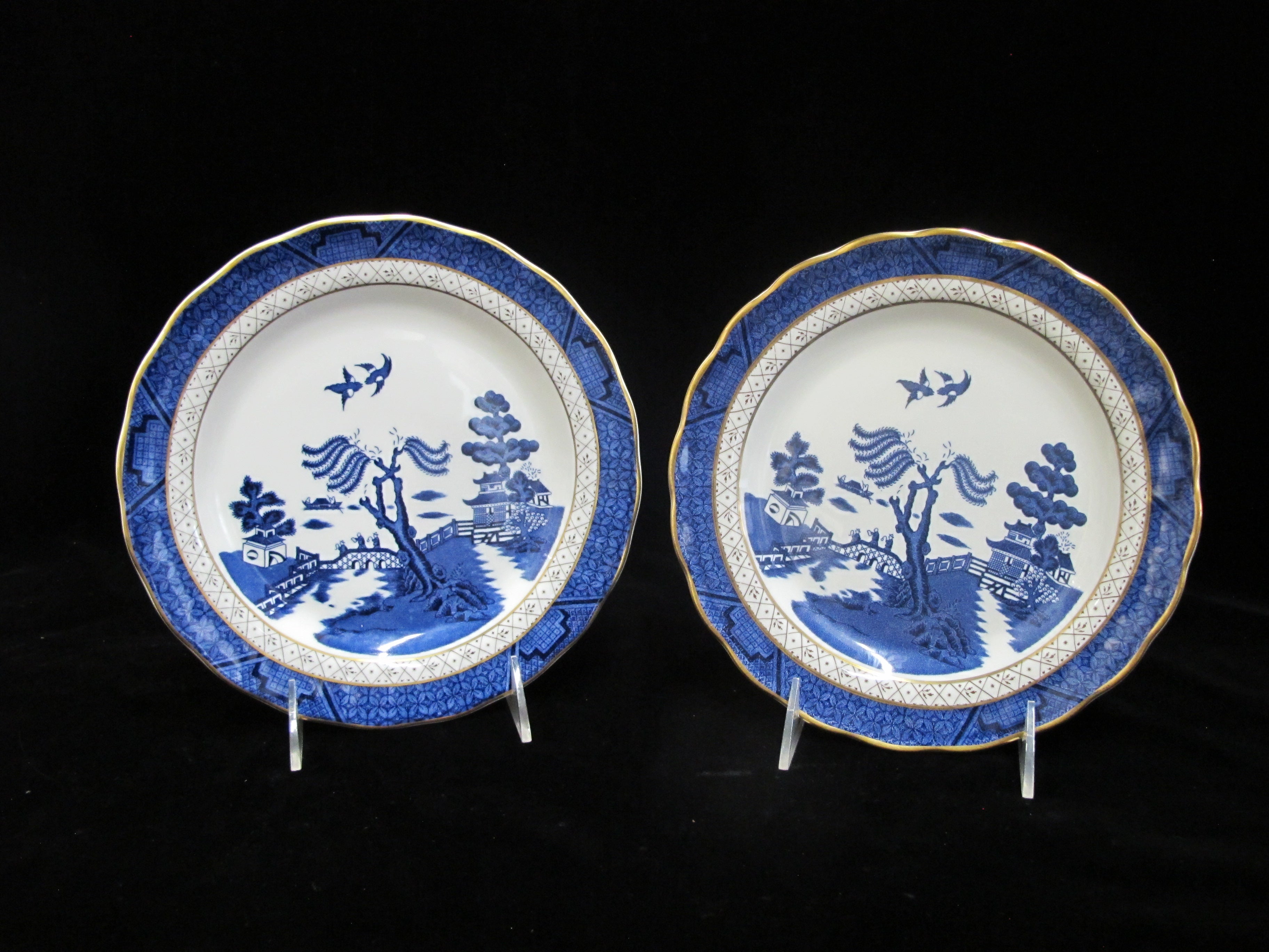 ROYAL DOULTON Majestic Booths Blue China Real Old WILLOW 8 1/2" Salad Plate Pair