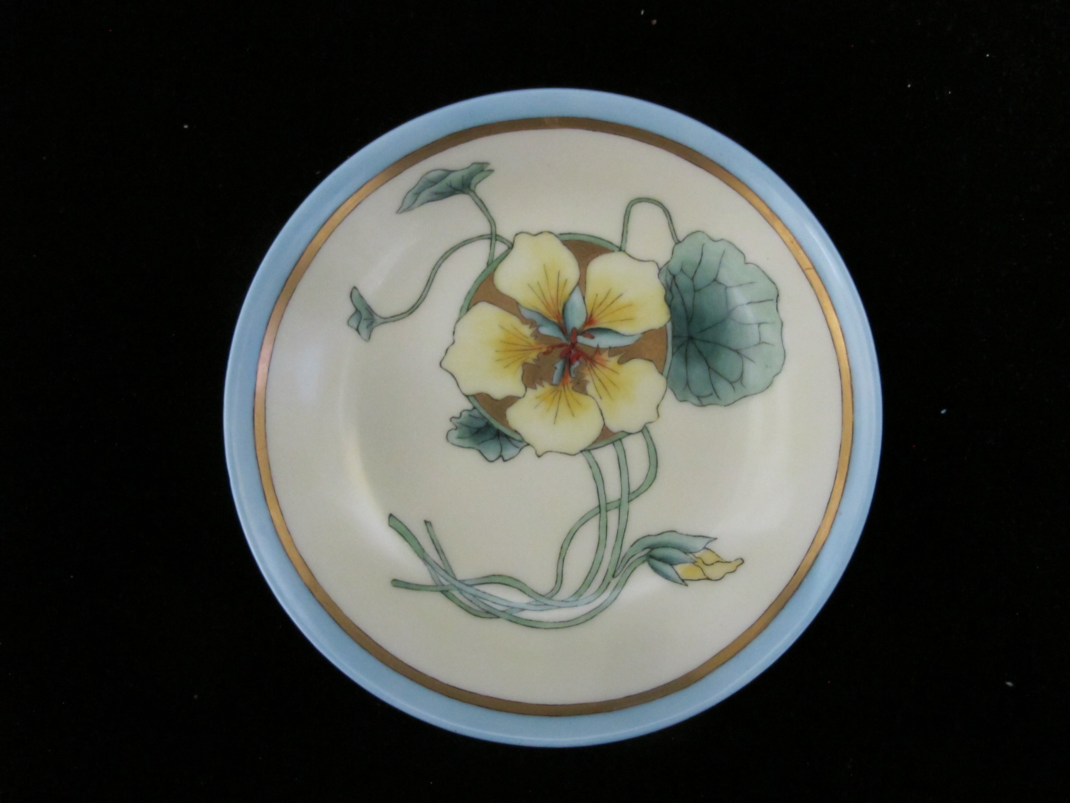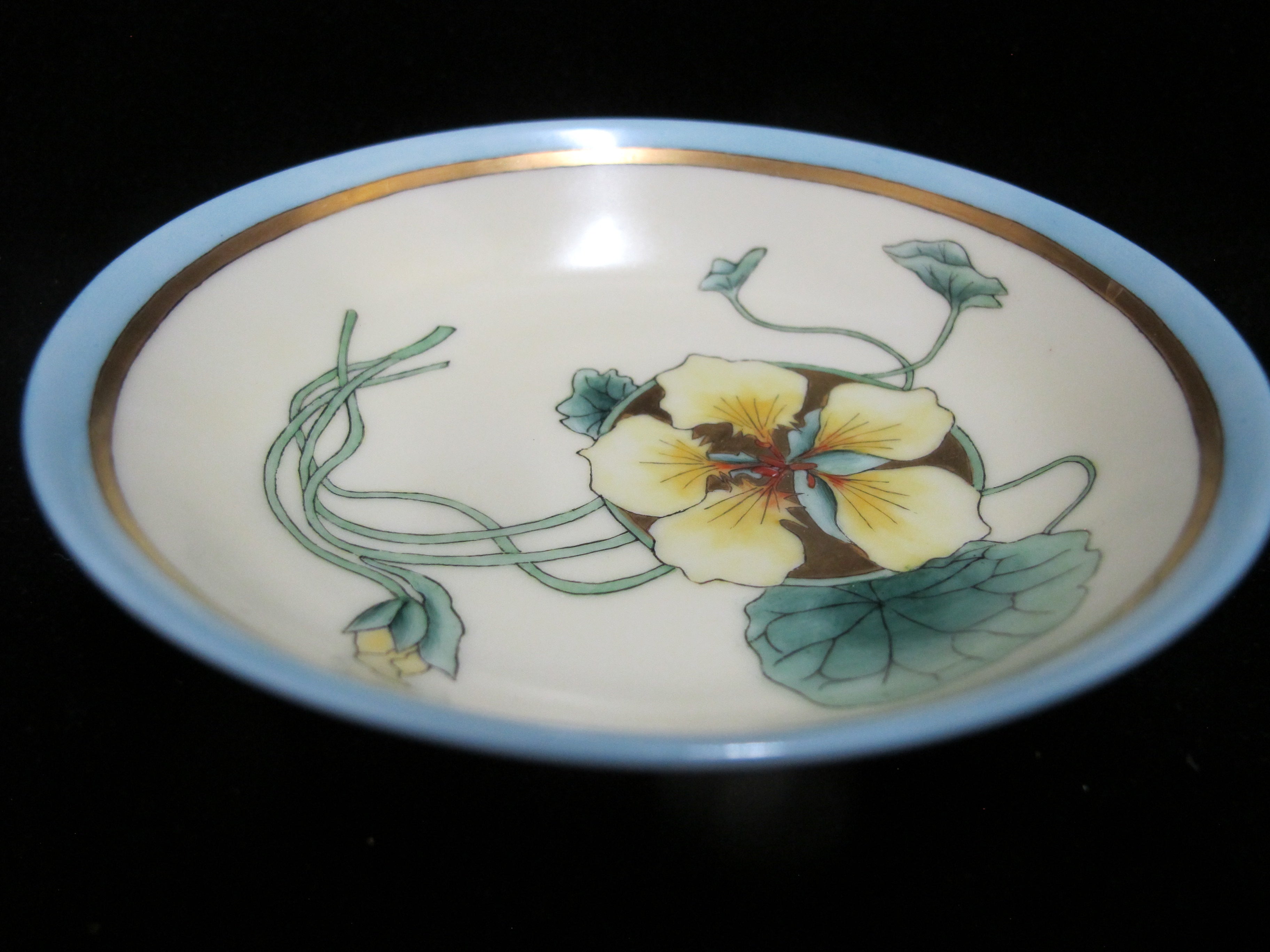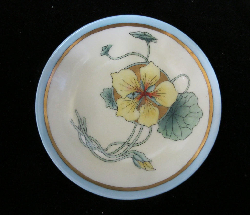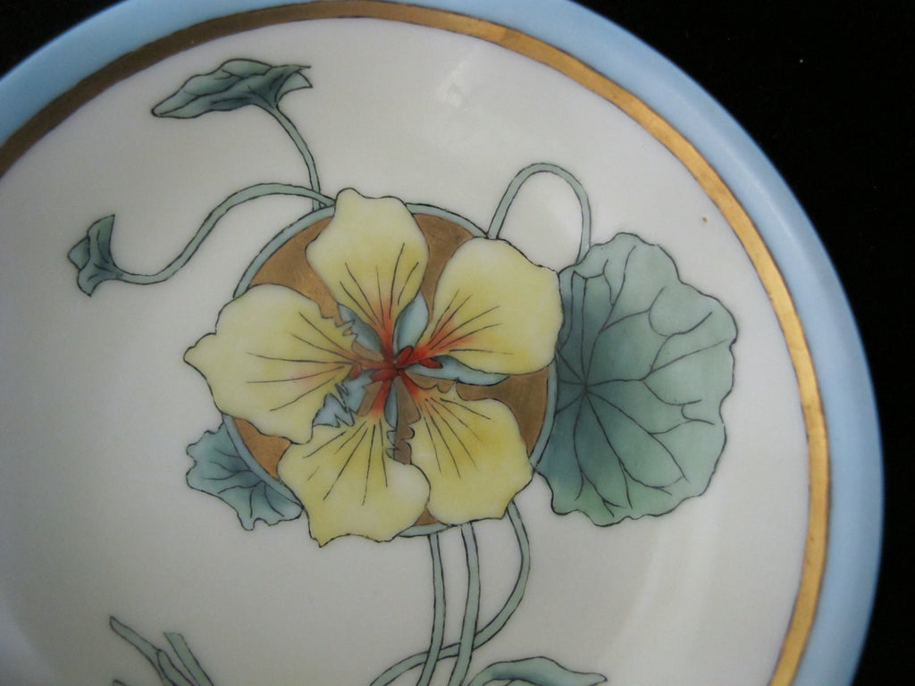 T&V Limoges France ART NOUVEAU Yellow & Gold Flower Small BOWL or Saucer Set