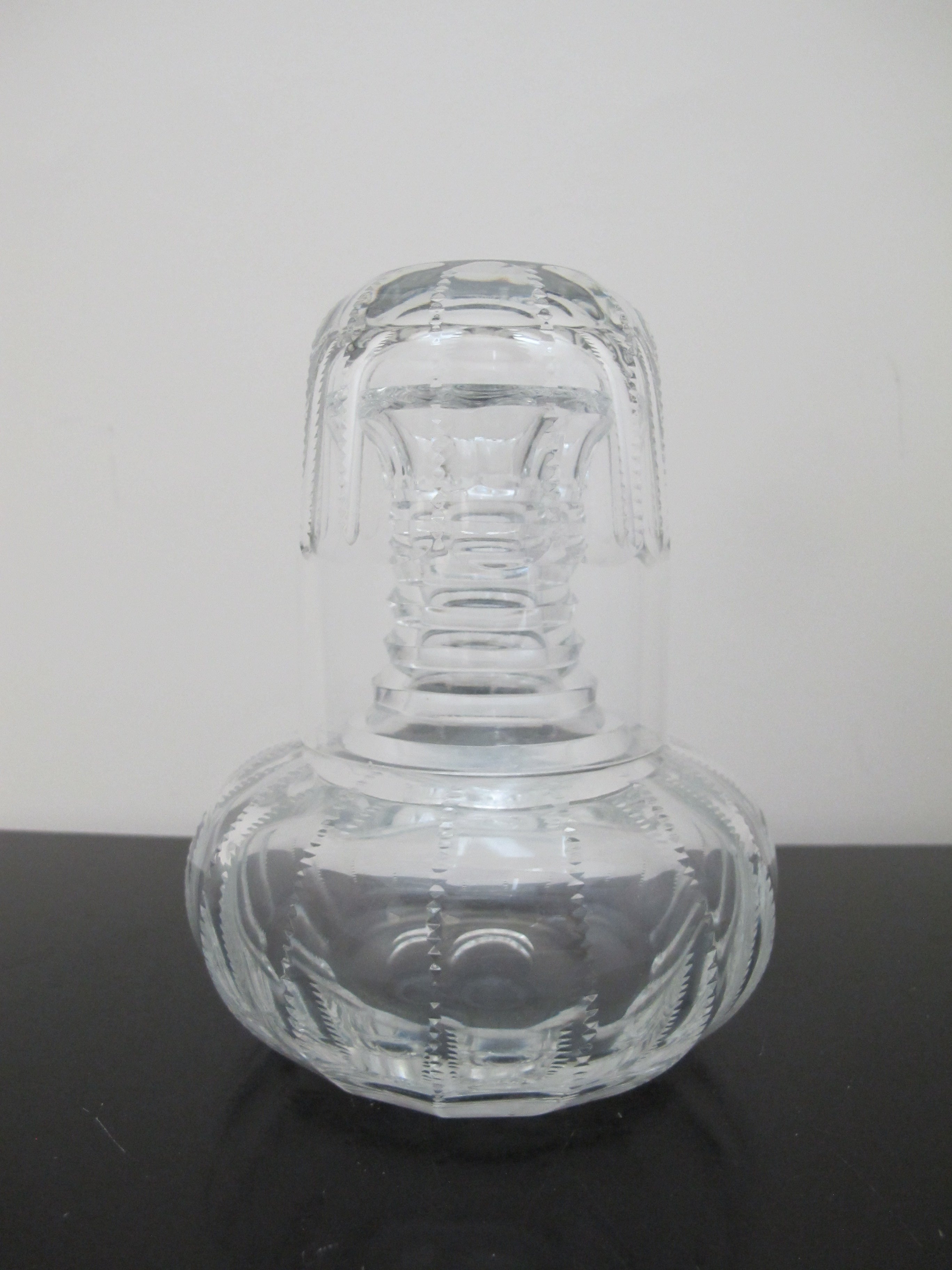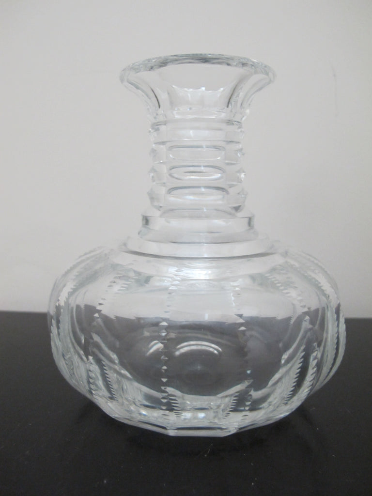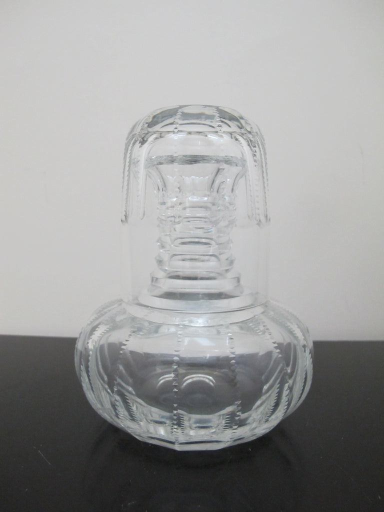 Stunning William Yeoward crystal carafe and tumbler glass set in what I believe is the Jenkins pattern. The tumbler can be place on top of the decanter for compact storage. William Yeoward is known for creating crystalware inspired by antique designs, blending traditional craftsmanship with contemporary elegance. This set is a beautiful example of his pieces.