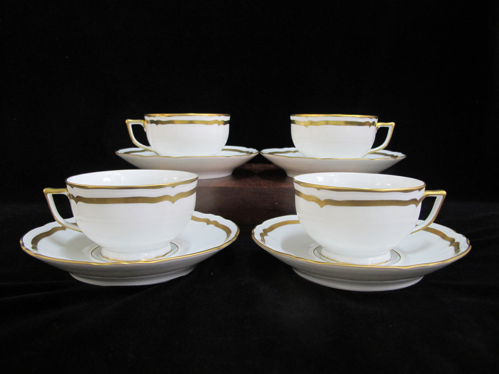 LIMOGES A Raynaud MARIE ANTOINETTE White Gilt Footed Cup & Saucer Set of 4