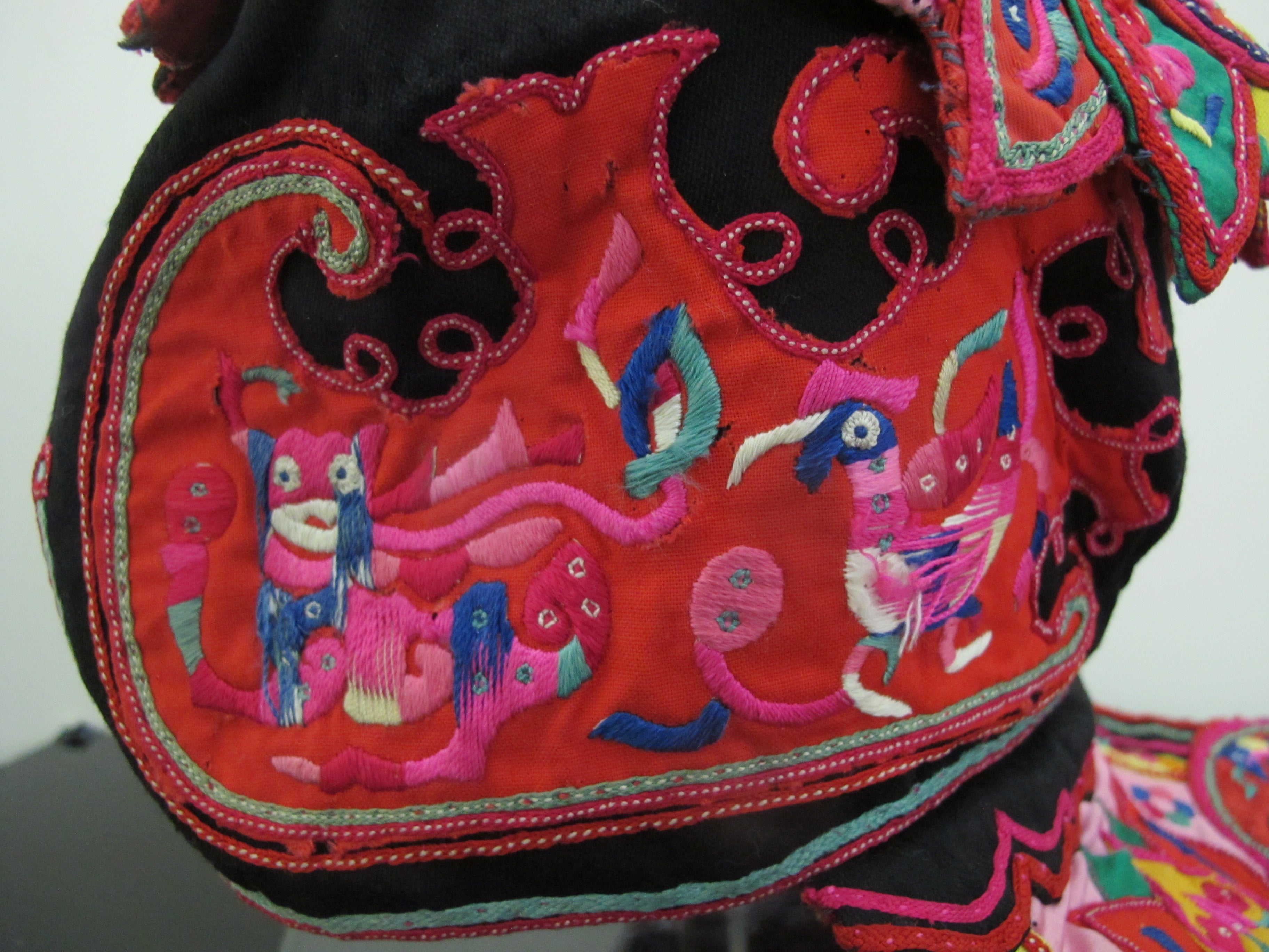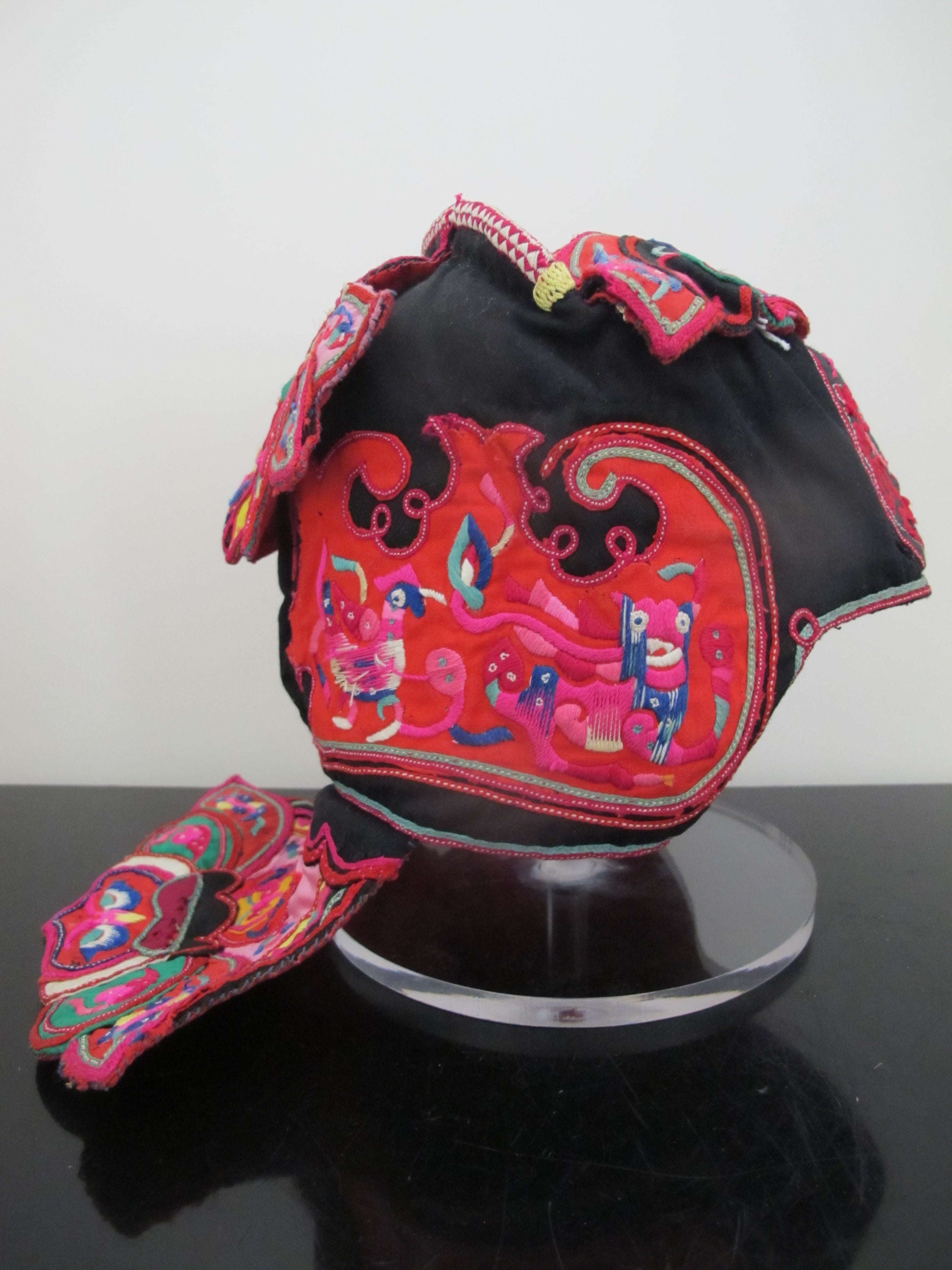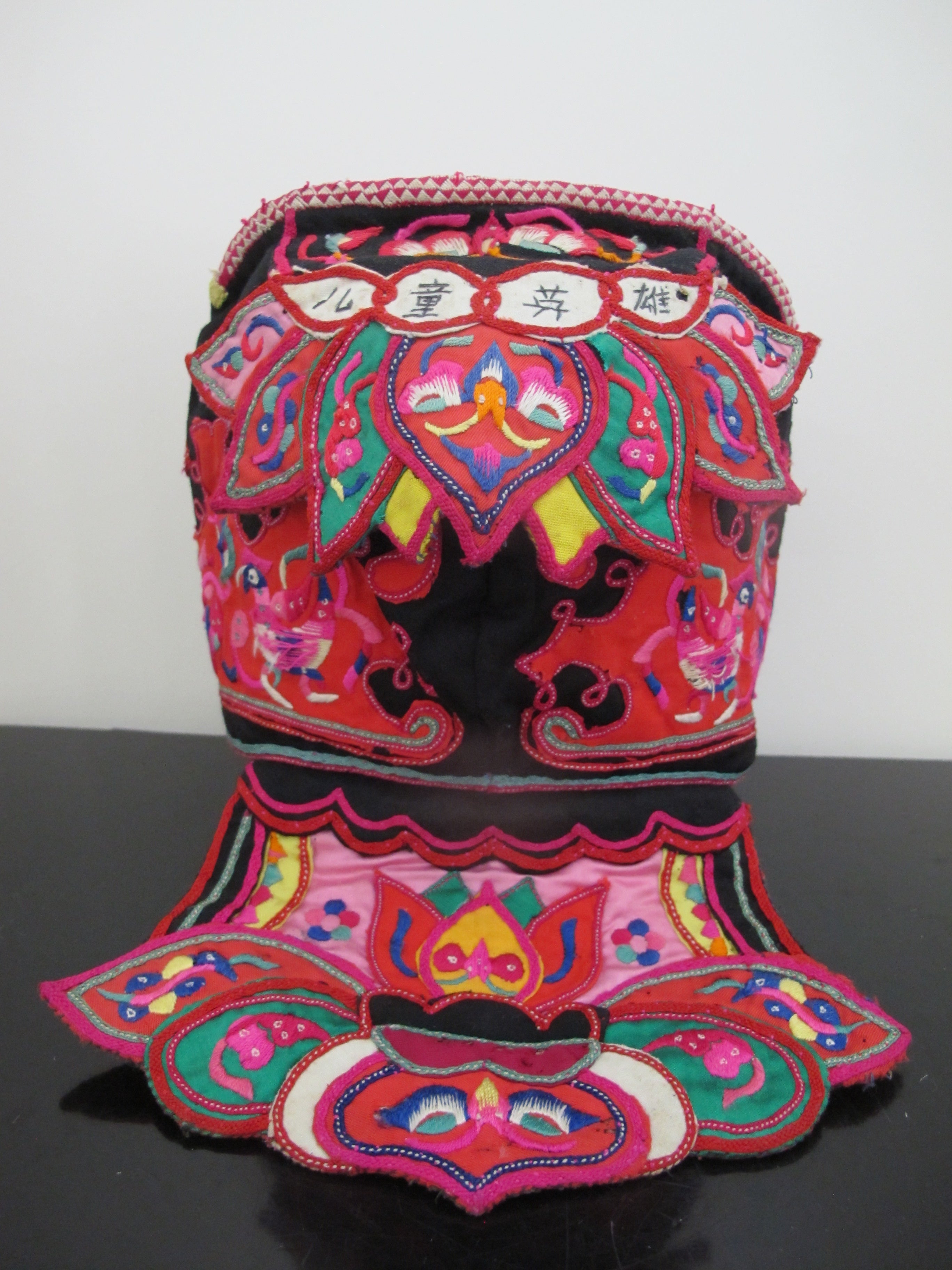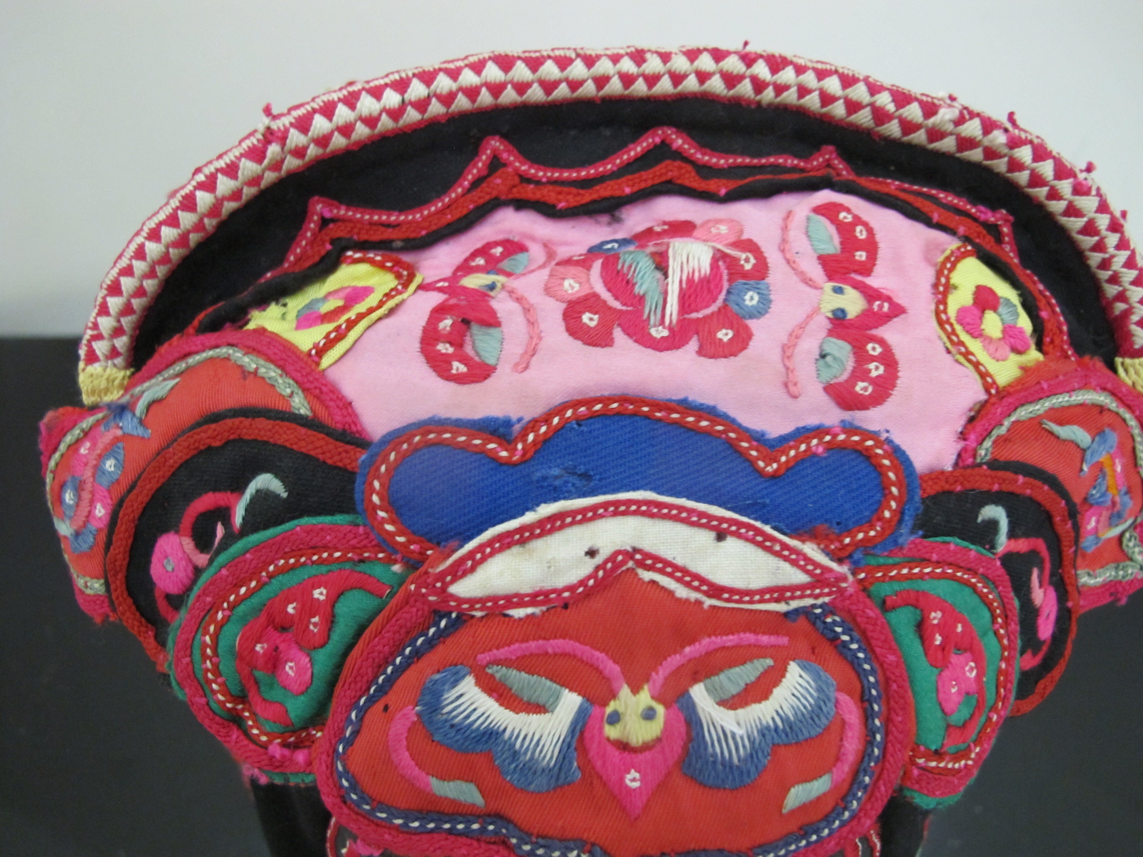 Antique CHINESE Embroidered Silk DRAGONFLY Bird BUTTERFLY Festival Child Hat