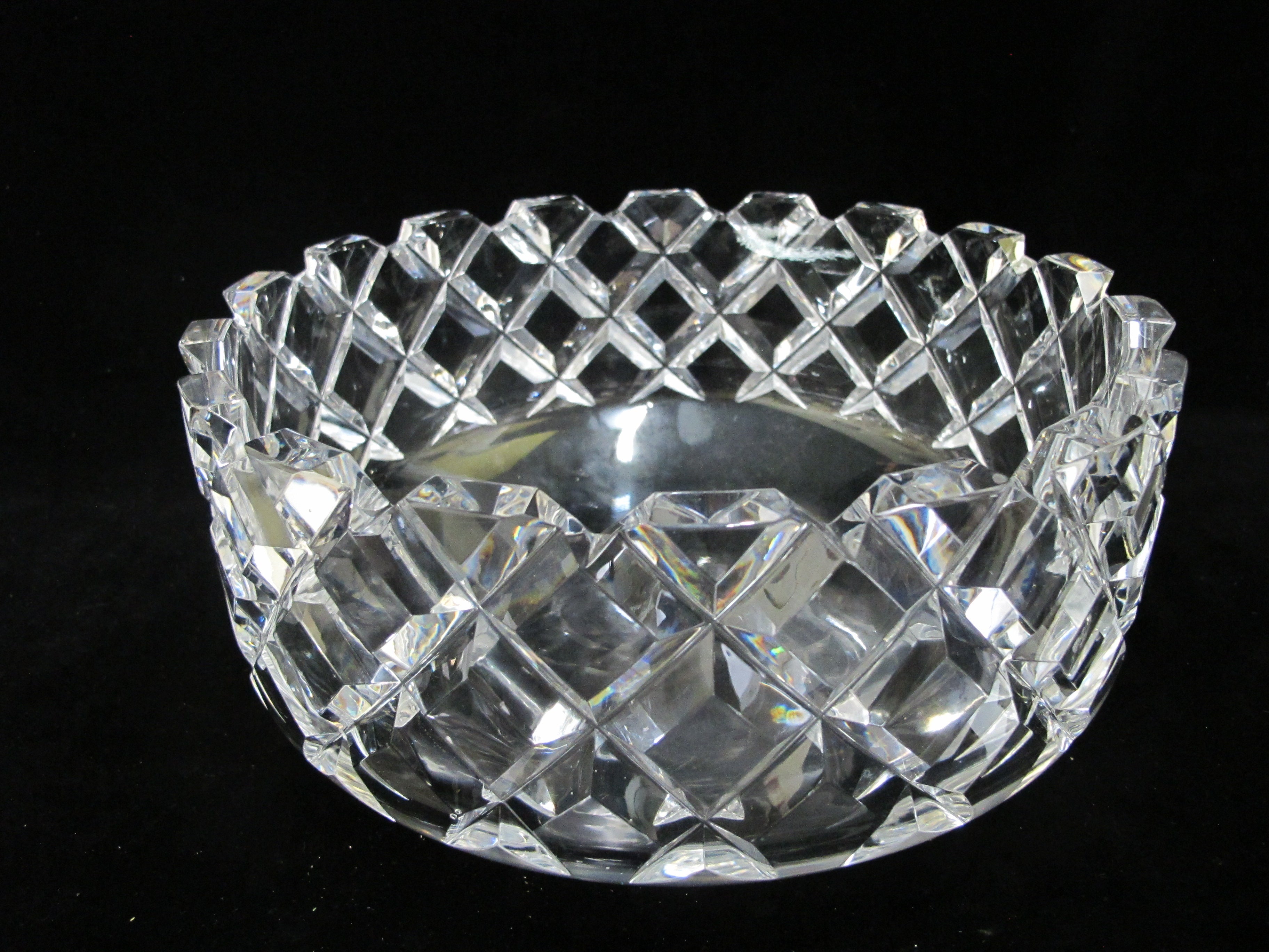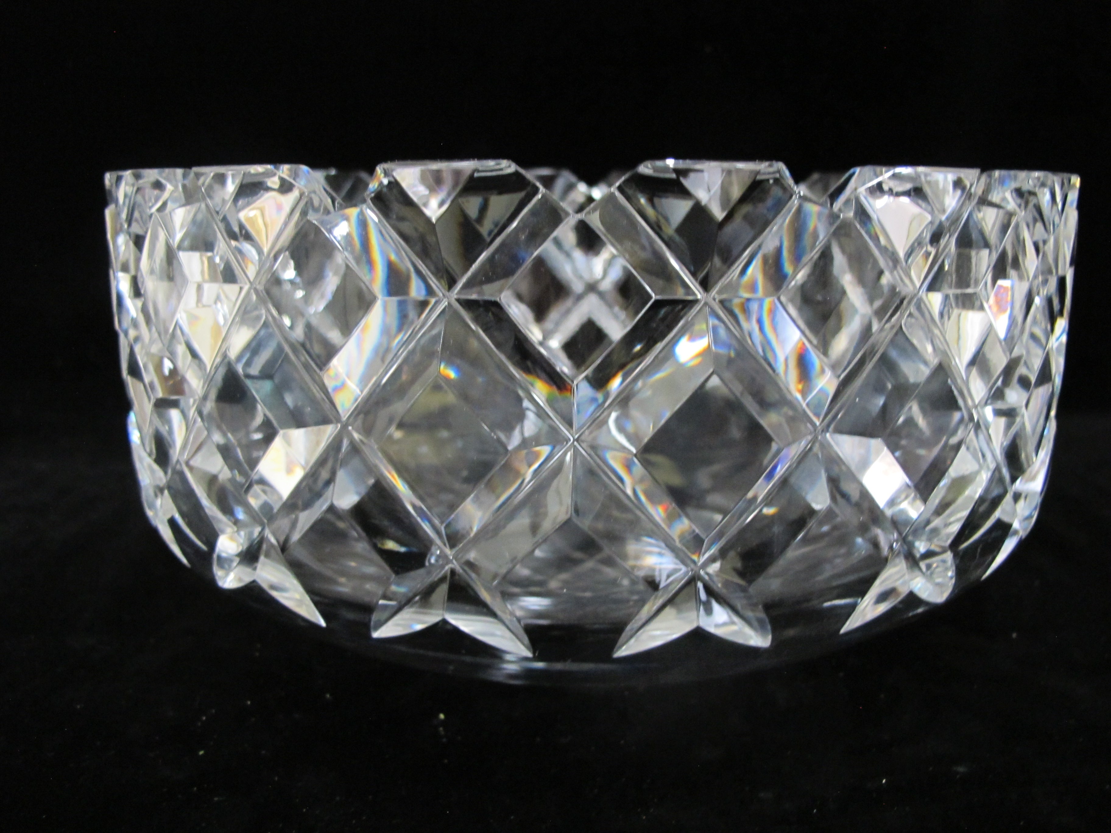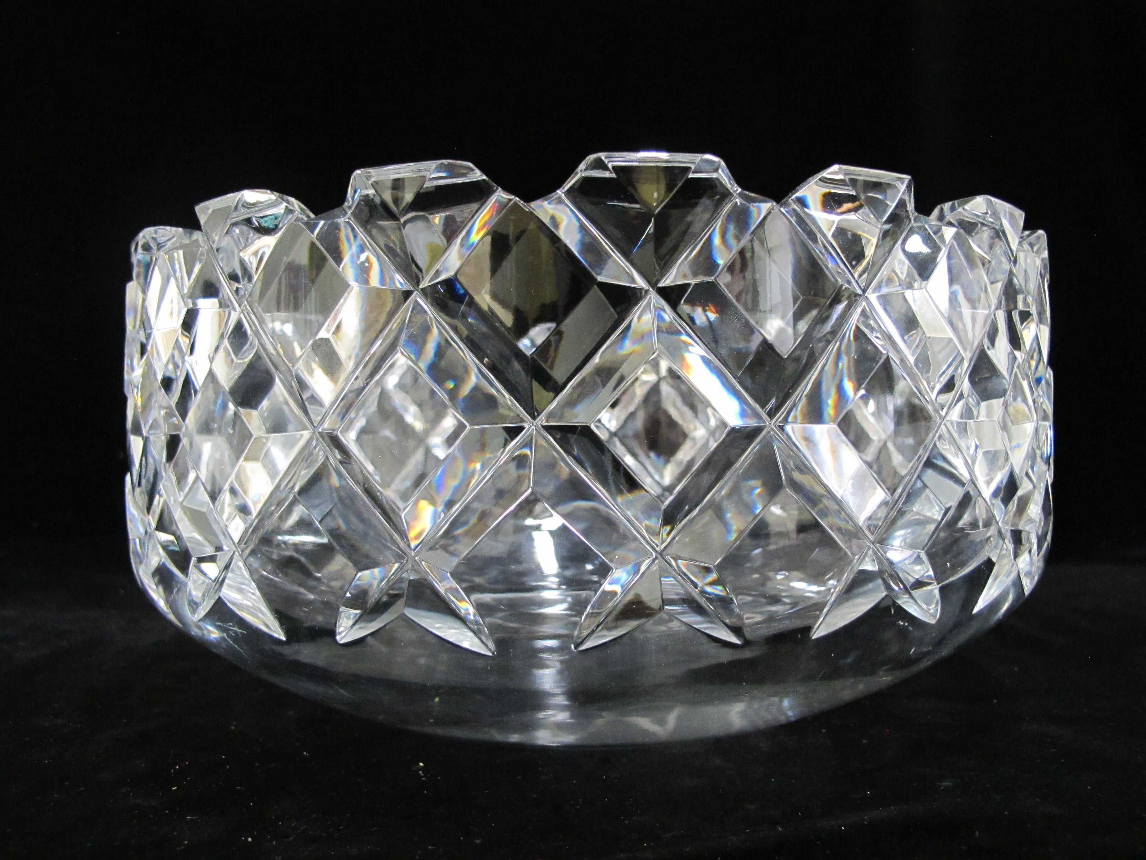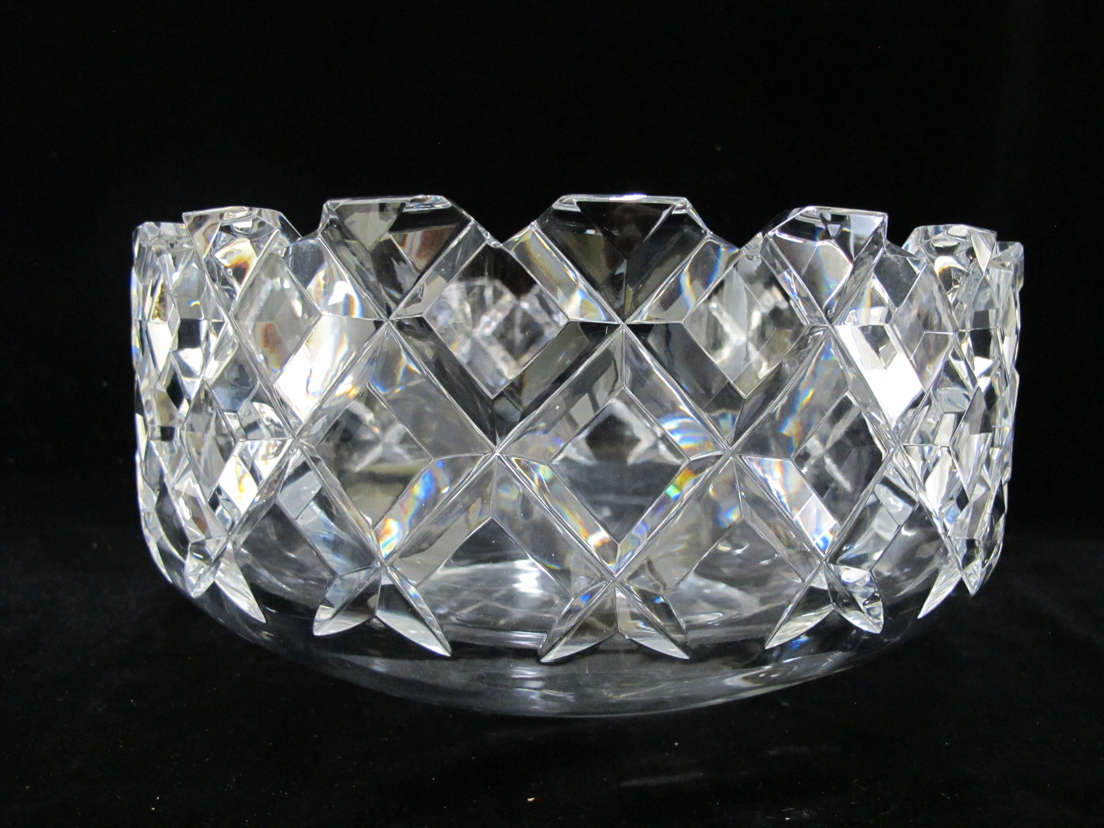 Large Orrefors Sweden Sofiero geometric crystal bowl. Hallmarks at base.