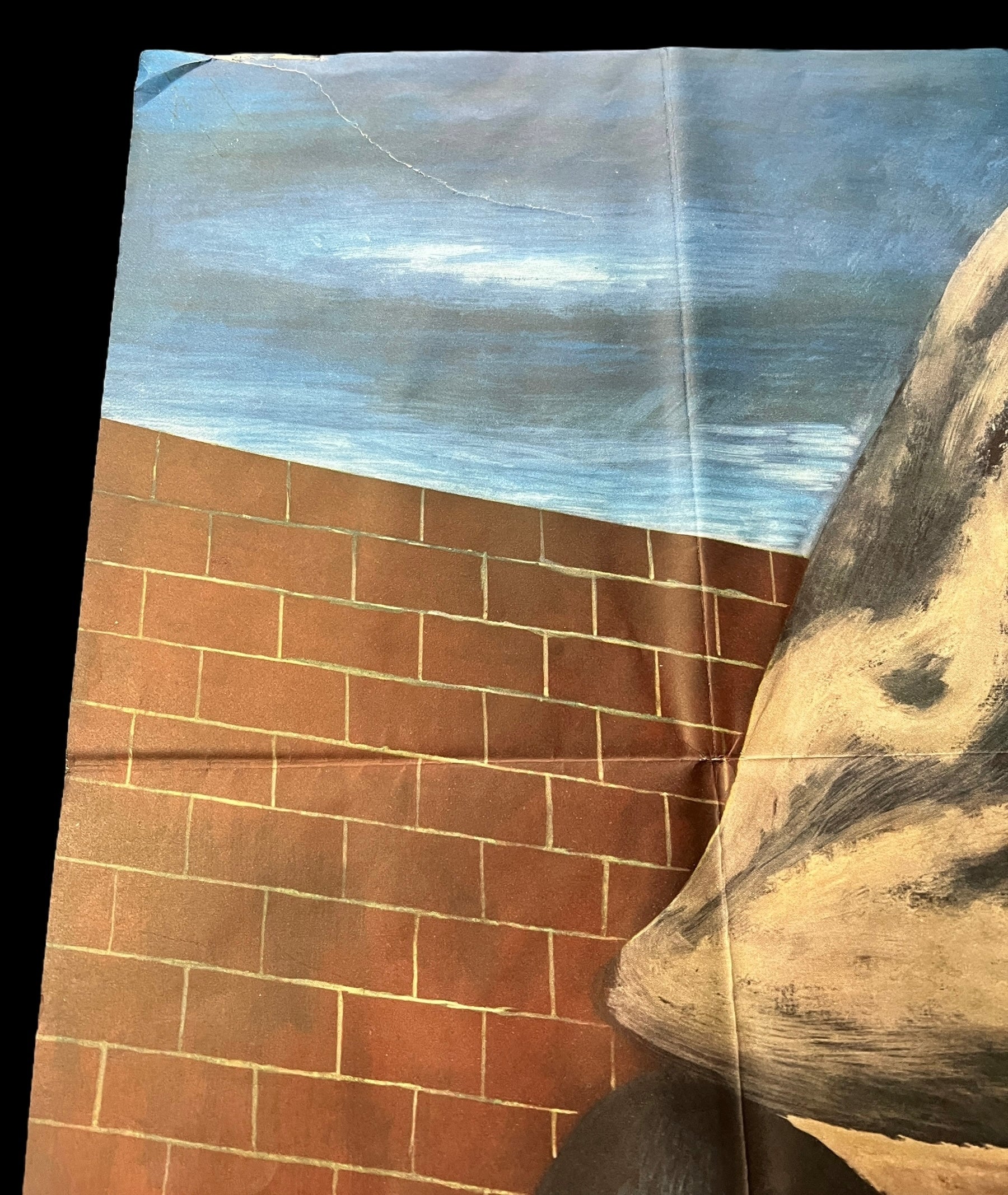 Poster has some old tape residue on it, and a few smaller rips where the poster was originally folded. No major defects for the 1940s. Please view and zoom in on each photo taken.