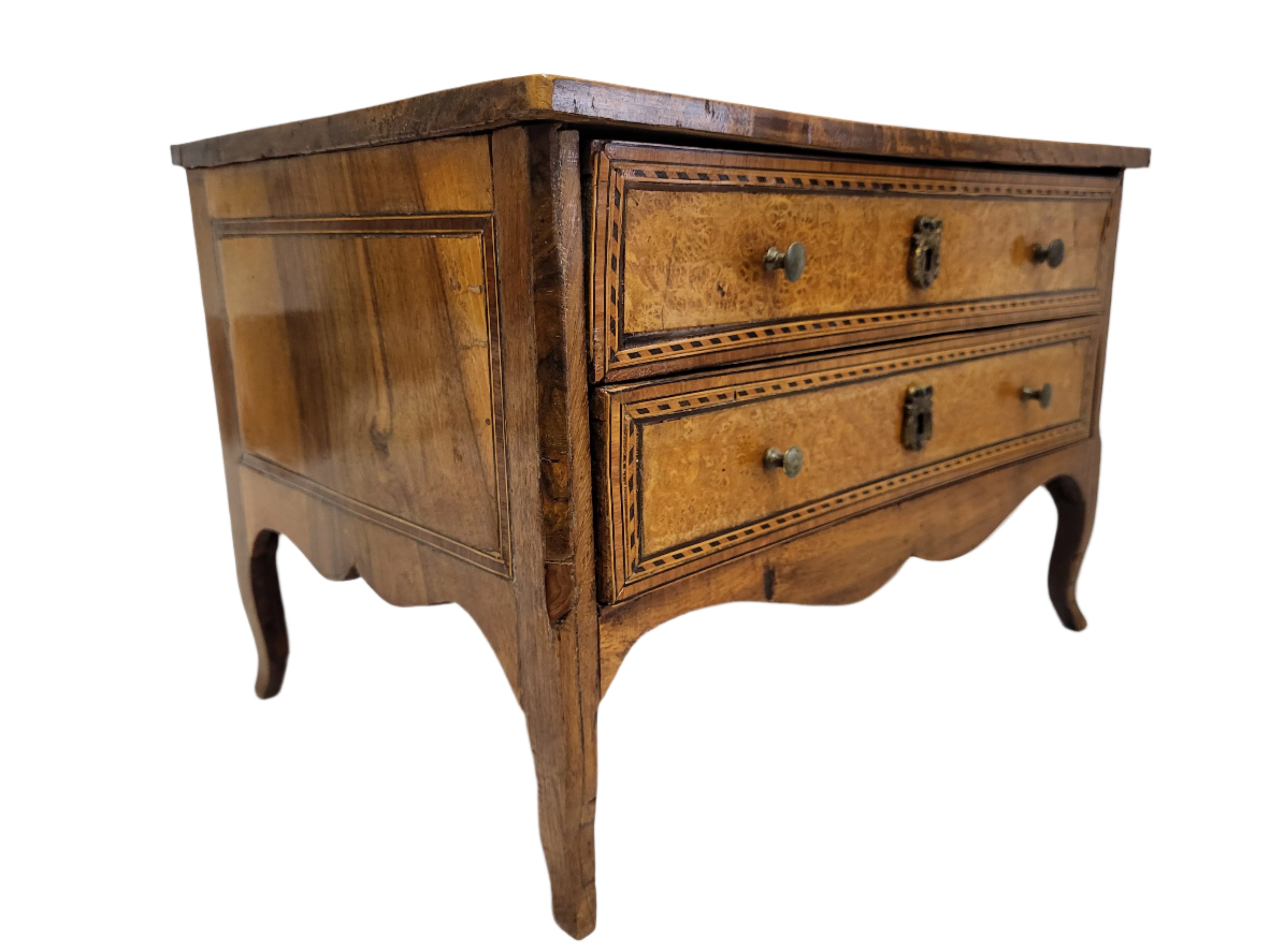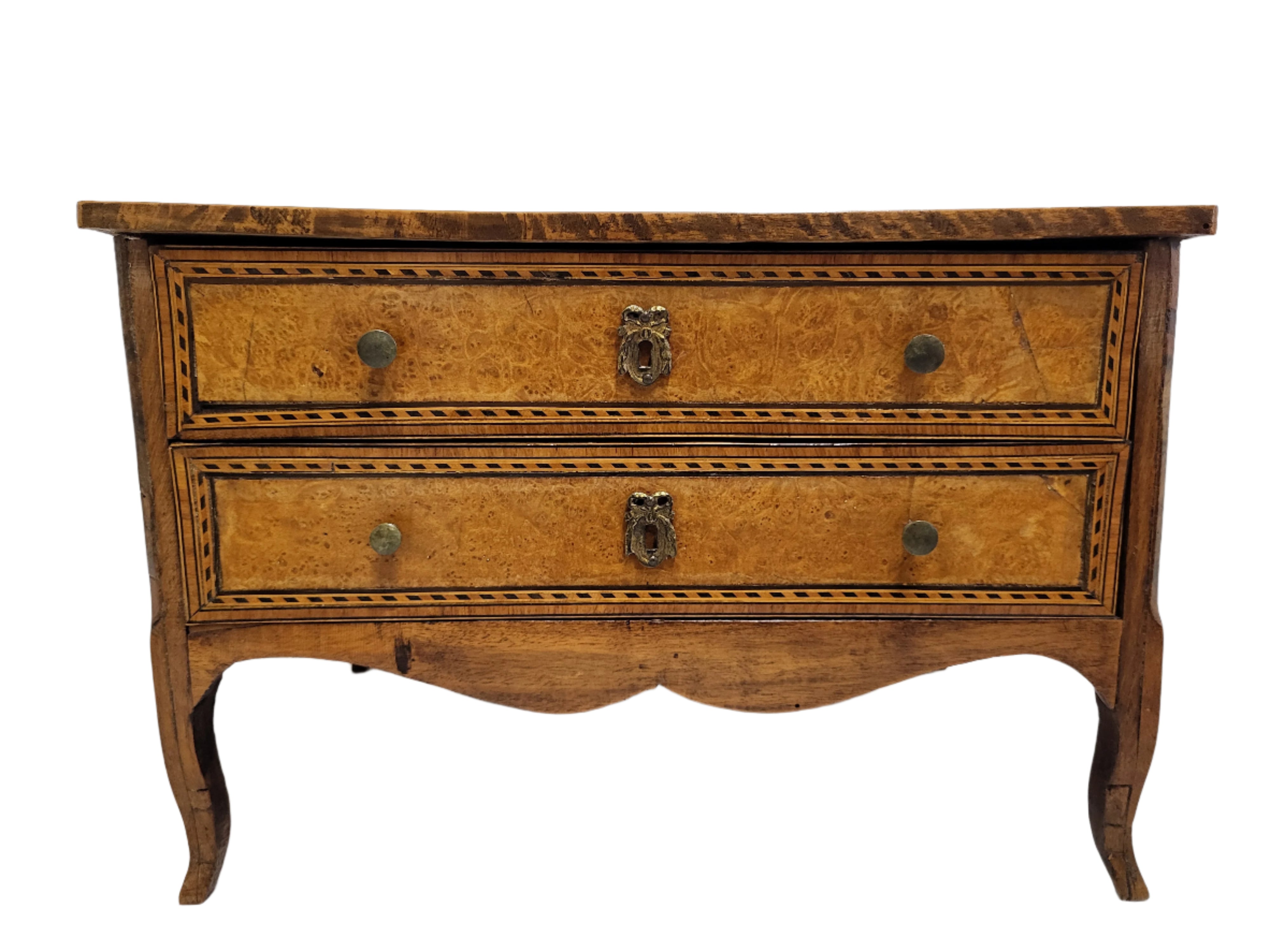 Antique FRENCH 18thc Wood Inlaid NEOCLASSICAL Commode Miniature 2 Drawer Dresser