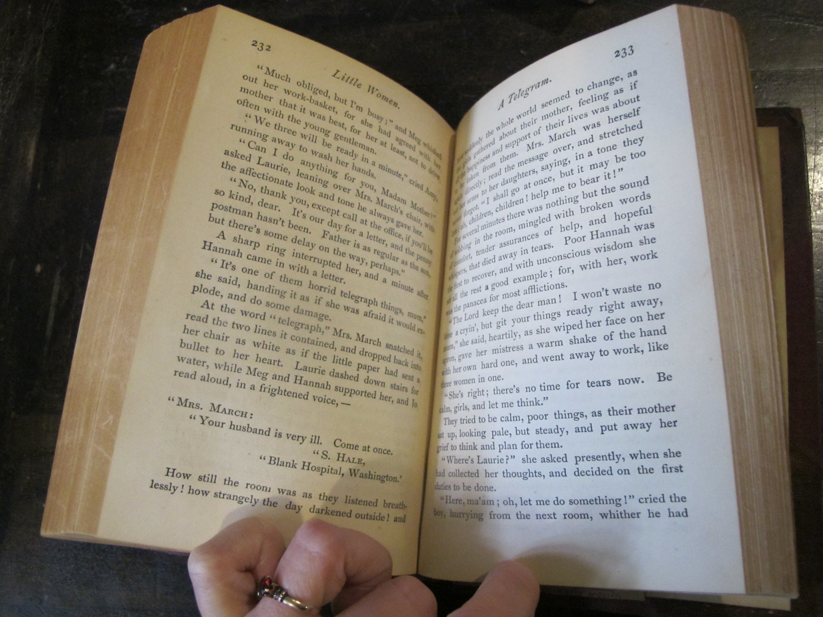 Little Women, Or Meg, Jo, Beth and Amy, by Louisa May Alcott. Early edition hardcover, very good to fine condition, with 3/4 leather on maroon board and gilt titling on spine. Published by Roberts Bros. Boston 1870
