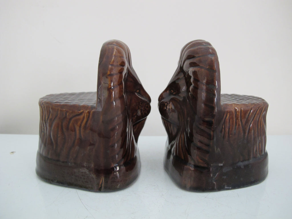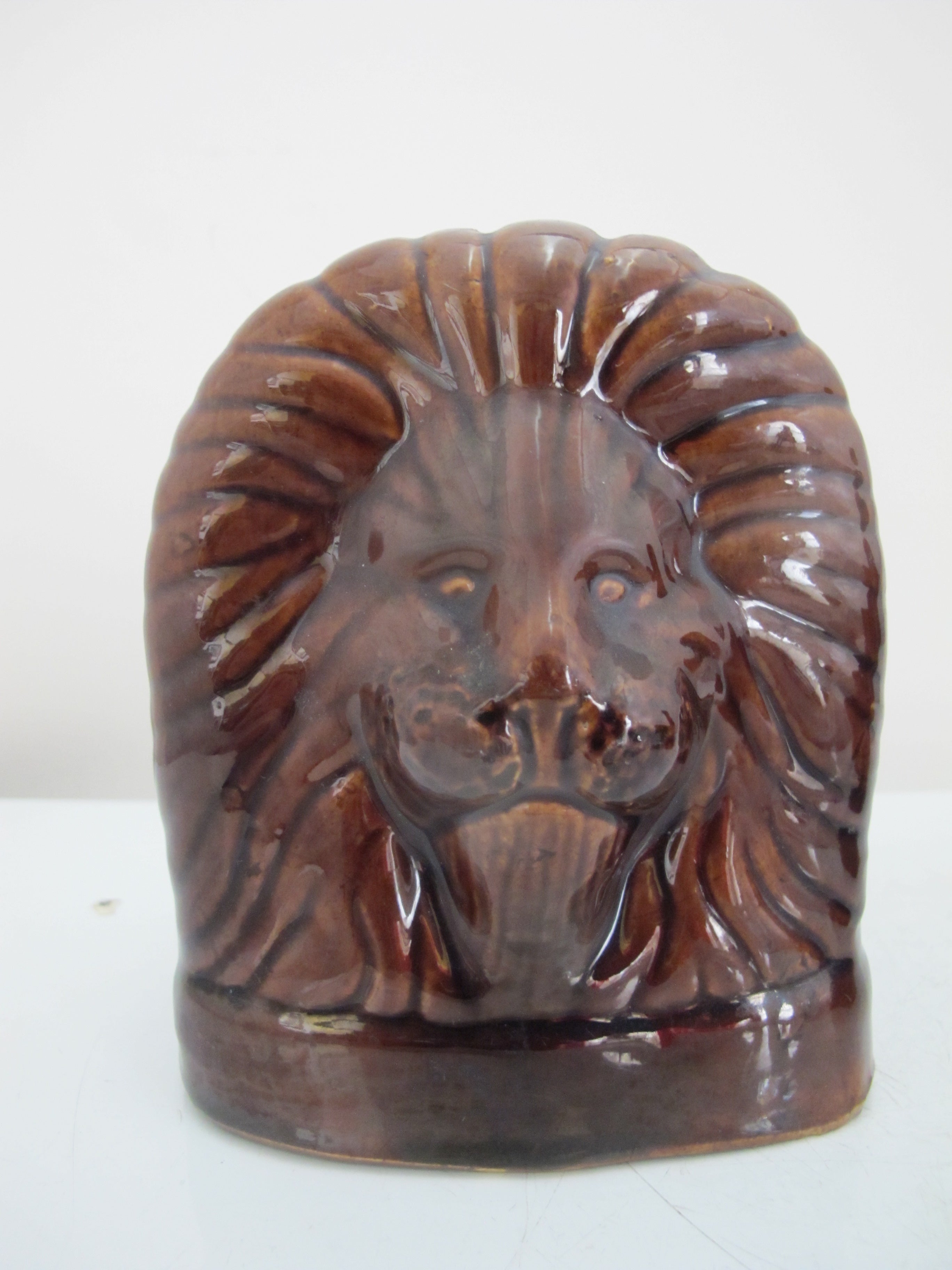 Antique Bennington/Rockingham LION HEAD Ceramic WINDOW Furniture Sash Rests Pair