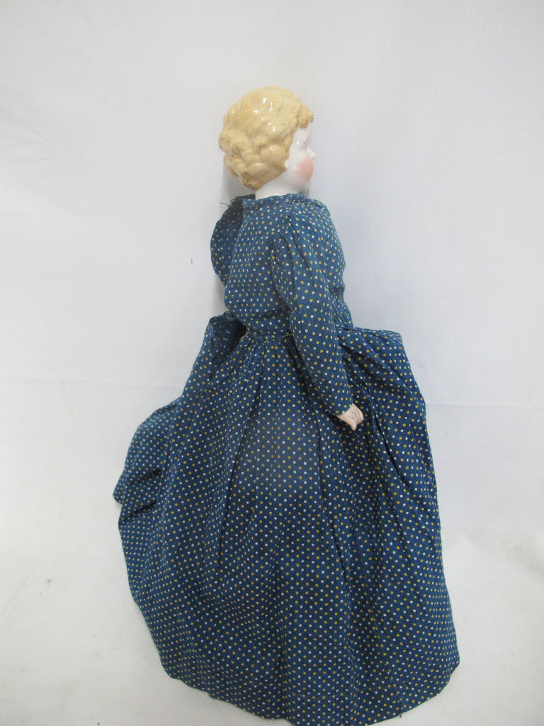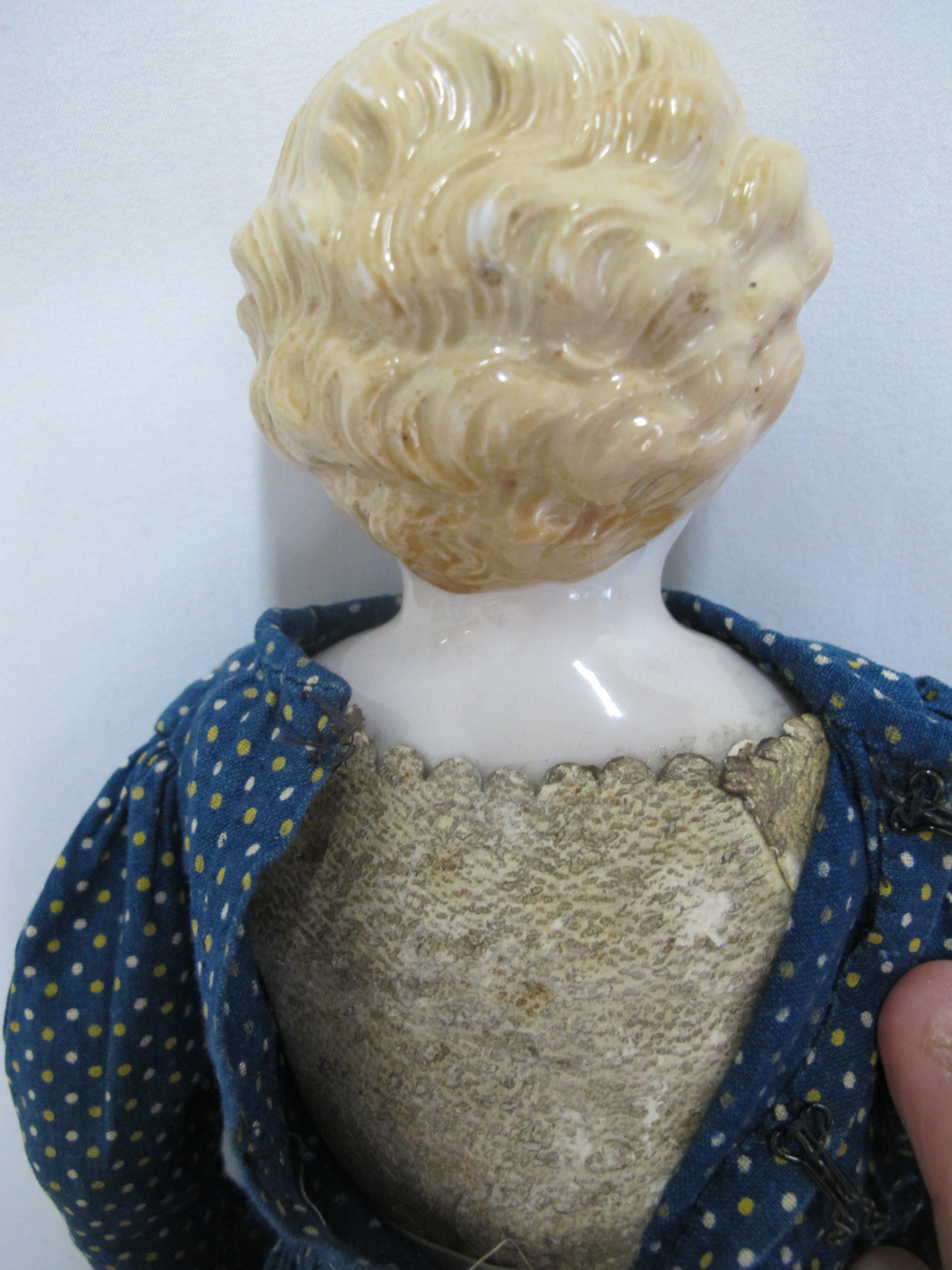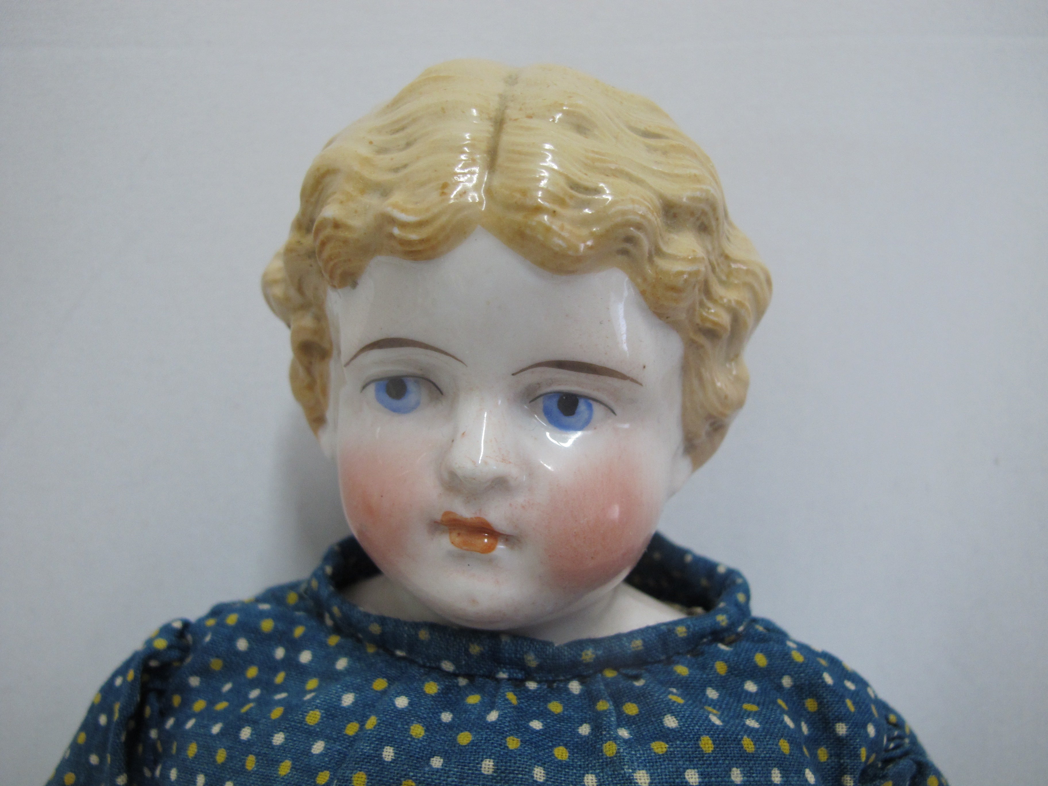 Antique GERMAN Colonial China Head Leather & Bisque BLONDE Hair Blue Eye DOLL