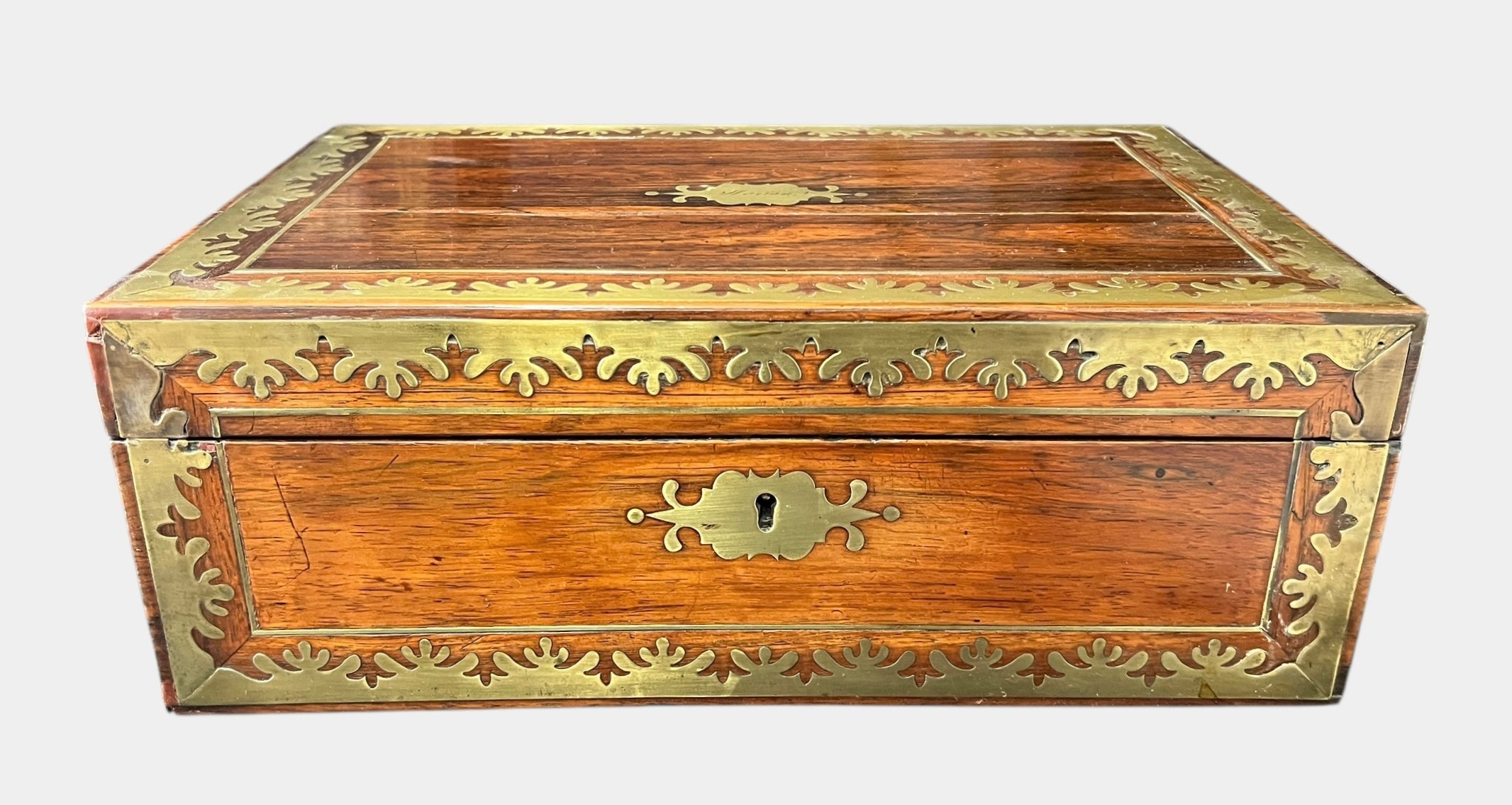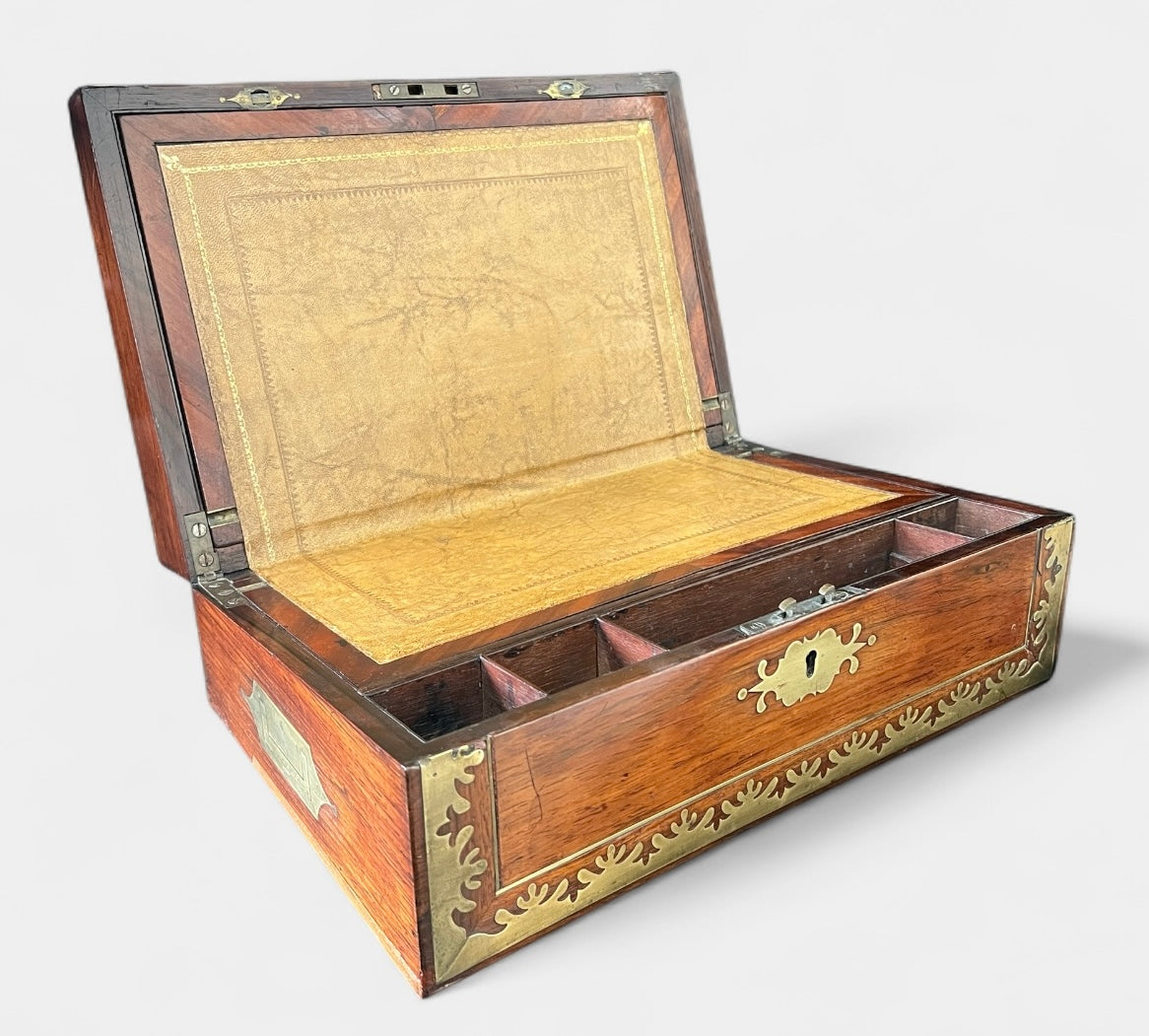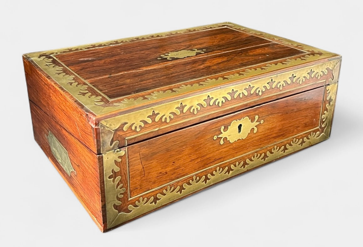 ANTIQUE Victorian Late 18th or Early 19th C Brass Bound Lap Desk Writing Box